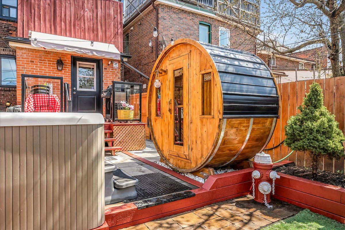 Welcome to 332 delaware avenue - a renovated, turn-key multi-unit residence in the heart of toronto's vibrant dovercourt village. This impressive 3-storey semi-detached home offers a rare blend of classic character and modern upgrades. Ideal for end-users seeking rental income or savvy investors. Featuring three self-contained units, each with its own kitchen and dedicated living space. This property delivers exceptional flexibility for multi-generational living, owner occupancy with income, or a fully tenanted investment. Extensively updated throughout. The home includes major system upgrades, such as new electrical with three separate panels (2018), all new plumbing, new duckwork, and a high-efficiency furnace (2018), along with a tankless hot water system. The roof was replaced in 2020, offering peace of mind for years to come. Each unit is enhanced with soundproof insulation and fire-rated separation for added comfort and safety. Offering a total of six bedrooms and four bathrooms. The home features functional layouts, engineered hardwood flooring, and modern kitchens with quartz countertops. The legal basement apartments add significant value and income potential with a separate entrance and private living space. Step outside to a unique backyard retreat featuring a sauna, hot tub, cold plunge, and fire pit - perfect for relaxation or entertaining. Complete with a detached garage, laneway access, and parking for two vehicles. Located just steps to bloor street, ossington, parks, cafes, and ttc subway. A rare opportunity to own a fully upgraded, income - generating property in one of toronto's most desirable neighbourhoods.
