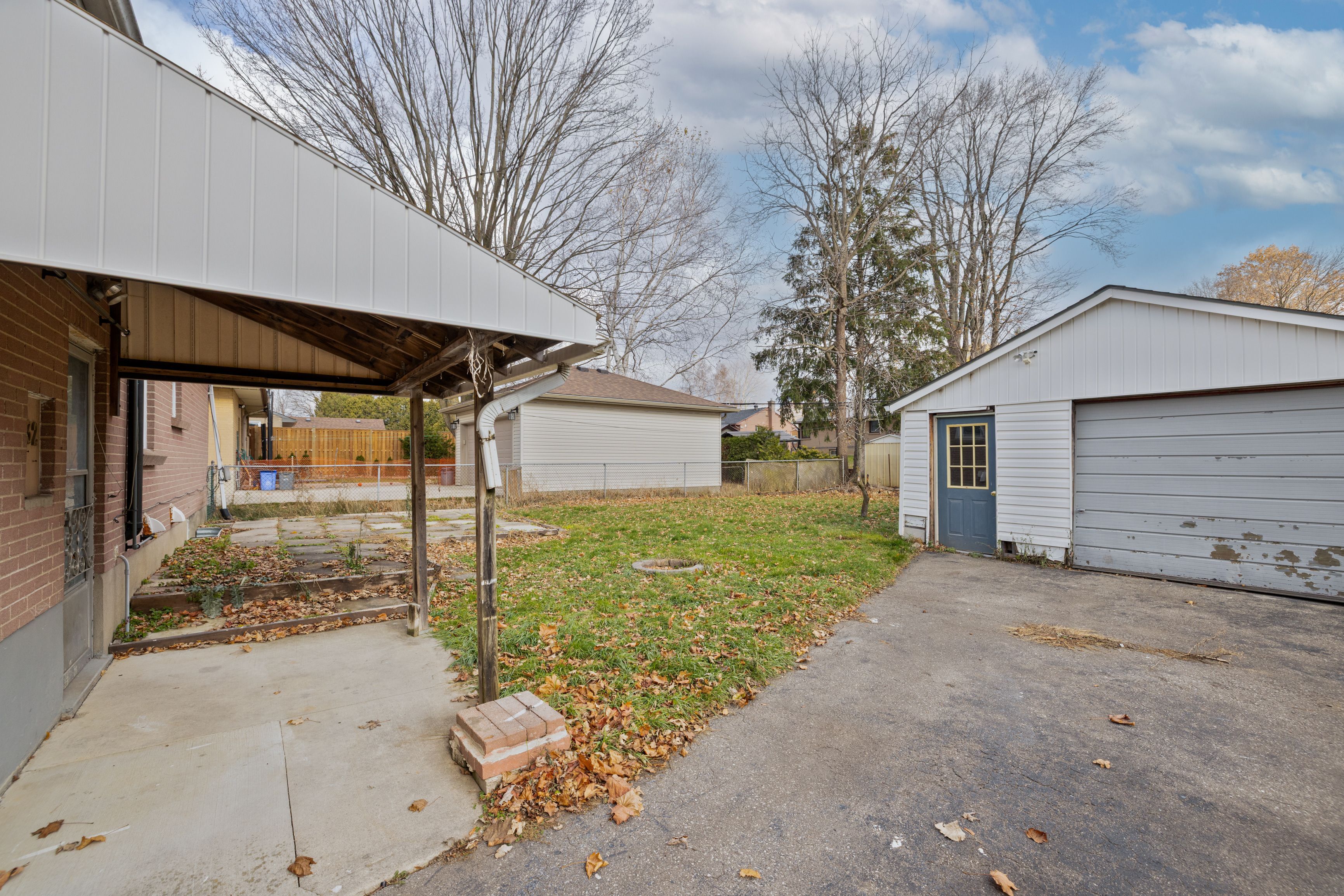 Welcome to this spacious three-bedroom, two-bath home offering exceptional potential in a convenient family oriented london location, and close to many amenities. The main level features a generous living area with plenty of natural light, along with three well-proportioned bedrooms and and the main full bathroom. The lower level is partially finished and includes two additional rooms-each with larger windows, offering versatility for additional uses such as home offices, or guest rooms. A main rec room area is included for extra living space with a rough-in for a kitchenette. There is a dedicated laundry area, storage space, and a separate side entrance that provide excellent flexibility for multigenerational living or a future guest/in-law suite. Outside, you will find a nice-sized backyard with a large detached garage, ideal for hobbyists, extra storage, or additional vehicle parking. With a thoughtful vision and some updates, this property presents a fantastic opportunity to build value in a desirable neighbourhood.