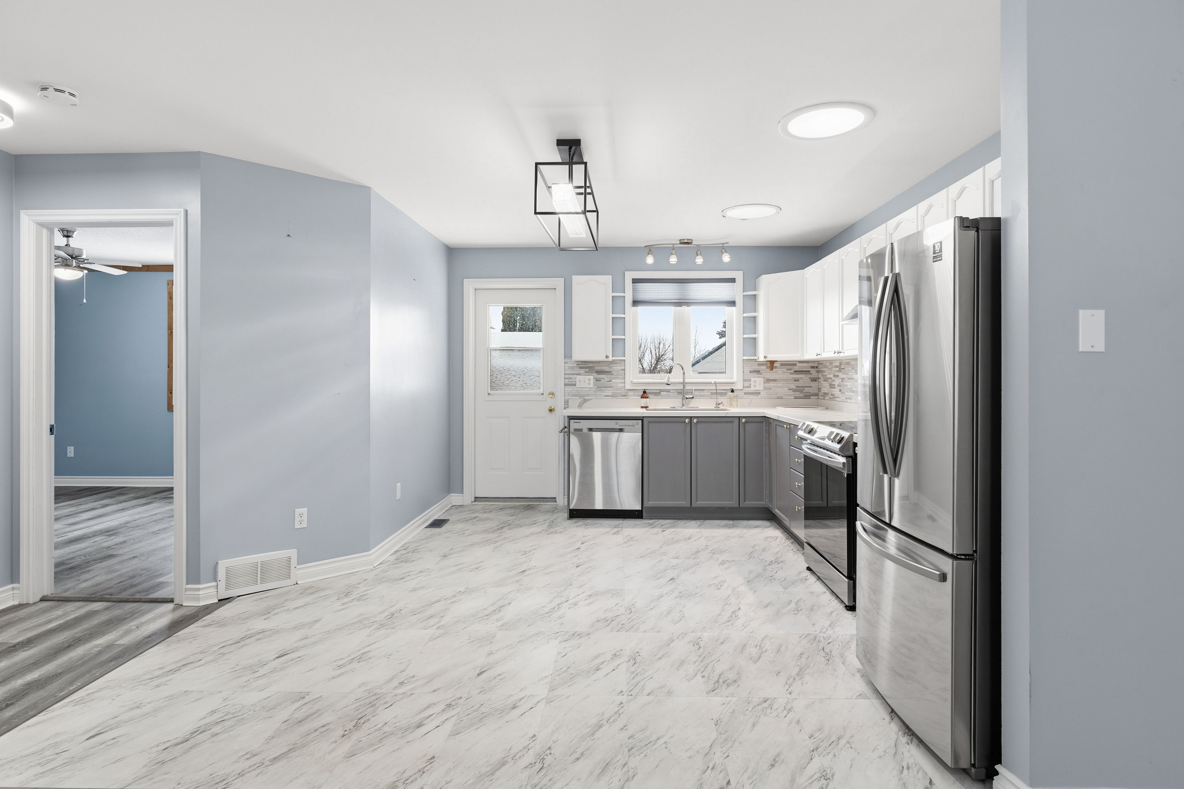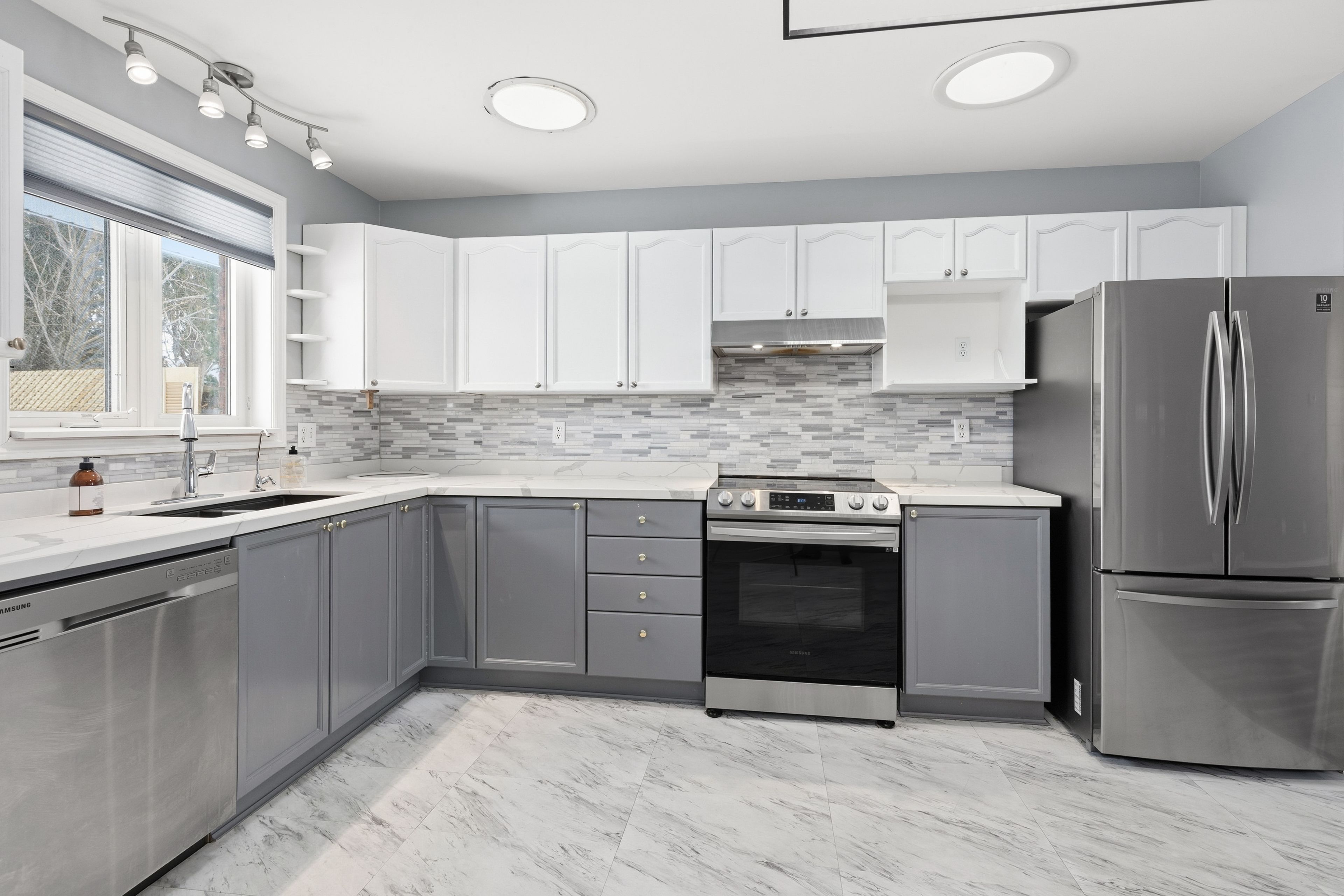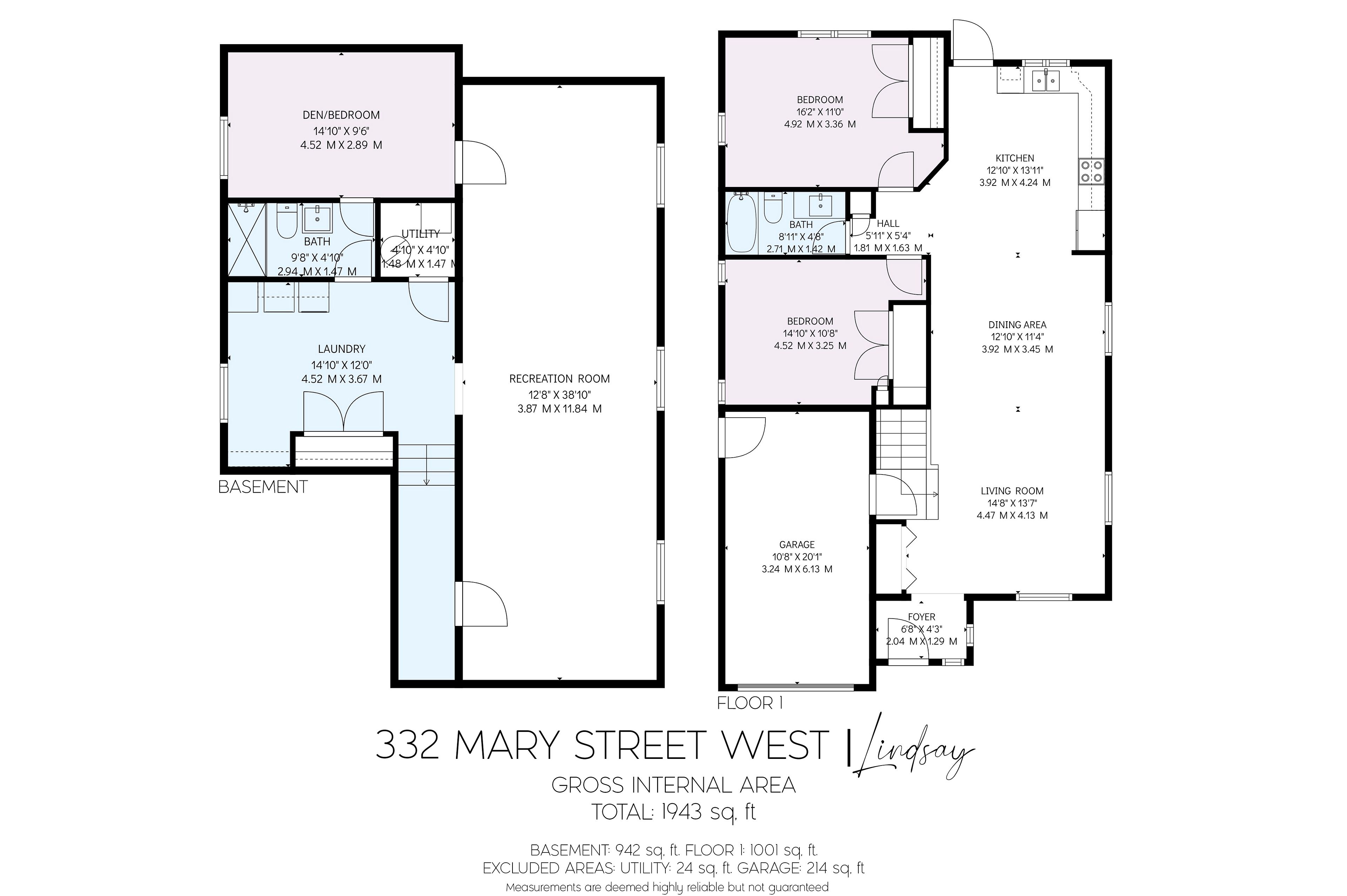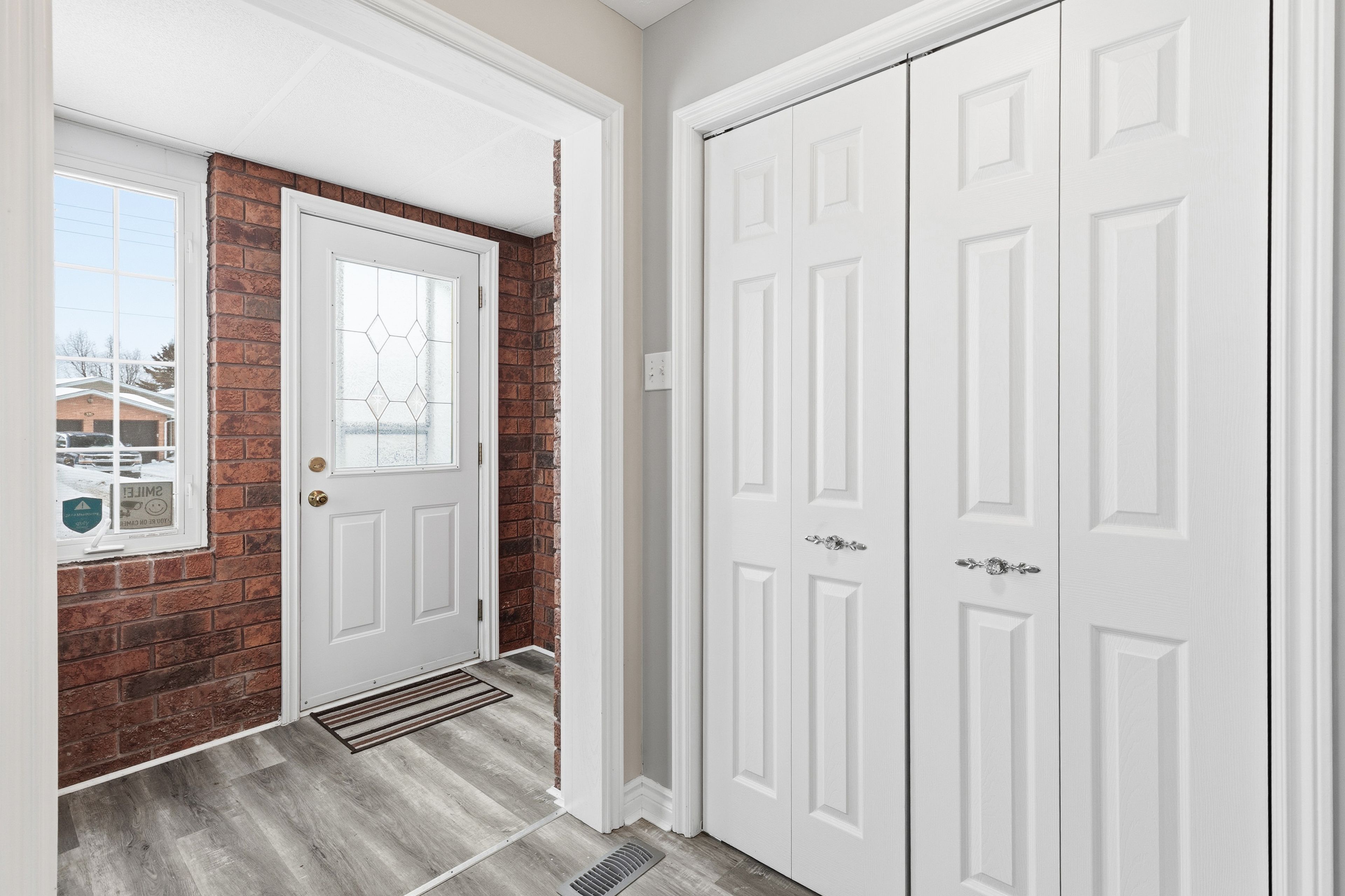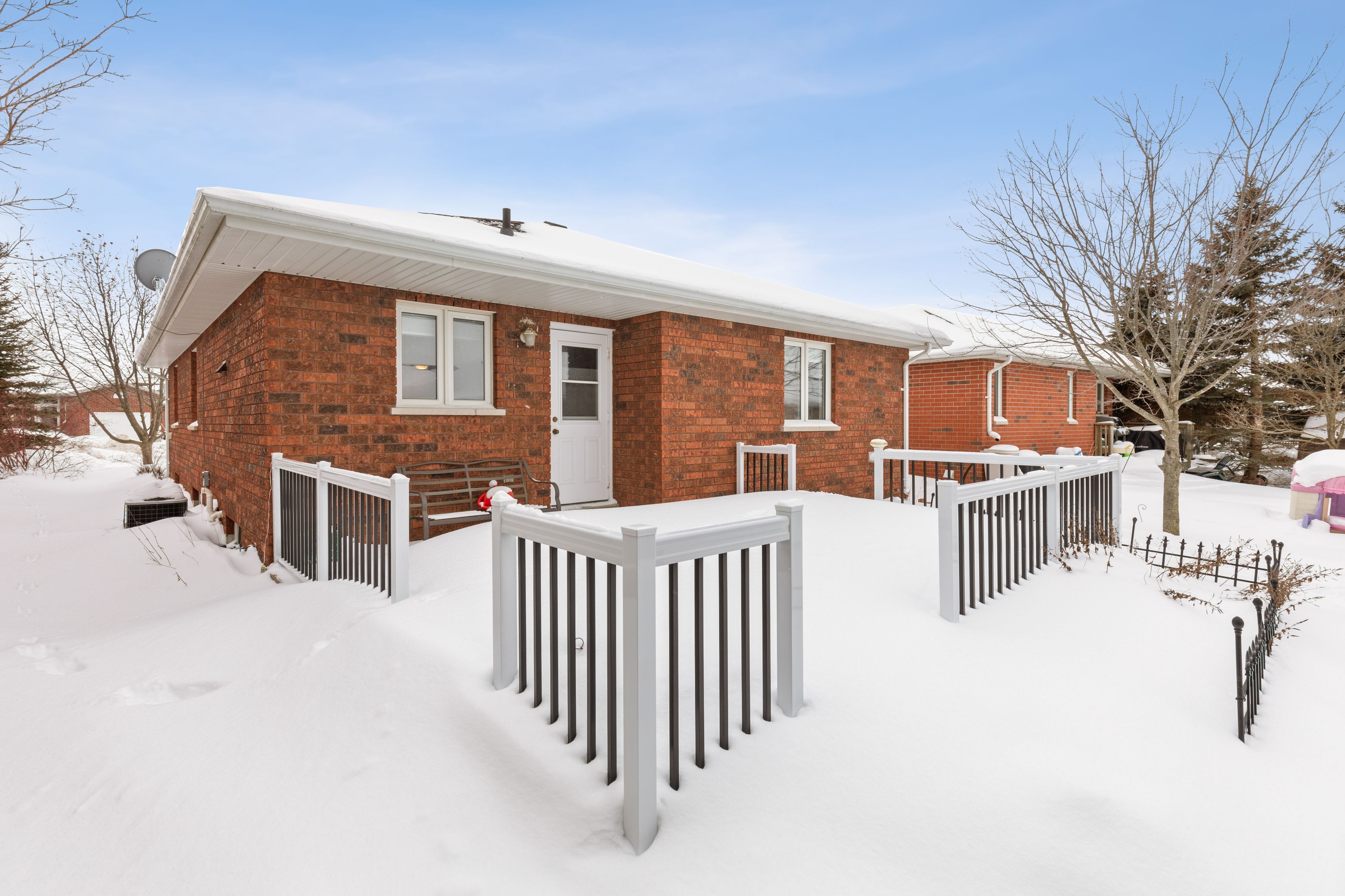 Welcome to this beautiful brick bungalow in one of lindsay's sought-after neighbourhoods. Offering two bedrooms and two bathrooms, the home features an upgraded kitchen with quartz counters, sun tunnels for added natural light, and a bright open-concept design-perfect for comfortable, easy living. The finished basement offers a large recreation room, ideal for entertaining, along with an additional den or bedroom featuring a semi-ensuite three-piece bathroom. A bonus is the many large windows that allow plenty of natural light. The attached garage includes a remote opener and provides convenient access to both the home and the side yard. The backyard features a low-maintenance deck for outdoor enjoyment, a garden shed, and partial fencing. Area amenities include a recreation complex, schools, the trans canada trail, shopping, and more.