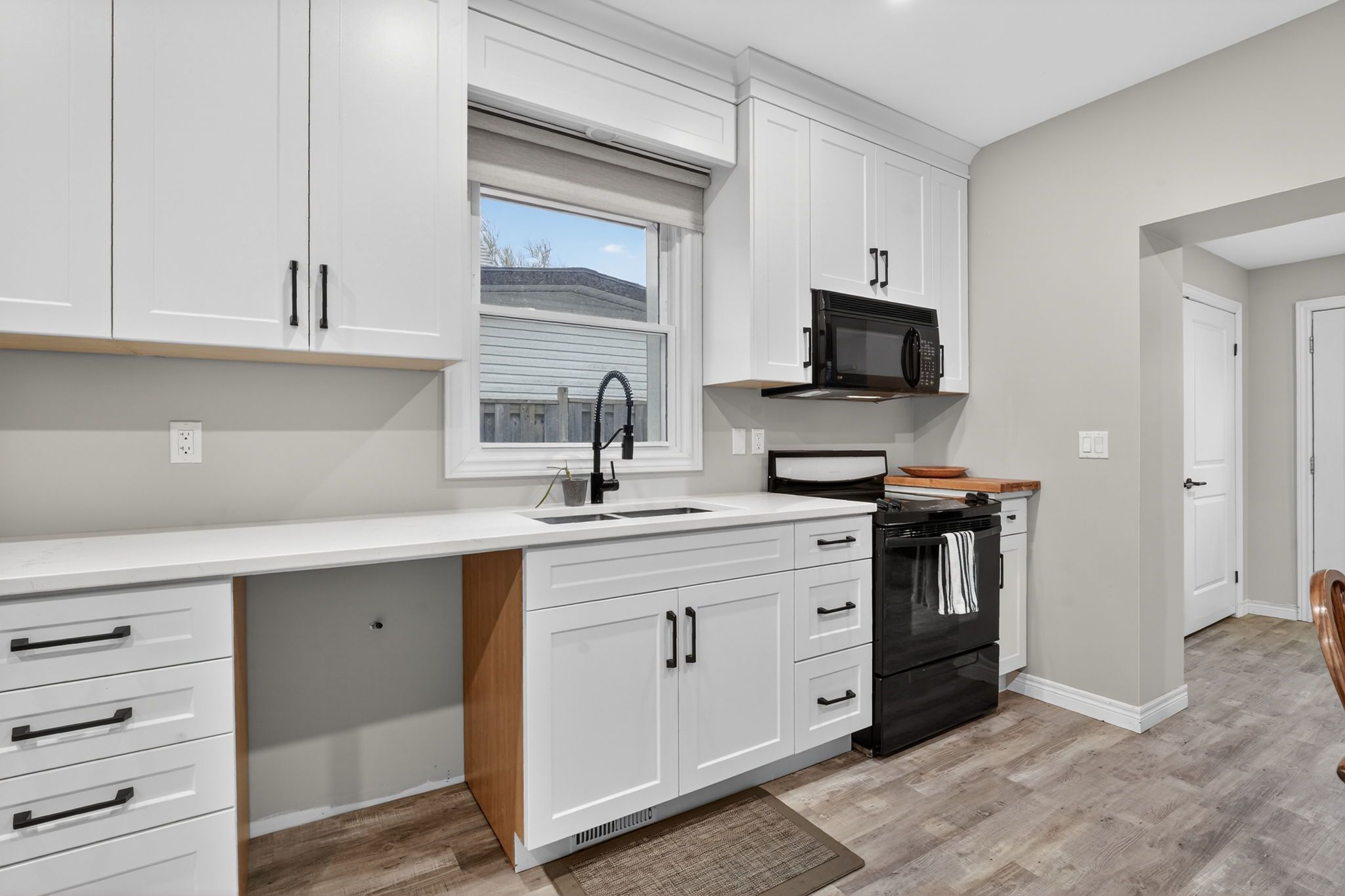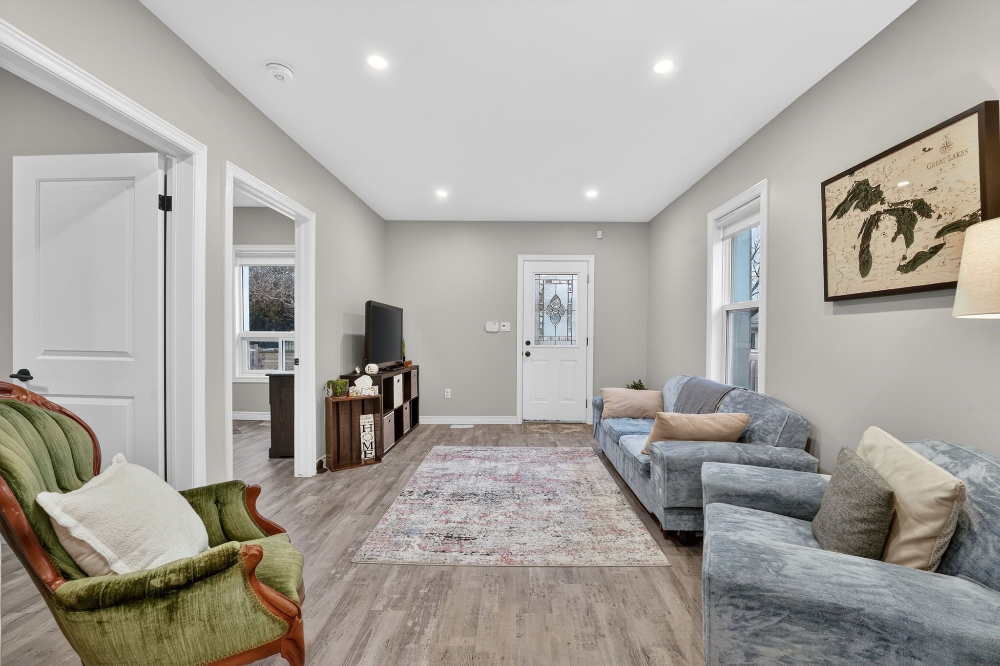 Experience the perfect blend of style & function in this beautifully reimagined 1. 5 storey home, set handsomely on a generous 50x120' lot in the heart of simcoe. Boasting nearly 1000sf of meticulously renovated living space, this 2+2 bedroom, 2 bath home is the gold standard for move in ready comfort! Rear entry leads through a large functional mudroom w/ dedicated laundry before opening into a breathtaking, open concept heart of the home. Anchored by soaring 8. 5' ceilings & luxury vinyl plank flooring, the kitchen is a 'showstopper' - preferred white cabinetry, crown moulding, & quartz counter tops. The layout is masterfully designed to blur the lines between cooking, dining, & lounging - creating an expansive & social atmosphere - perfect for hosting! Two spacious bedrooms & a stunning updated 4pc bath w/ tile flooring completes the main floor. The upper level has two cozy carpeted bedrooms & a convenient 2pc bath. Note: pex & abs plumbing, 100amp & copper wiring, f/air n/g furnace, & owned hwt. Outside, the majority-fenced yard includes a practical shed & plenty of space for summer entertaining. Ideal location - close to hwy 3 for easy commuting, all simcoe amenities, hospital, & school. The hard work is finished here - 'ultimate' opportunity to buy and put your feet up!