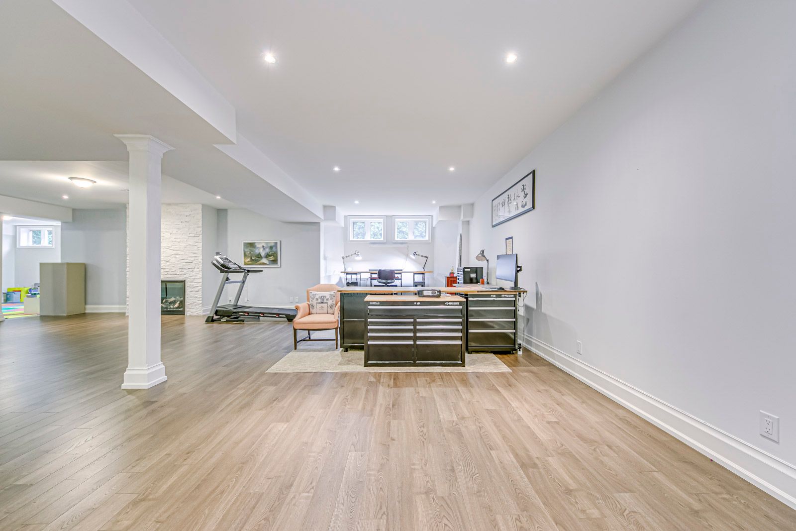 • Finished basement includes versatile spaces, a nanny suite, and a sauna.