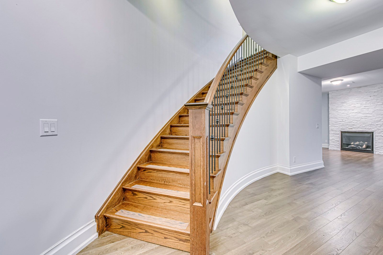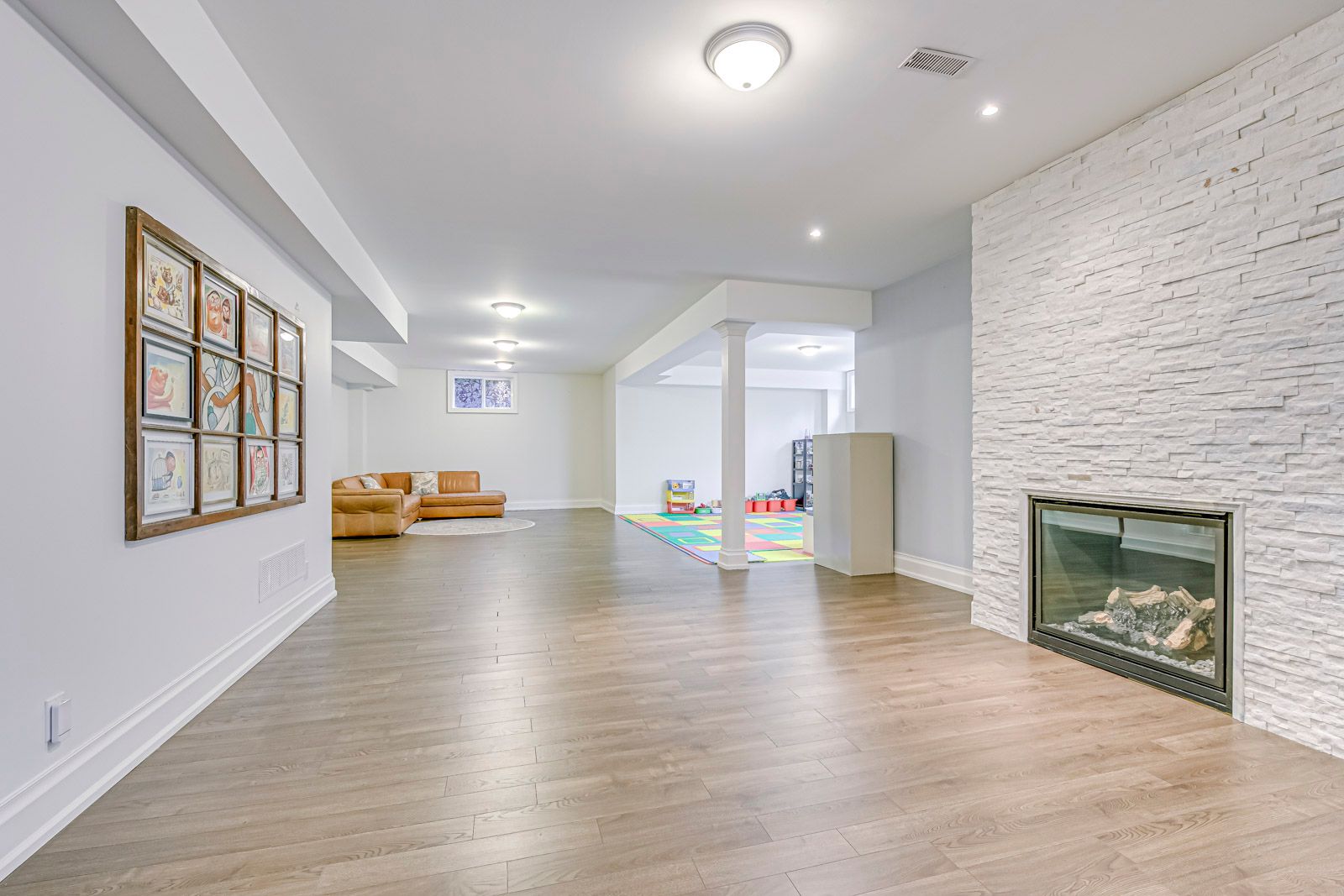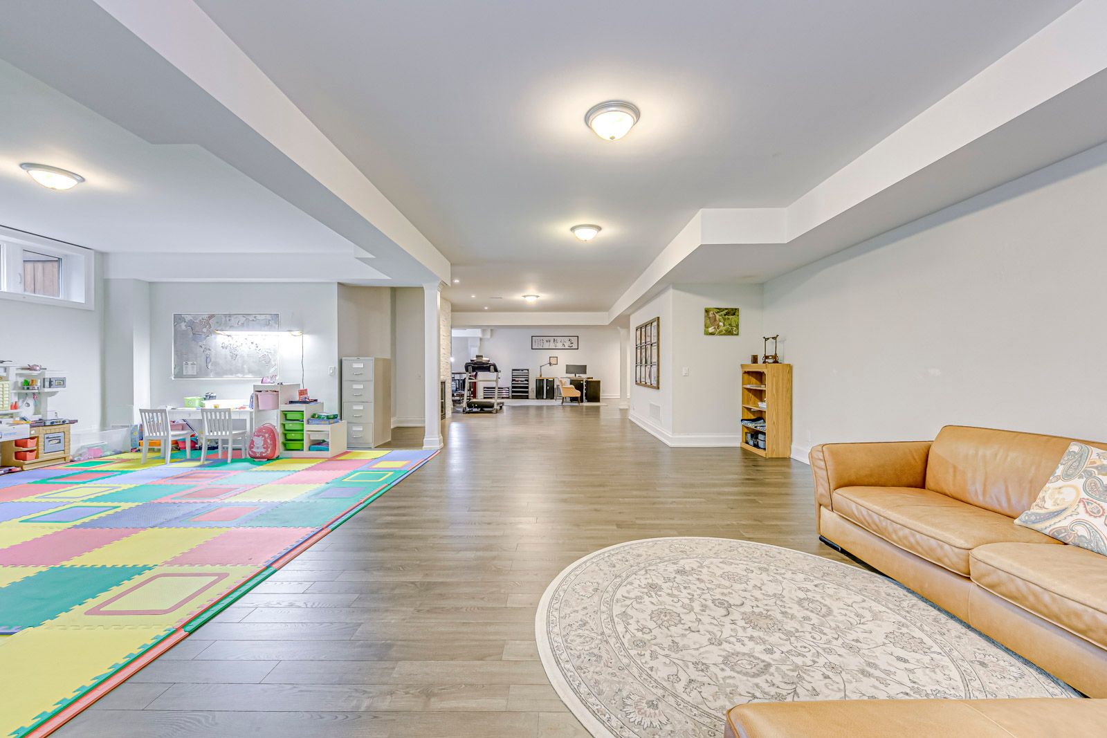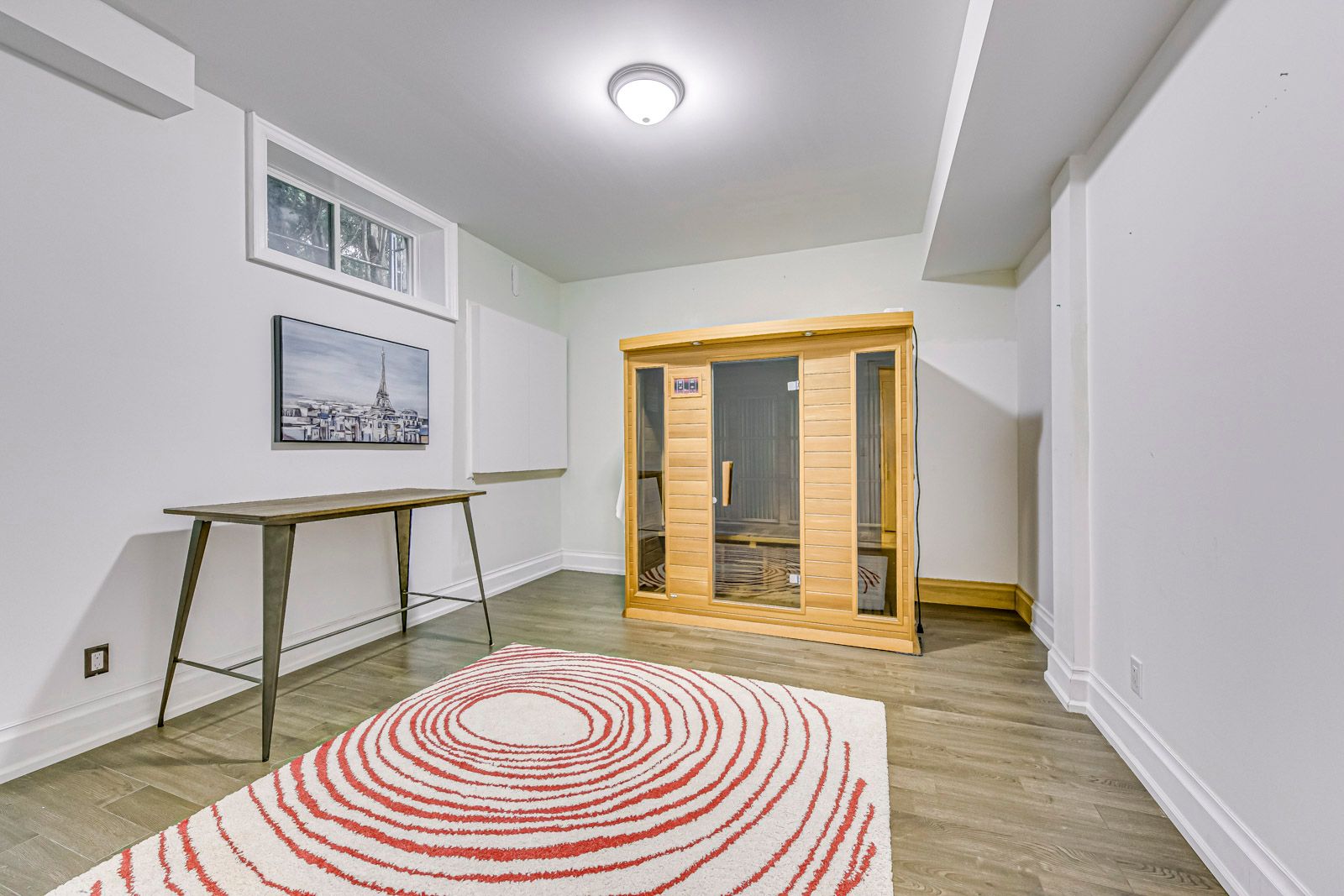 • Finished basement with flexible spaces, including a fitness area and sauna.