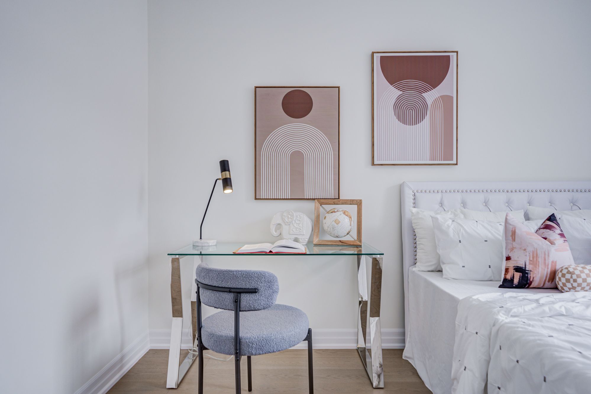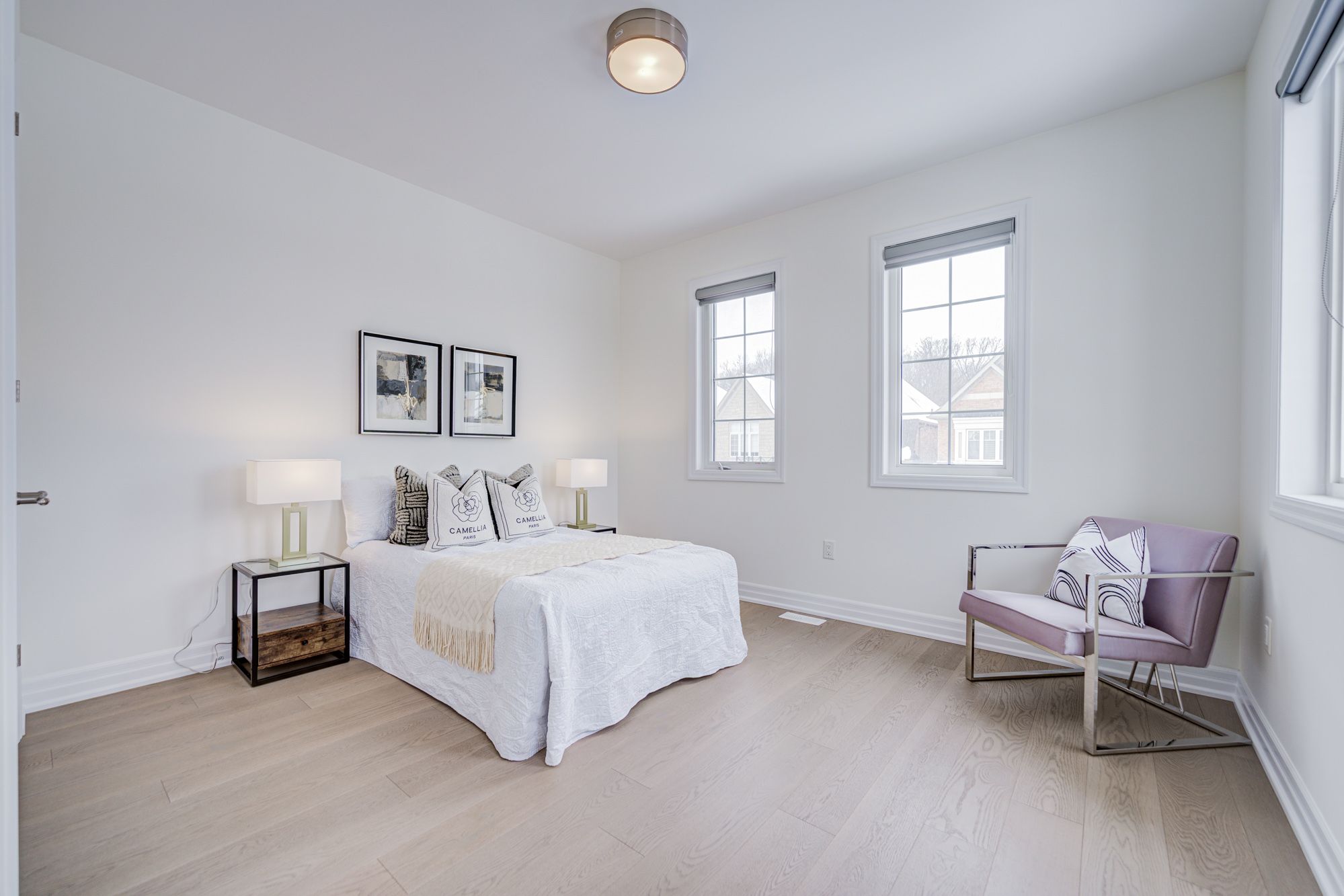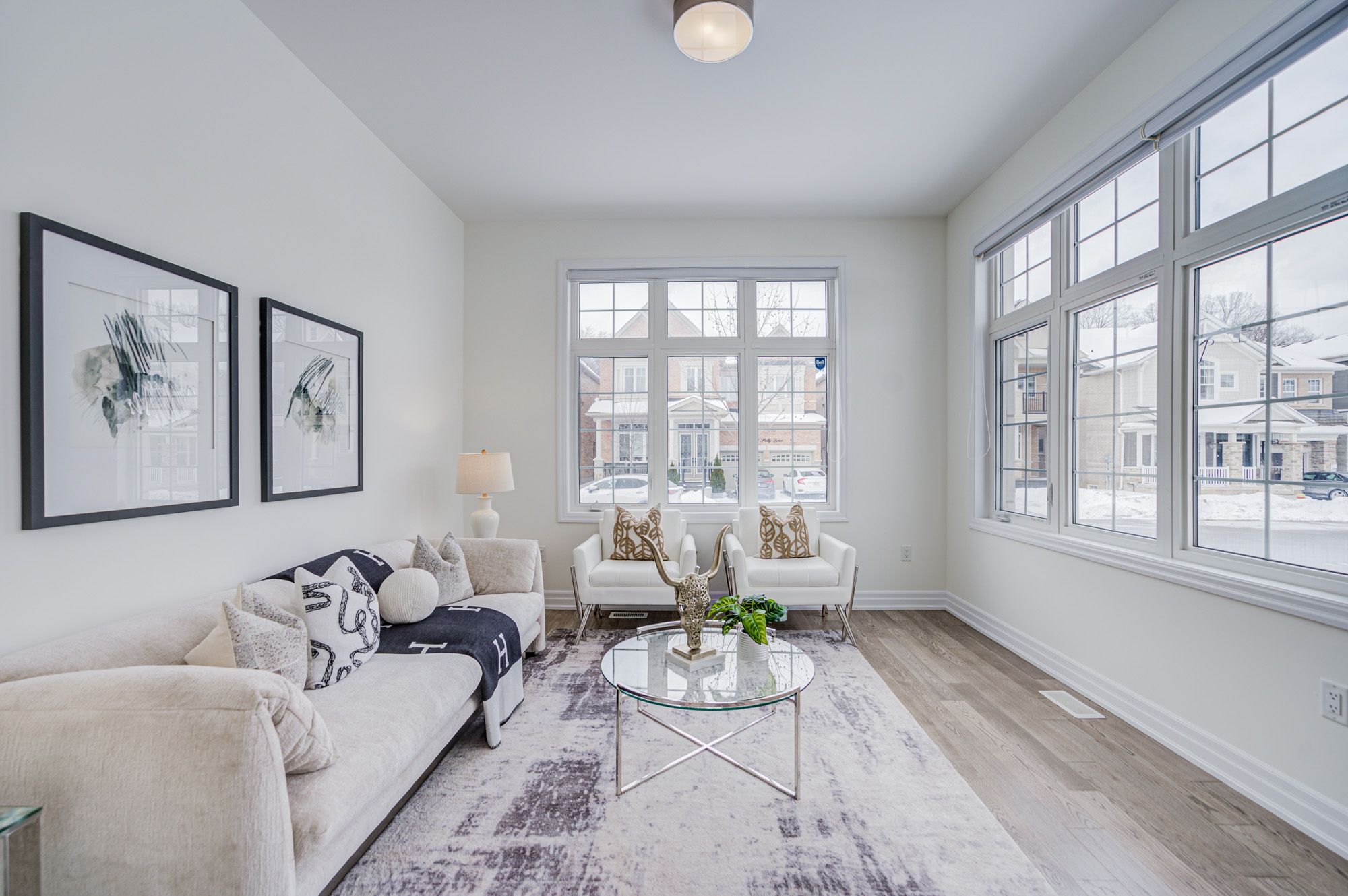 • Bright interior with high ceilings and large windows for natural light.