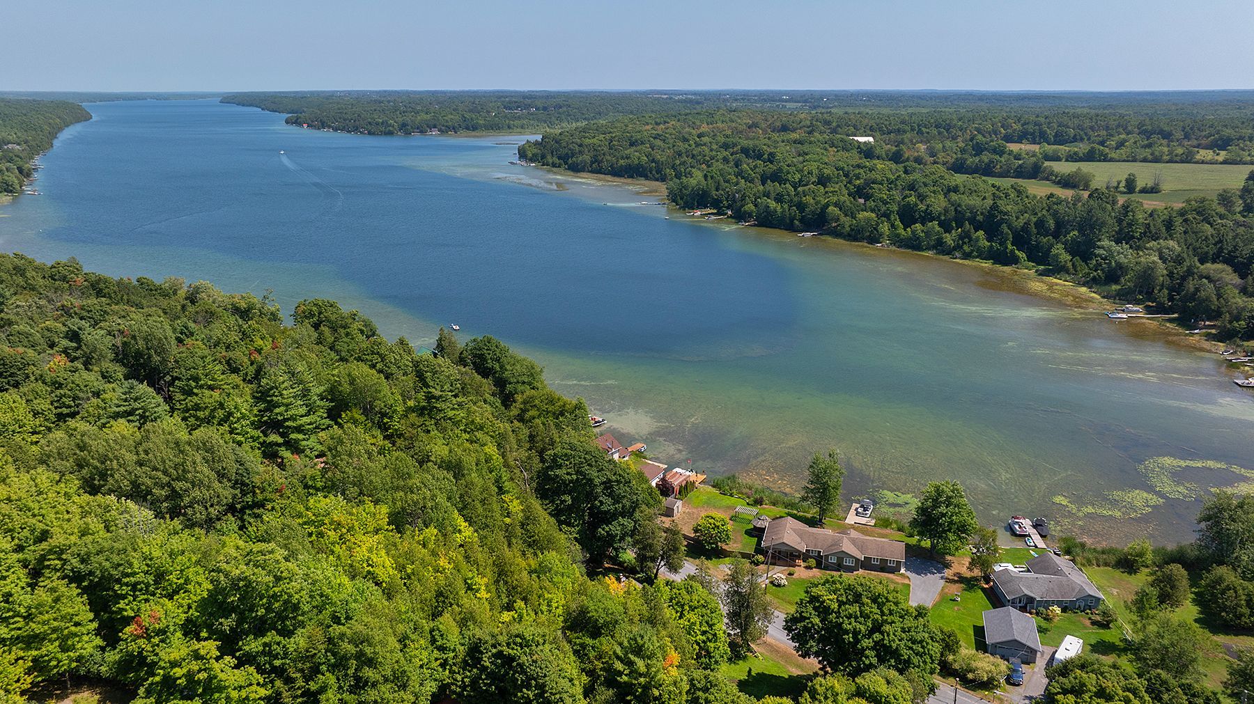 This beautifully maintained two-storey brick and stone home stands as both a welcoming family retreat and a peaceful lakeside sanctuary. A short drive from kingston's conveniences, it radiates serenity and timeless appeal. Featuring four generously sized bedrooms and two full bathrooms, this residence is ideal for family life or hosting guests. With open concept living on the main level and finished basement that includes a walk-out, adding alot of versatile space. Updates include a high-efficiency heat pump (2022), owned hot water tank, and an advanced uv water treatment system-all geared toward modern comfort and efficiency. A wood-burning fireplace insert (2019) adds cozy ambiance to the den during cooler months. Despite the idyllic setting, high-speed fiber-optic internet brings convenience, making remote work or streaming effortless. This property includes a second parcel of land, enhancing privacy and potential. With 21 feet of developed shoreline, you have direct lake access and idyllic waterfront views. A sturdy 10ft by 20ft new dock with electronic rail systems for effortless storing and launching your water craft. Loughborough lake itself spans 24km, offers over 119km of shoreline, and is known for its fishing, boating, and beautiful landscapes. Also the proximity to kingston (approximately 20km north of the city center) makes this home great for an air b&b and a rare find for those seeking retreat and accessibility with your own access to loughborough lake.
