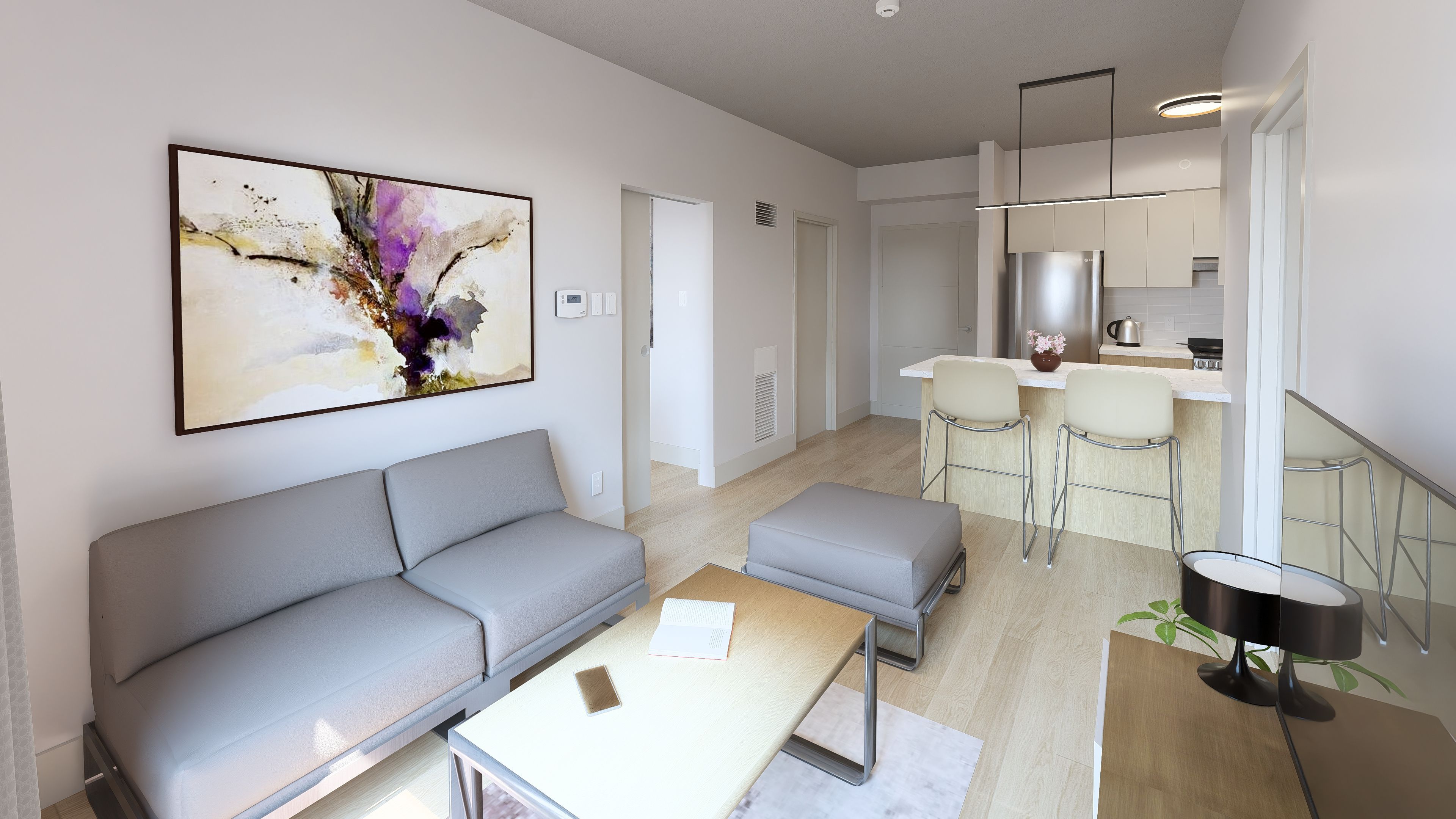 • Modern open-concept living space perfect for relaxation and entertaining friends.