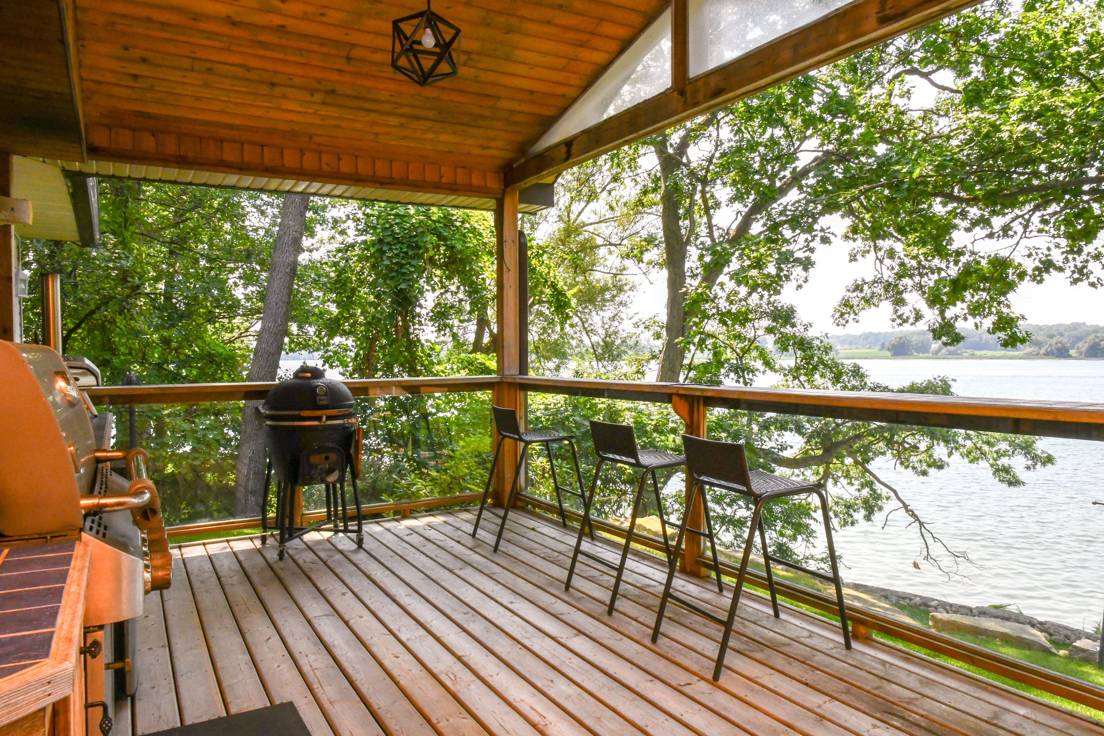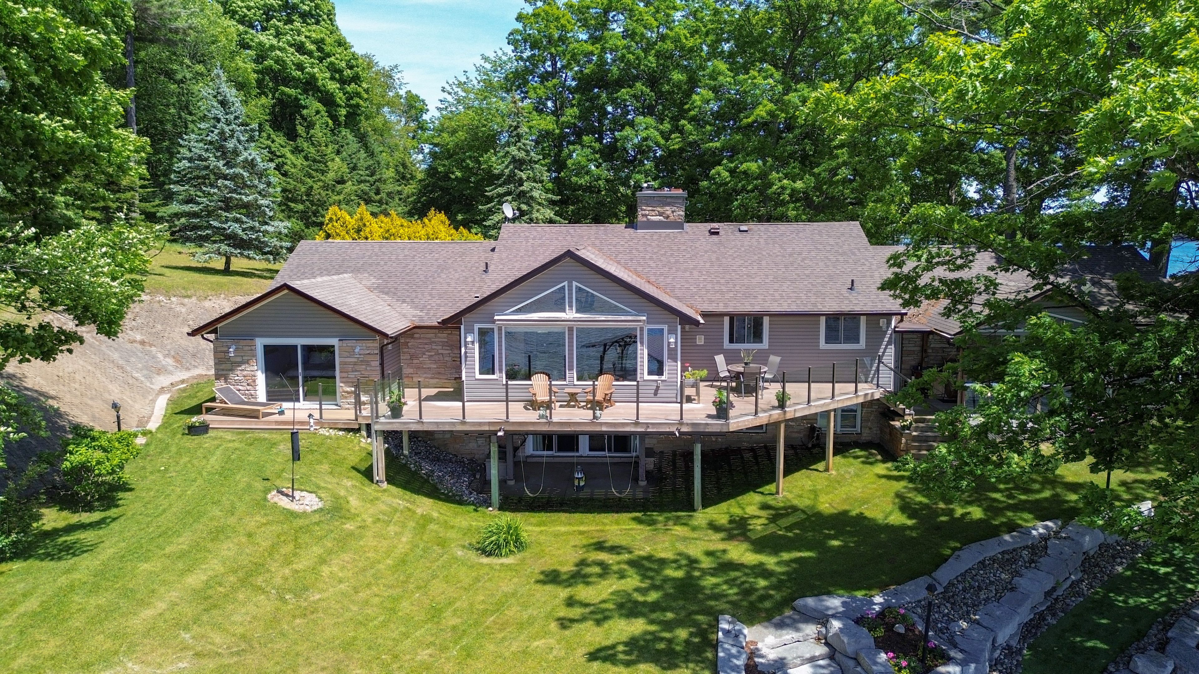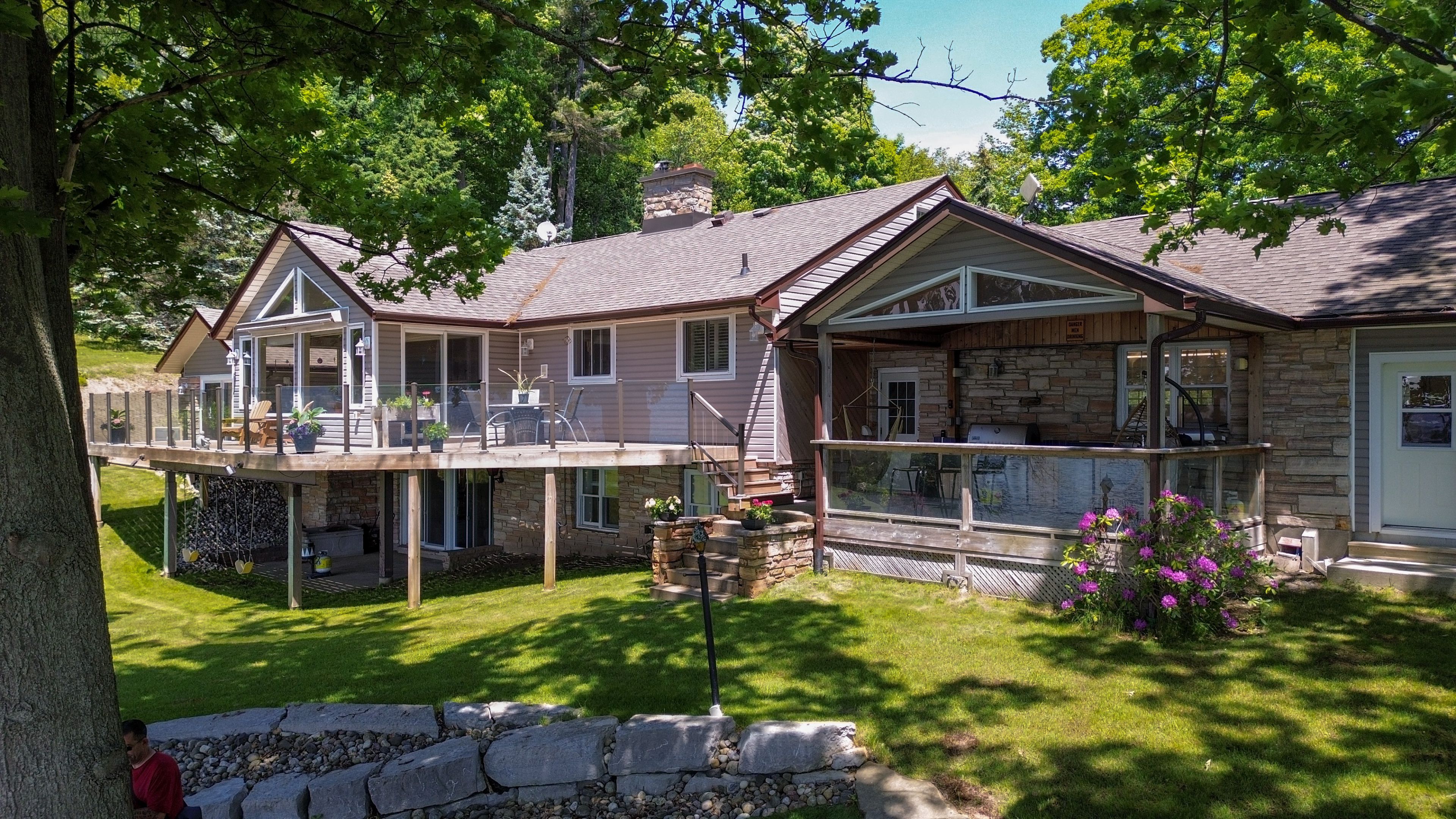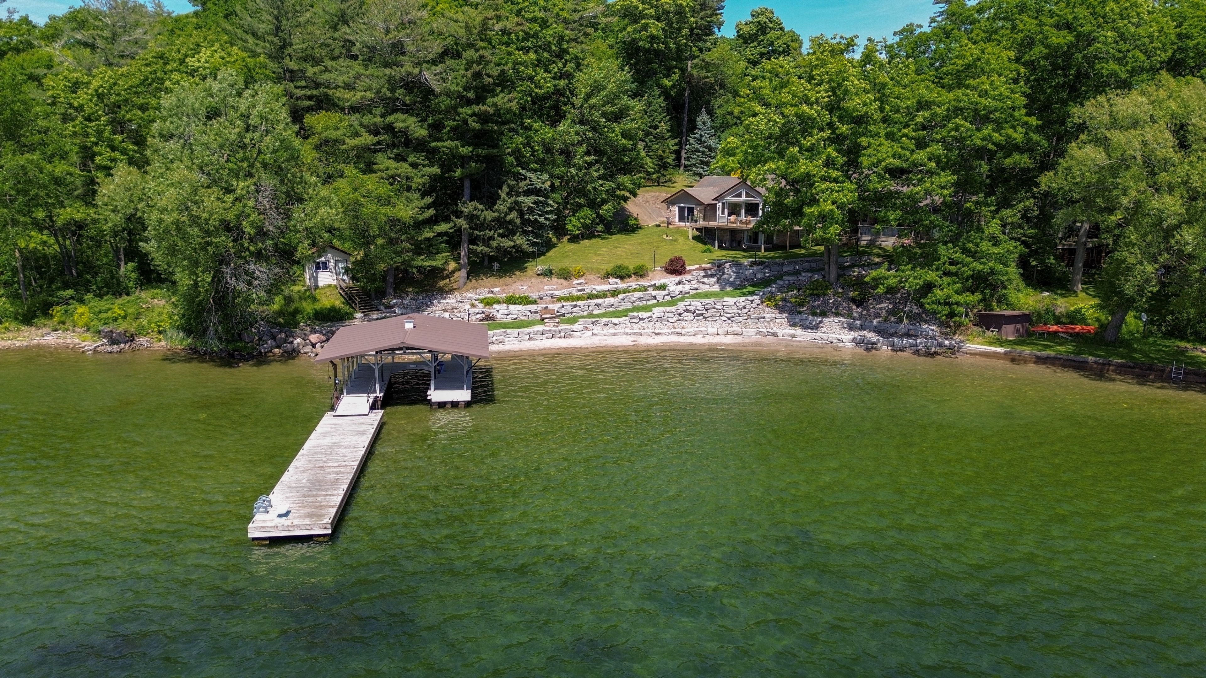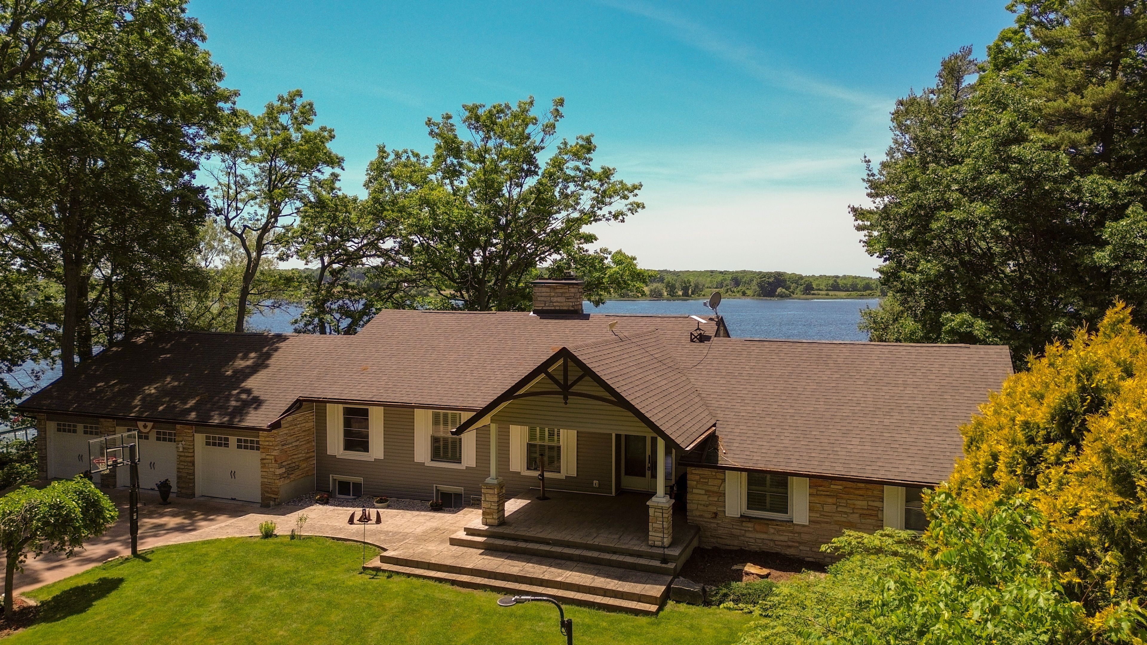 Don't miss this opportunity to own one of the most beautiful properties on the st. Lawrence river. Enjoy your morning coffee with a sunrise over the admiralty islands or a sunset on the bateau channel. Offering 5 bedrooms, 4 1/2 bathrooms on two levels, a large chefs dream kitchen featuring granite countertops, a 5 burner cooktop, double wall ovens and stainless steel fridge. The sit down bar is a perfect spot to be part of the cooking and entertaining experience. Relax by one of the 3 fireplaces or simply enjoy the comfort of the economical geothermal heat and heated tiles floors in the kitchen and bathrooms. Take in the panoramic views from the full season sunroom, spacious front deck with glass railings or while bbqing in the covered outdoor kitchen with fridge and sink. The waterfront boasts a beautiful sand beach, stacked limestone retaining walls, a covered boat port with lift and a 40 foot floating dock. This is the perfect home to accommodate all your toys, with a 3 car attached garage, a beach house for water toys and a detached garage for extra storage. For the gardener there are a multitude of of established gardens all maintained by and automatic irrigation system. This is spectacular home is sure to check all the boxes and is a once in a lifetime opportunity! Don't let this one slip by! Book a showing now to start making incredible family memories!