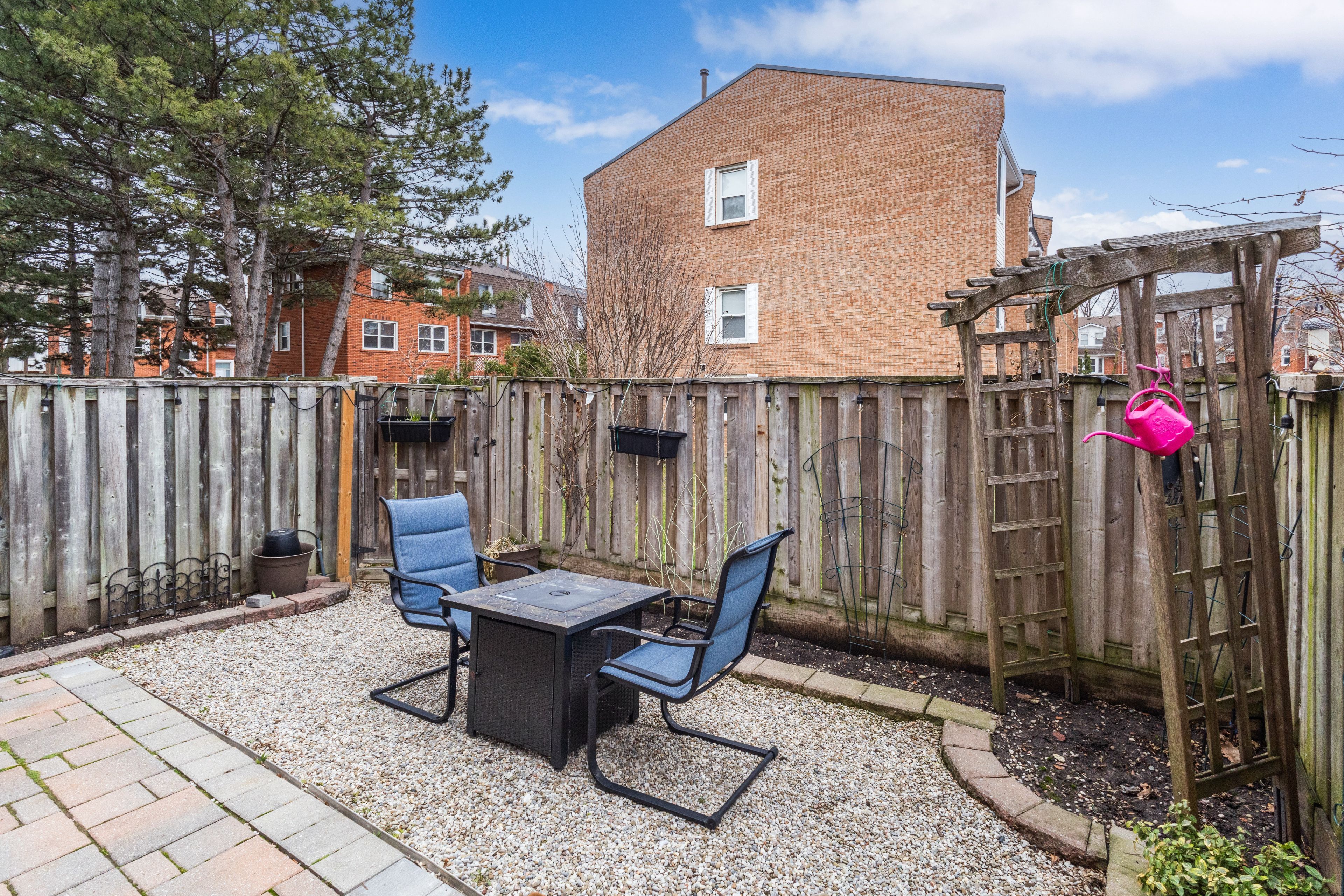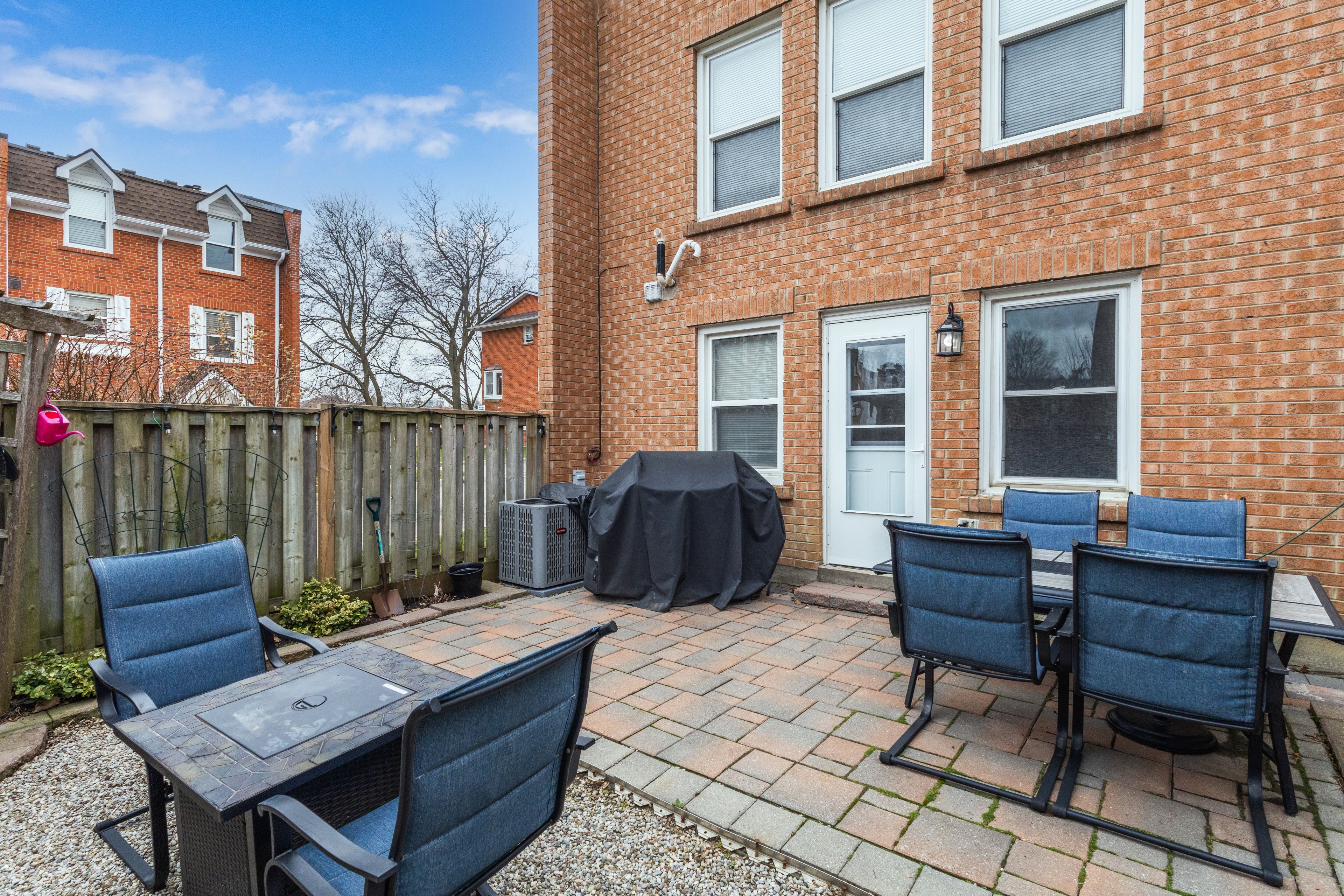 • Private fenced backyard with an interlocking stone patio for entertaining.