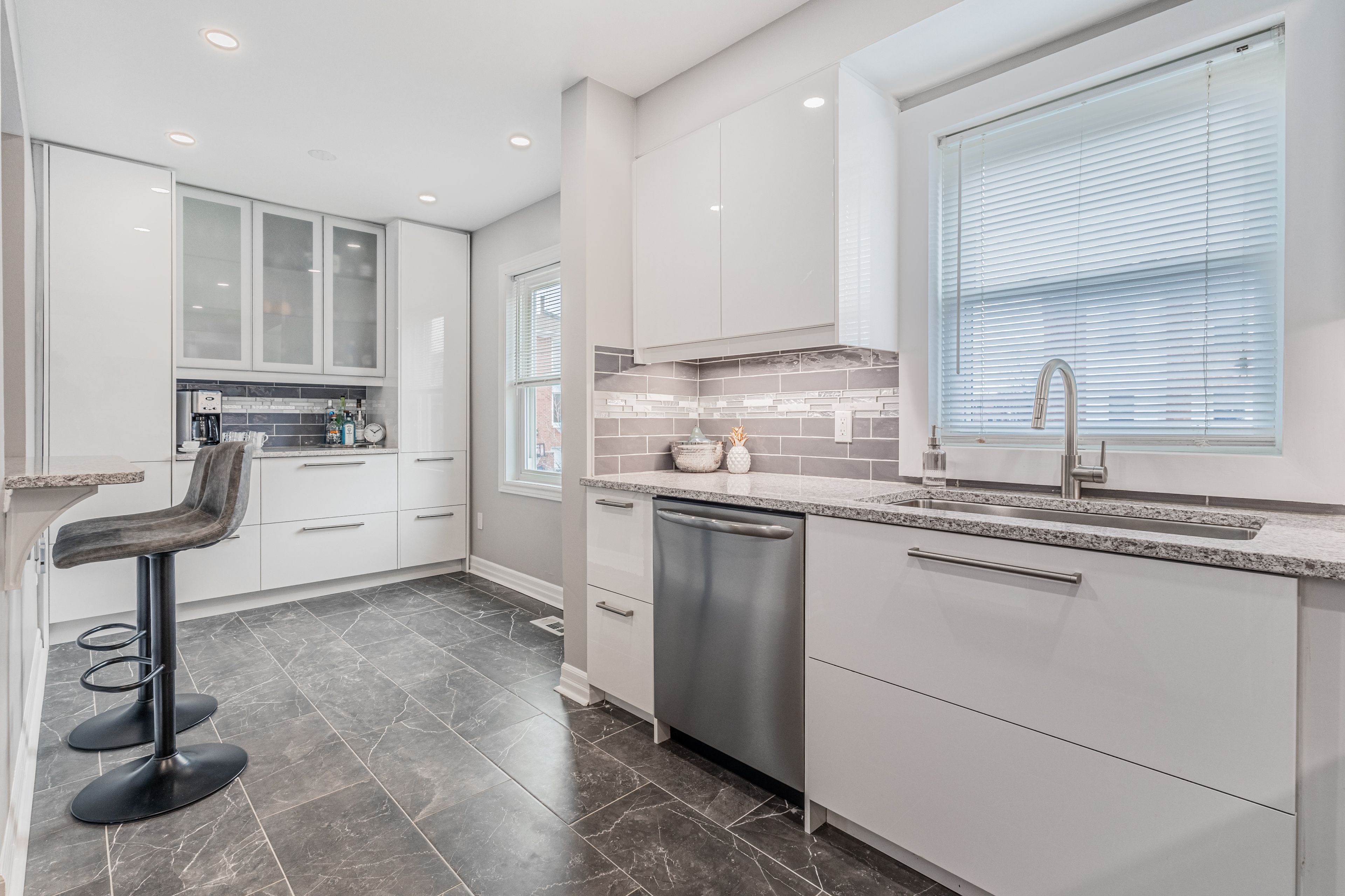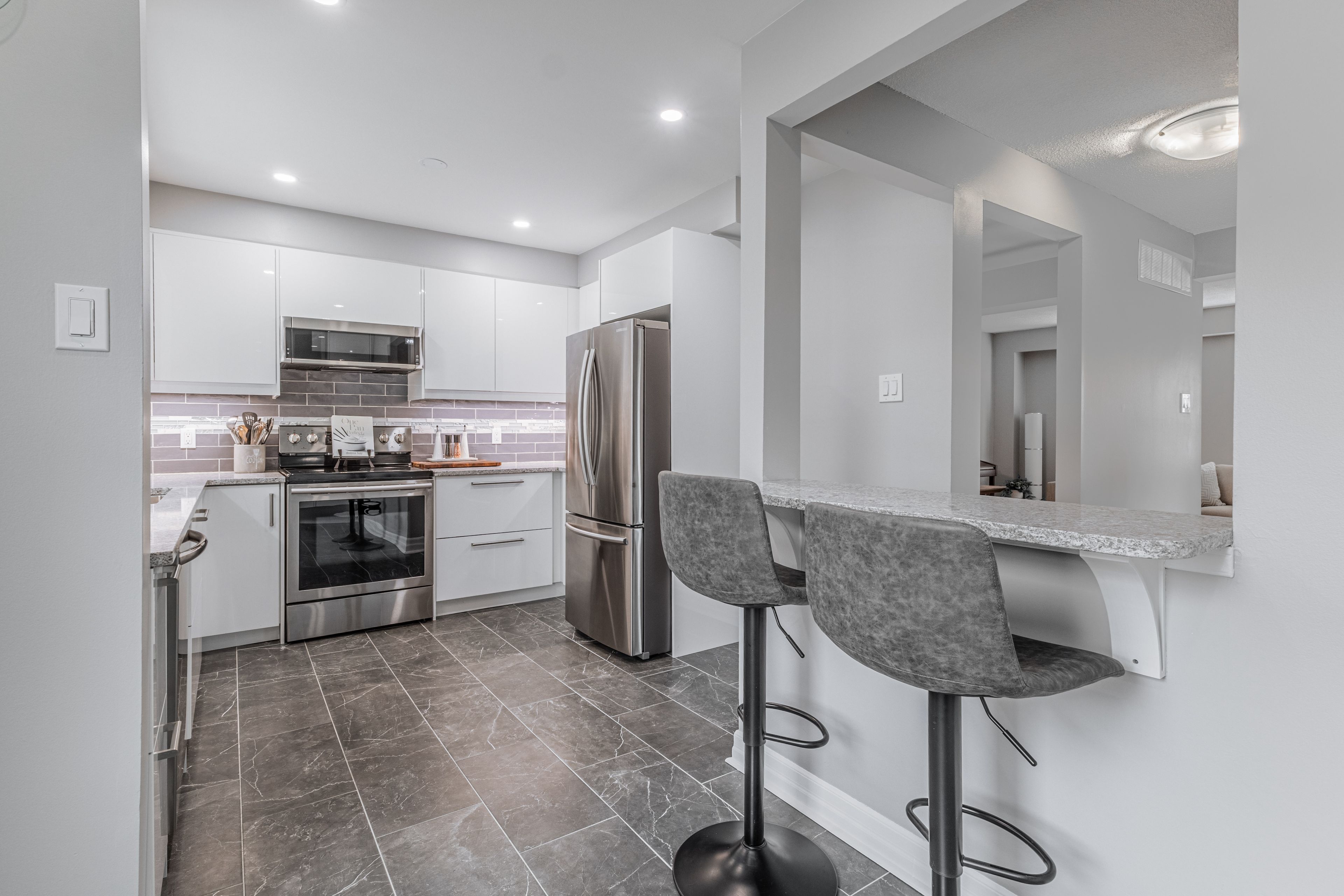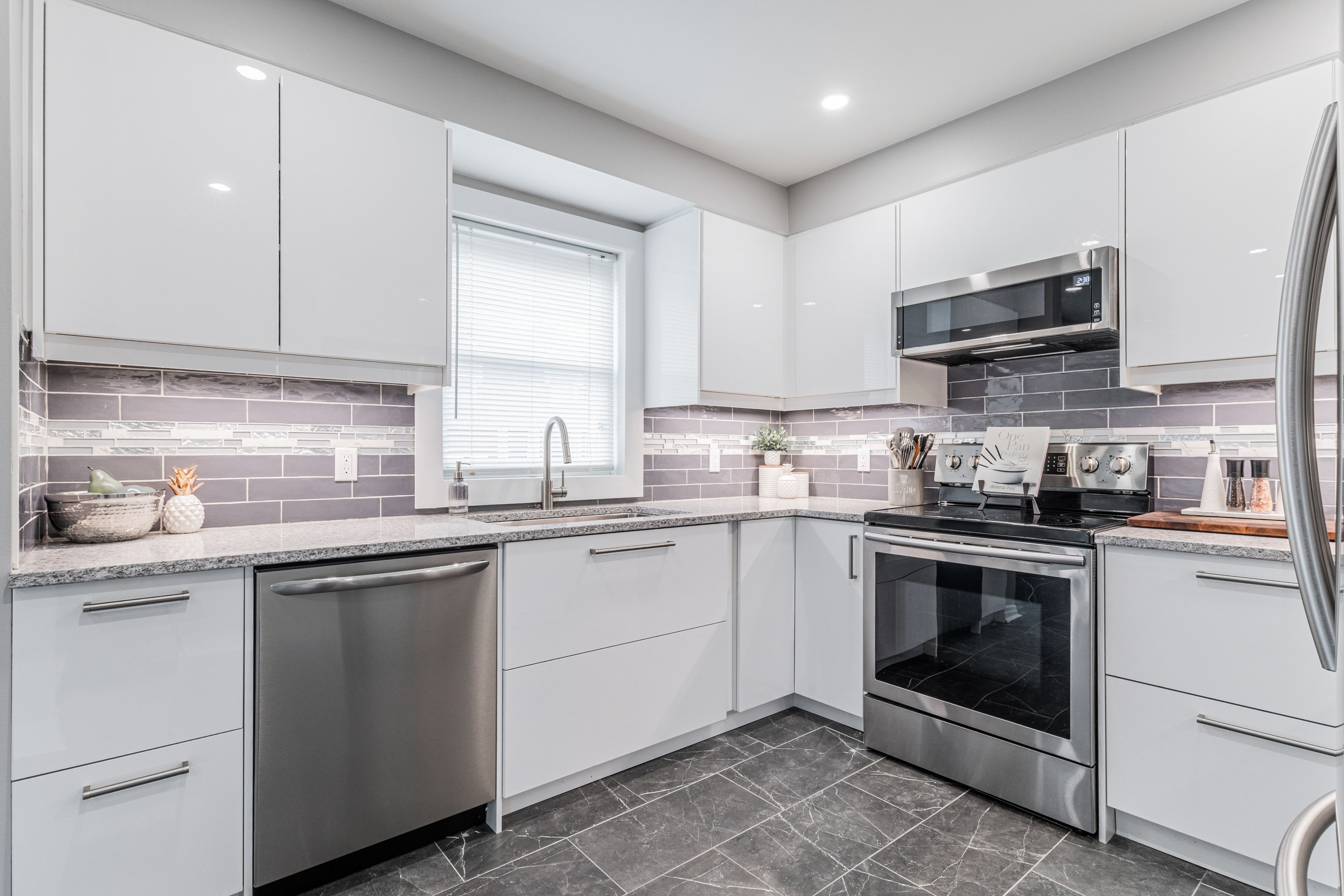 • Stunning updated kitchen features quartz countertops and stainless steel appliances.