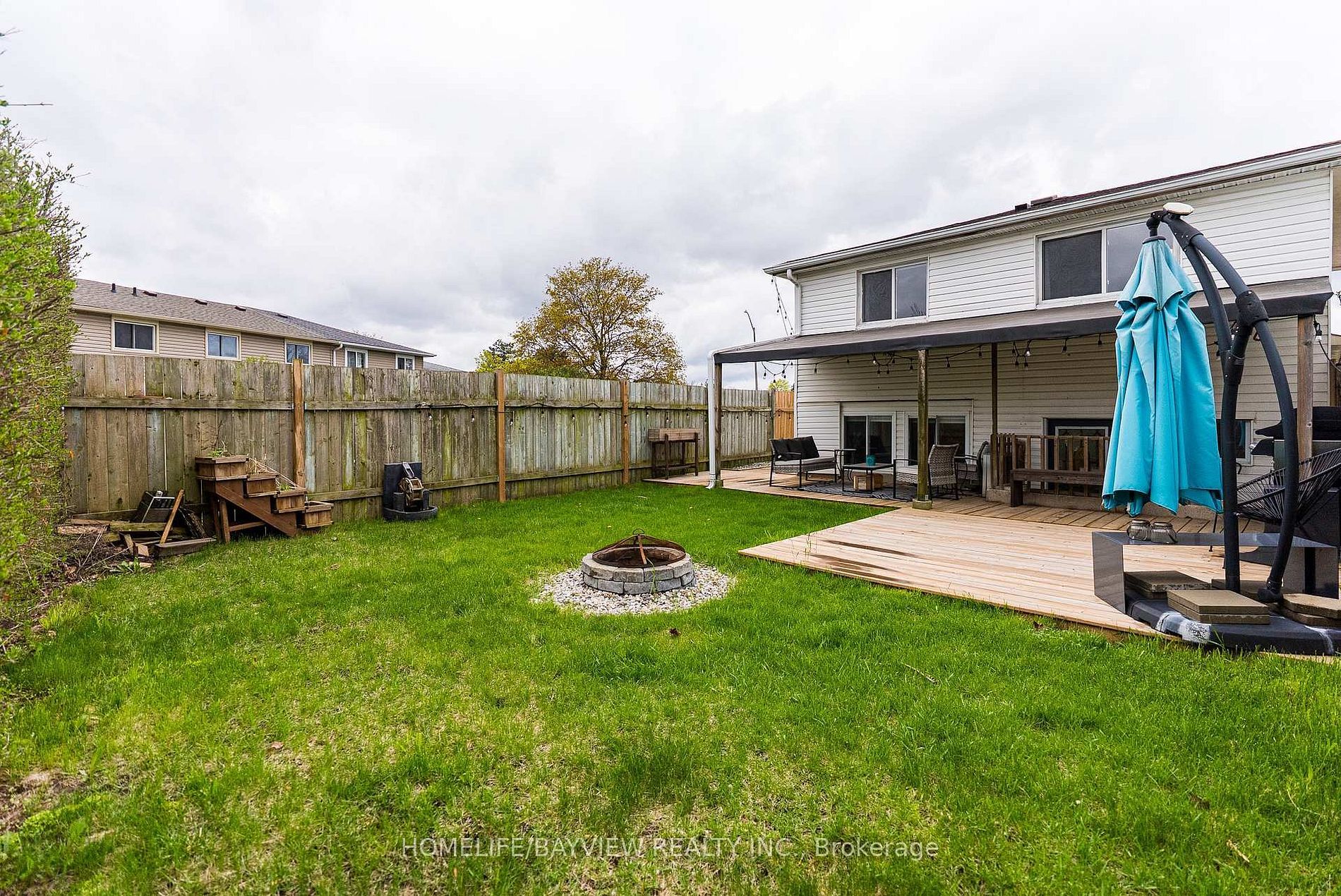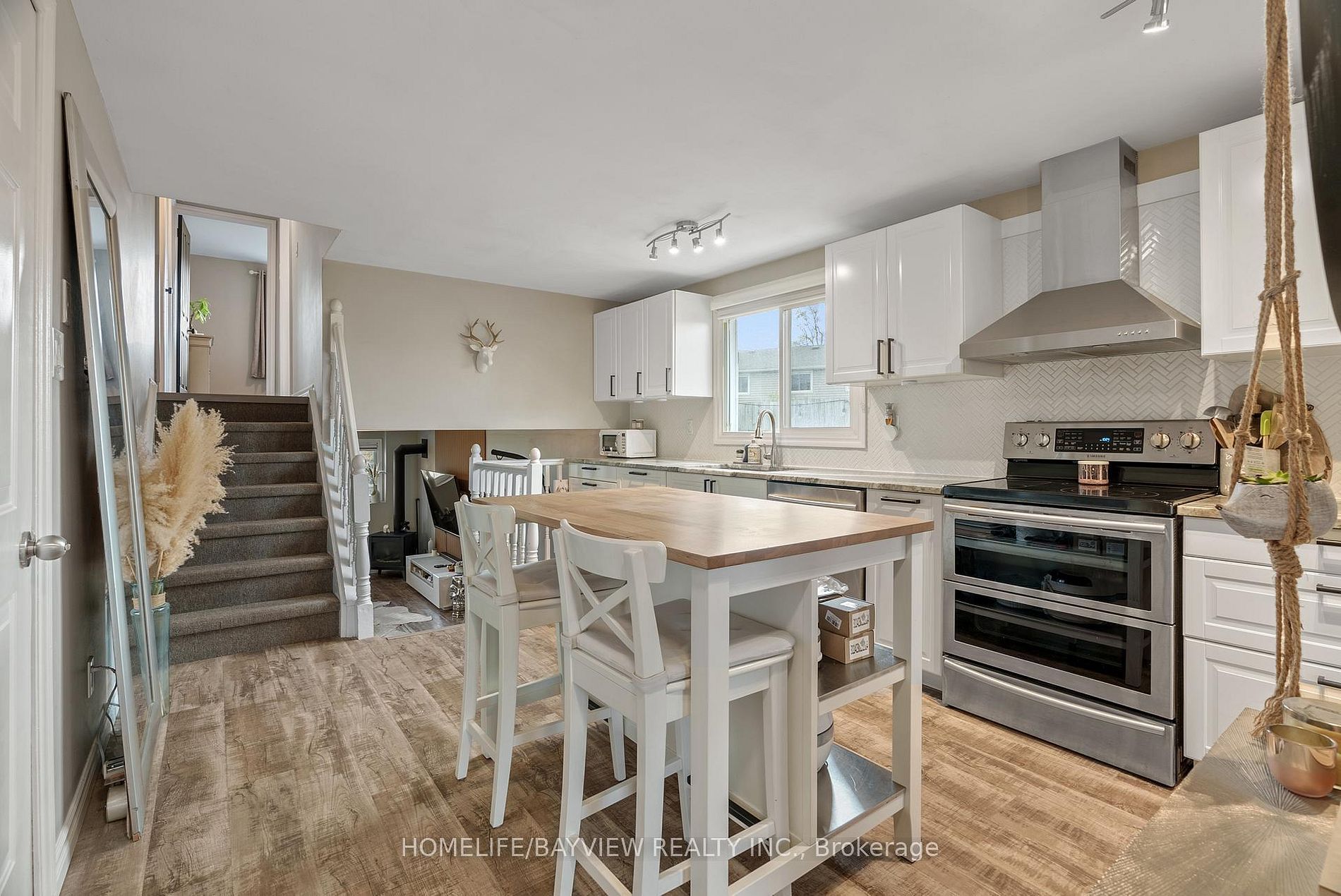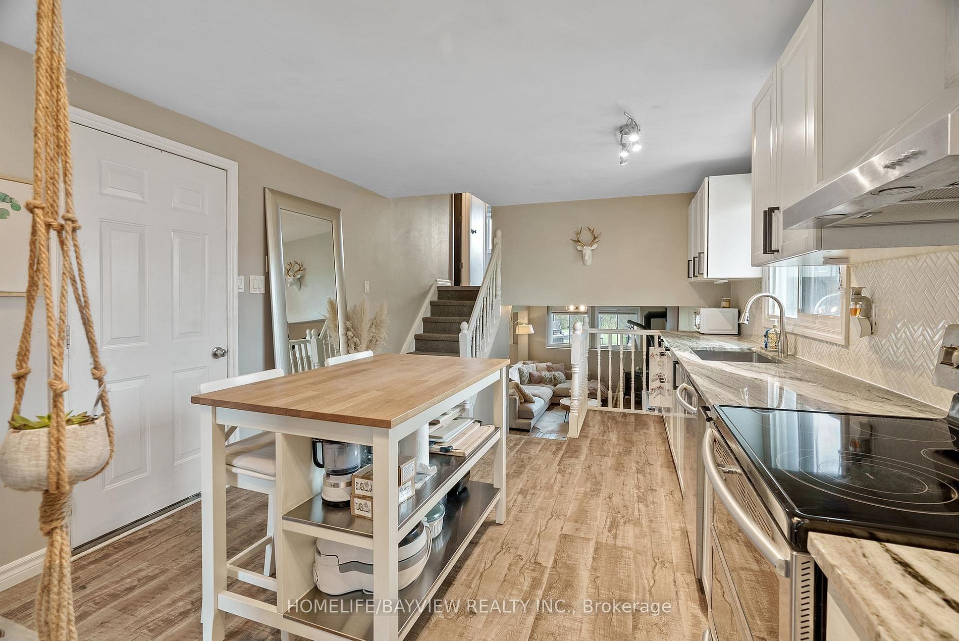 Welcome to 333 preston parkway a rare gem backing onto a serene greenbelt. Nestled in a prime location with no neighbors to one side, this beautifully maintained home offers the perfect blend of privacy, convenience, and comfort. Just 30 seconds from the 401 and directly across from a grade school, park, bus stop, and church, this property is ideal for families and commuters alike. Enjoy abundant natural light throughout the day thanks to the desirable east-west exposure, creating a bright and airy atmosphere in every room. The modern kitchen is a chefs dream, featuring quartz countertops, upgraded appliances, ample cabinetry, and an island perfect for casual meals or entertaining guests. The expansive great room is anchored by a cozy natural gas fireplace with custom built-in shelving and opens directly to a fully fenced, upgraded backyard. Relax under the covered patio or gather around the firepit for memorable evenings outdoors. Conveniently located on the bottom level are a stylish powder room and laundry room. Upstairs, the generous primary bedroom boasts an oversized closet, while two additional well-proportioned bedrooms and a full three-piece bathroom complete the upper level. This house will make you feel at home.