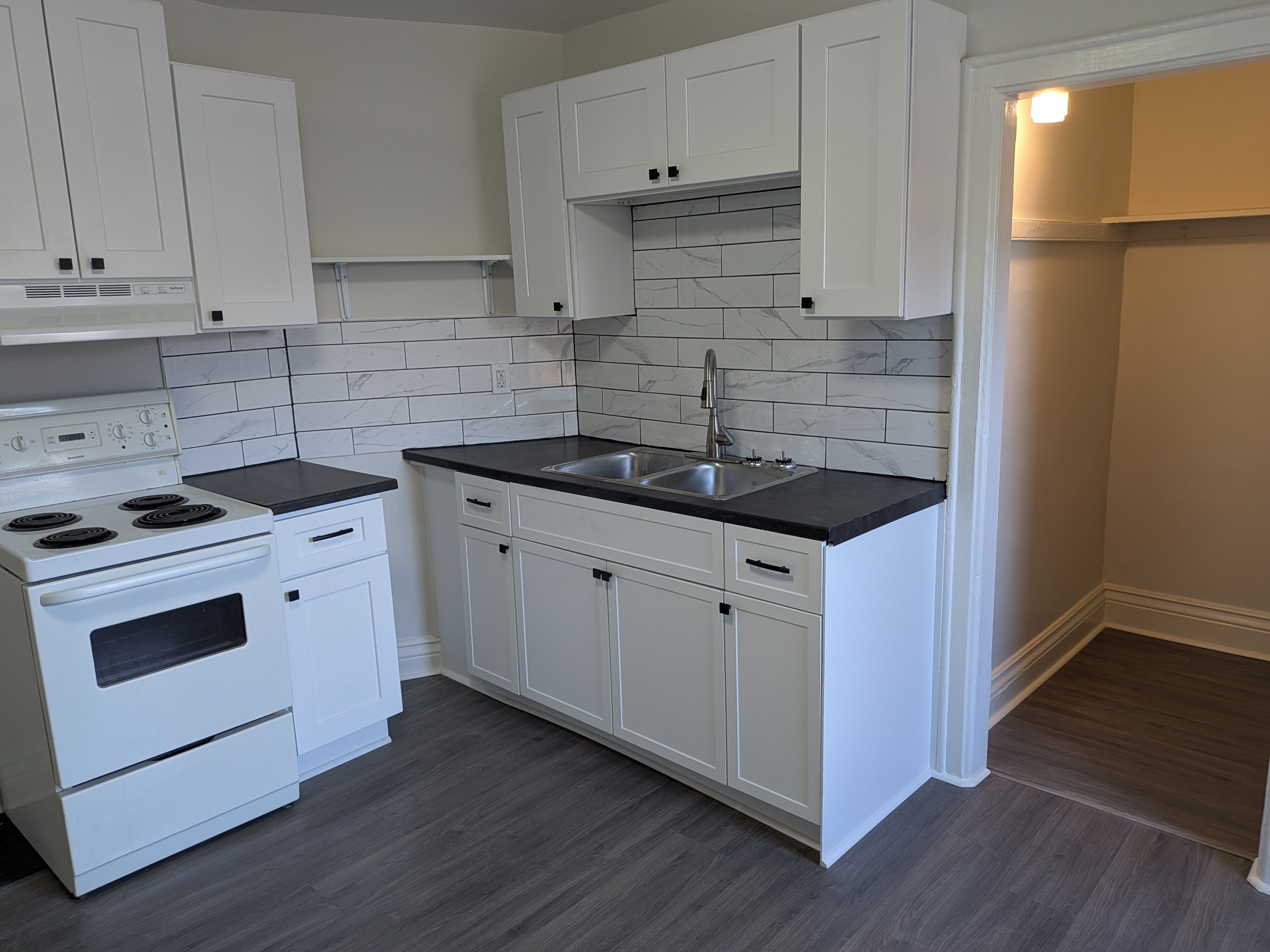 Updated second floor apartment located in a legal five-plex, offering a private entrance and a well-maintained, fully updated interior. Hydro, gas and water is included. Functional kitchen layout features a double stainless steel sink, refrigerator, and stove. Four-piece bathroom. Not lived in since the unit was updated. Building contains four other residential units. Smoke and carbon monoxide detectors installed in compliance with safety standards. Conveniently located close to public transit out front and within proximity to a new go station currently under construction, providing future commuter access. No parking available. Ideal for tenants seeking a private, updated unit in a small residential building with transit accessibility. A1 tenants only. Full credit check required.