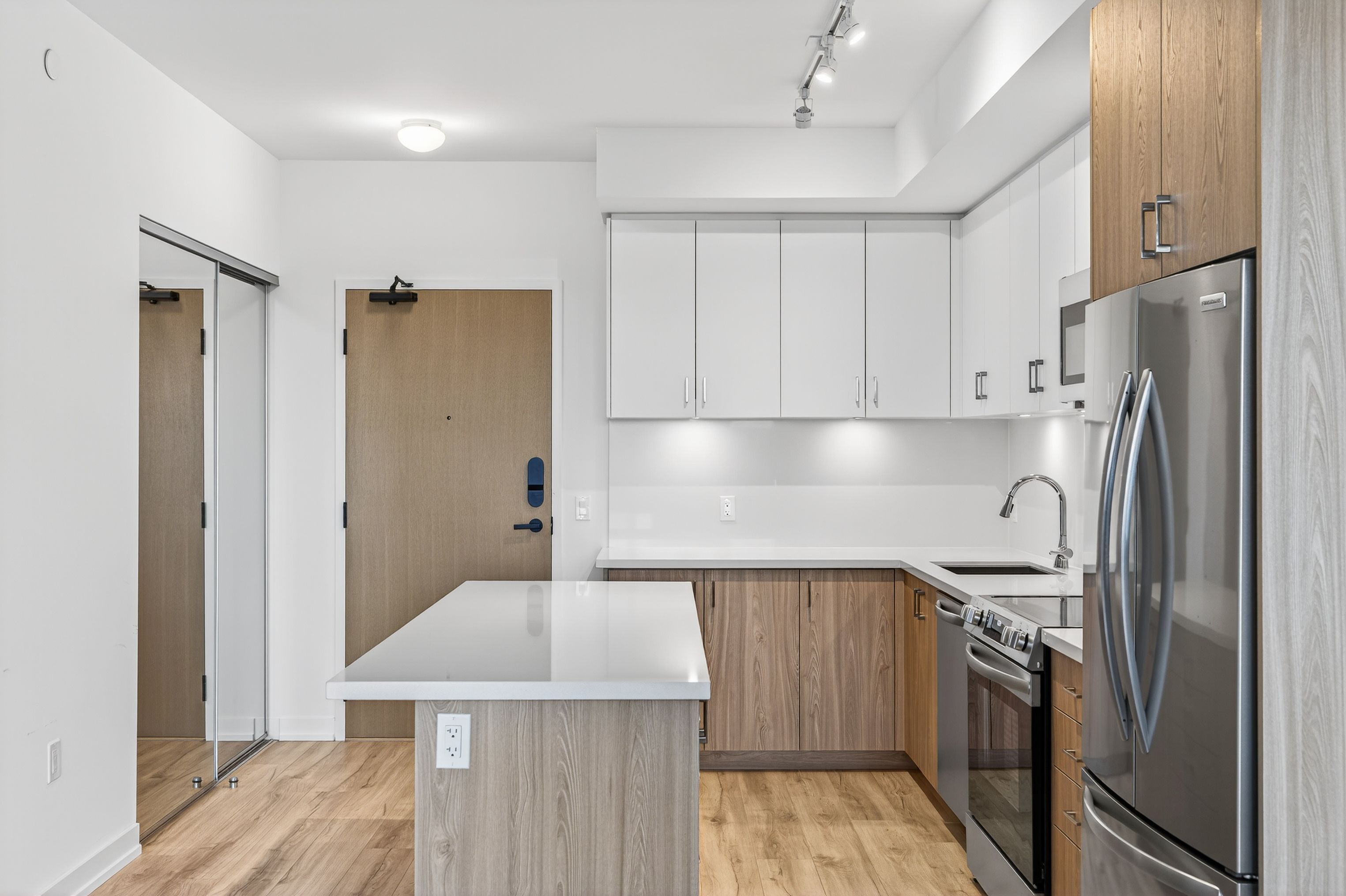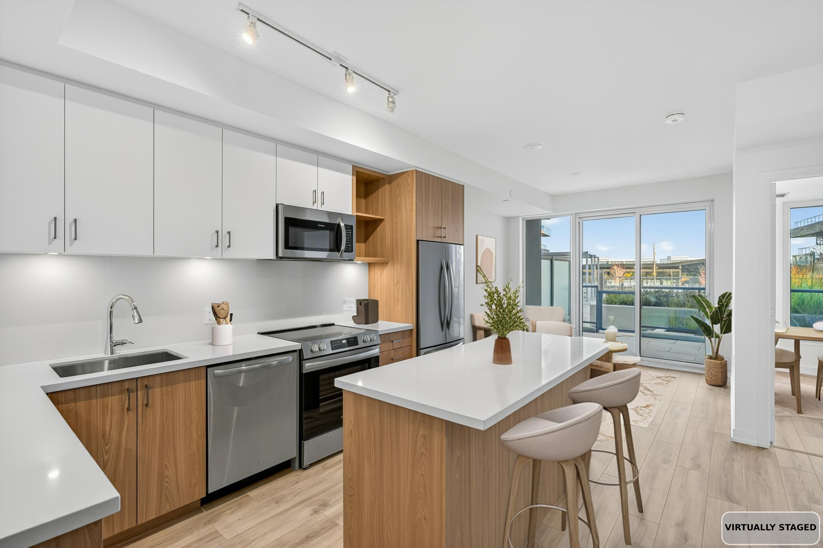 Live the friday harbour resort lifestyle every day in sunseeker's newest and most amenity-rich residential community. This brand-new, never-lived-in ground-floor 1-bedroom offers a rare advantage with its own private, gated walk-up entrance from the beautifully landscaped courtyard, providing secure, effortless, single-level living without elevators and sunny south exposure overlooking the lake club. Step directly outside to trails, amenities, dining, the marina, beach, and the lake club's indoor pool, gym, restaurant, sauna, and social spaces. Ideal for professionals who want a flexible live/work home, seasonal residents seeking easy in-and-out access, or anyone craving a more convenient, contemporary resort lifestyle, this suite blends comfort with true practicality. Inside, the bright and airy interior features a neutral palette, wide-plank flooring, and a modern l-shaped kitchen with clean lines, full-size appliances, and efficient storage. The layout includes a walk-in shower for enhanced everyday comfort and accessibility. Designed for modern living, sunseeker incorporates latch smart access for easy, keyless entry throughout the building and cybersuitex for booking amenities and managing resident services right from your phone. Residents enjoy hotel-inspired spaces including indoor entertainment and lounge areas, games and movie rooms, a golf simulator, a pet wash station, and two beautifully designed courtyards with pools, hot tubs, bbq areas, seating and dining zones, and places to connect and unwind. Perfect for downsizers, retirees, executives, boaters, or those ready to "test-drive" the friday harbour lifestyle, this beautiful new home delivers style, simplicity, low-maintenance living, and exceptional accessibility in a premier resort setting.