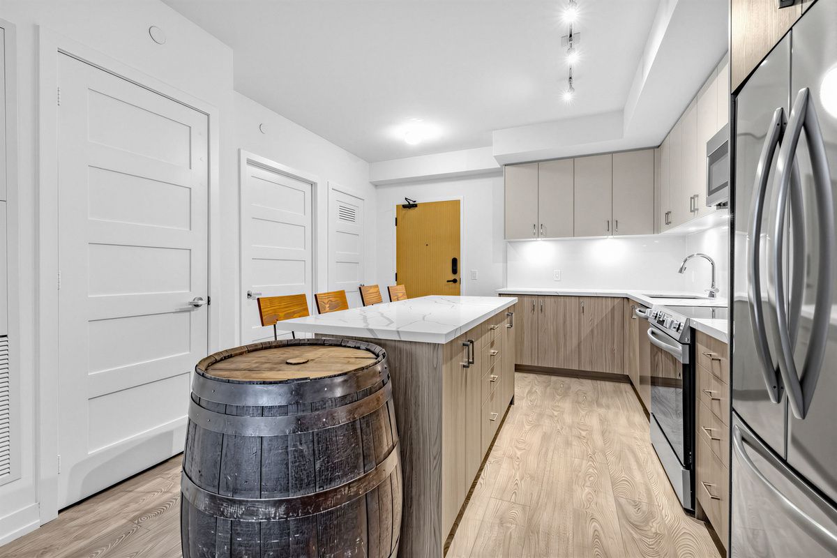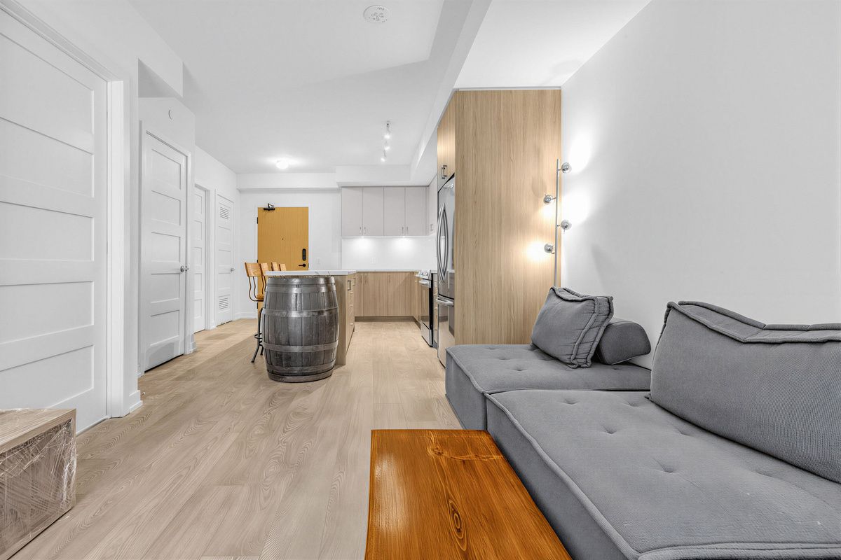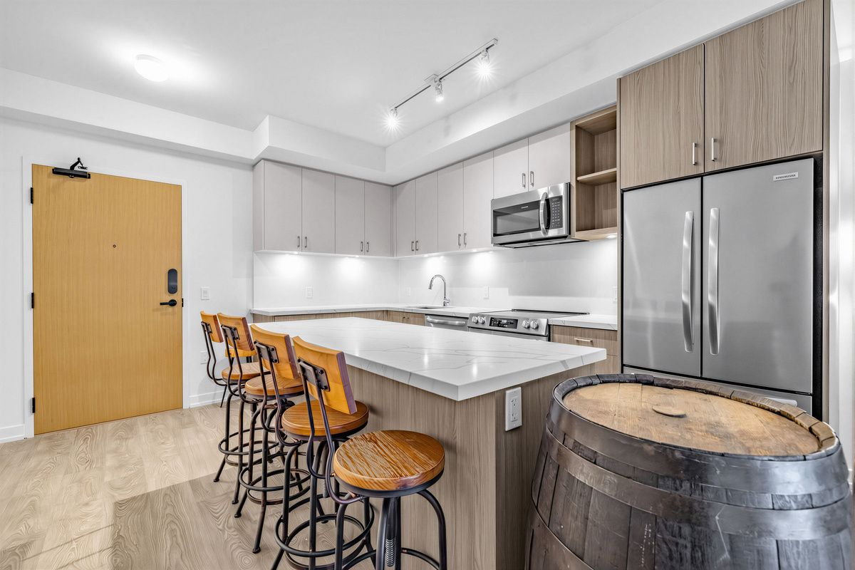 ***rare ground-level sunseeker suite with expansive private terrace*** welcome to this beautifully appointed 1-bedroom ground-floor residence at sunseeker, offering effortless resort-style living and an impressive private terrace rarely available in the building. Inside, the open-concept layout feels bright and inviting. The modern kitchen features sleek stainless steel appliances, dual-shade cabinetry for a contemporary touch, and barstool seating perfect for casual dining or entertaining. Thoughtfully designed storage keeps the space clean and functional. The living area offers a comfortable lounge setting with a cozy sofa arrangement, creating a relaxed space to unwind after a day at the resort. The bedroom is well-sized and includes a full closet, offering both comfort and practicality. The spacious bathroom features modern finishes and a large walk-in shower, delivering a clean, spa-inspired feel. Step outside to your standout feature - a generous private terrace that extends your living space outdoors. Large and versatile, it's ideal for morning coffee, evening wine, or simply enjoying fresh air in your own private setting. Fully furnished and move-in ready, this ground-level suite combines comfort, style, and seamless indoor-outdoor living within one of friday harbour's most desirable buildings. An exceptional opportunity for easy, elevated resort living.