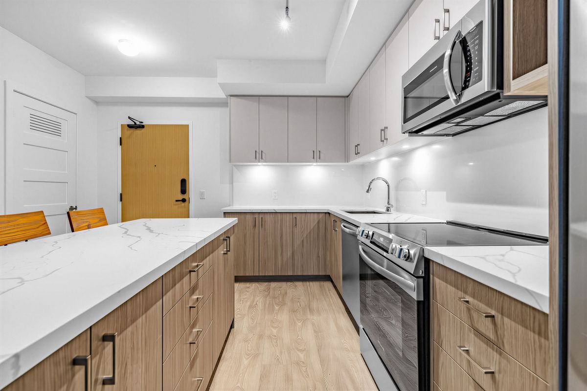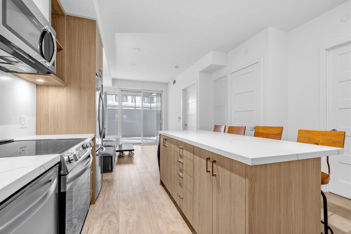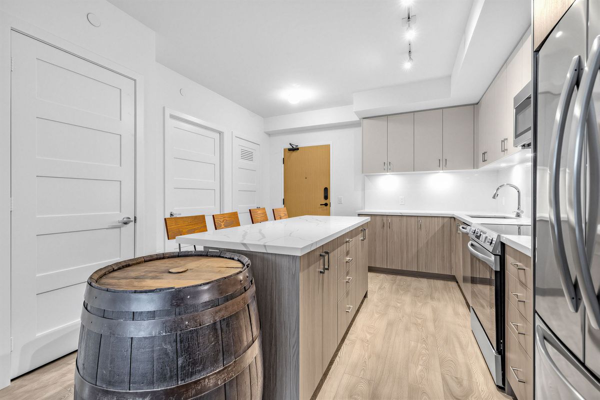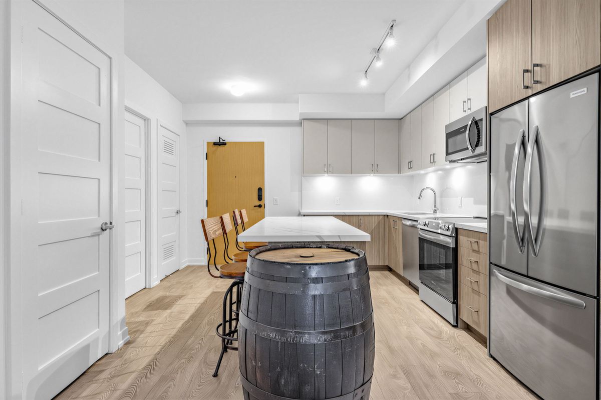 ***rare ground-level sunseeker suite with expansive private terrace*** welcome to this beautifully appointed 1-bedroom ground-floor residence at sunseeker, offering effortless resort-style living and an impressive private terrace rarely available in the building. Inside, the open-concept layout feels bright and inviting. The modern kitchen features sleek stainless steel appliances, dual-shade cabinetry for a contemporary touch, and barstool seating perfect for casual dining or entertaining. Thoughtfully designed storage keeps the space clean and functional. The living area offers a comfortable lounge setting with a cozy sofa arrangement, creating a relaxed space to unwind after a day at the resort. The bedroom is well-sized and includes a full closet, offering both comfort and practicality. The spacious bathroom features modern finishes and a large walk-in shower, delivering a clean, spa-inspired feel. Step outside to your standout feature - a generous private terrace that extends your living space outdoors. Large and versatile, it's ideal for morning coffee, evening wine, or simply enjoying fresh air in your own private setting. Fully furnished and move-in ready, this ground-level suite combines comfort, style, and seamless indoor-outdoor living within one of friday harbour's most desirable buildings. An exceptional opportunity for easy, elevated resort living.