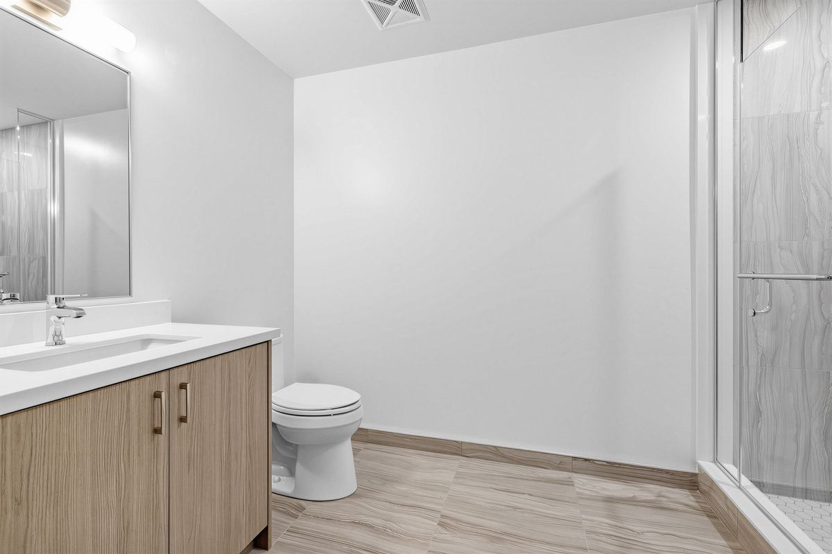 • Spacious bathroom features a large walk-in shower for a spa-like experience.