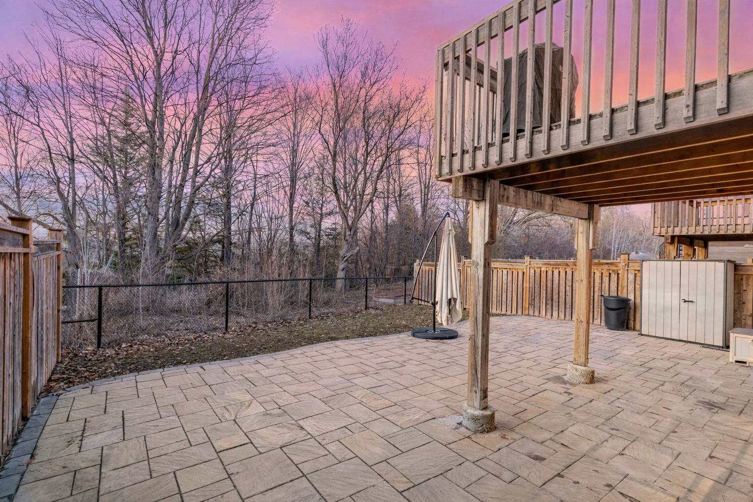 • Ravine-view backyard offers privacy and space for entertaining activities.