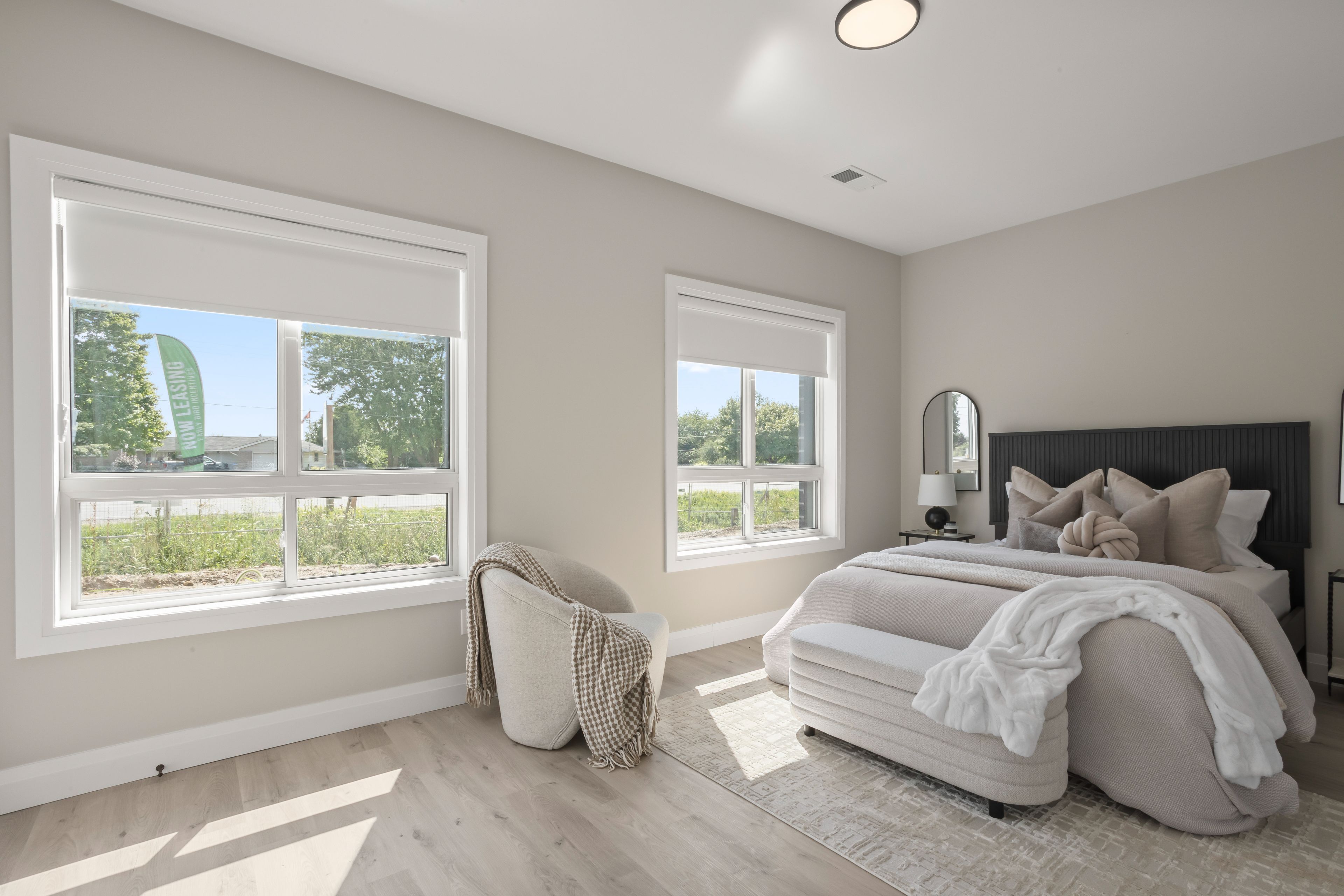 • Spacious primary bedroom with a relaxing atmosphere for unwinding.