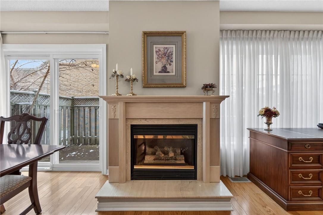 Beautiful 3-bedroom end unit tucked into a quiet corner of the highly sought-after roseland green community. Offering approximately 1,679 sq ft, this home showcases thoughtful design, refined finishes, and meticulous care throughout. Sun-filled living and dining areas feature gleaming hardwood floors, a cozy gas fireplace, and exceptional natural light, creating an inviting atmosphere for everyday living and effortless entertaining. A striking central staircase adds architectural interest to the main level. The separate eat-in kitchen provides generous prep space, under-cabinet lighting, and two large windows for a bright, cheerful cooking and dining experience. The expansive primary suite includes a luxurious 4-piece ensuite with a soaker tub, corner shower, separte vanity with make-up desk, and a large walk-in closet. The fully finished basement extends your living space with a versatile office or den, a full 3-piece bath, comfortable family room, well-designed laundry area, and abundant storage. Step outside to a private courtyard-style patio-complete with a low-maintenance, pet-friendly artificial turf area. A rare opportunity to own a remarkable townhome in coveted south burlington-move in and enjoy!