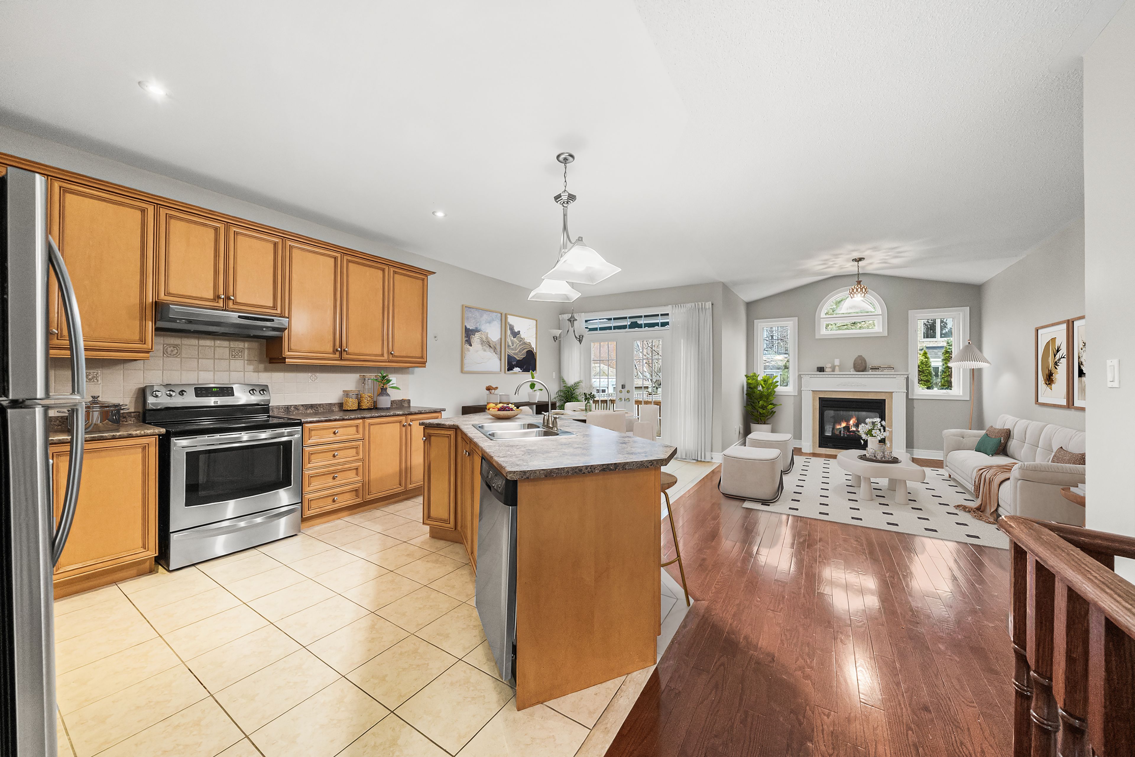 Perfectly positioned just steps from the lake in oakville's sought-after lakeshore woods community, this charming and well maintained bungalow offers over 3,500 sq ft of total living space and the comfort and ease of true main-floor living in an exceptional setting. The thoughtfully designed layout features a roomy main floor foyer and a combination living room and dining room with hardwood floors. The spacious eat-in kitchen opens up to a warm and inviting family room that is equipped with hardwood floors and a fireplace-creating a natural gathering place for everyday living. The main level offers two generous sized carpeted bedrooms, two full bathrooms, and the convenience of main-floor laundry, making this home as practical as it is functional. A beautifully landscaped and private backyard boasts a peaceful setting to relax or entertain, all just steps from the waterfront, scenic trails, parks, and the many amenities that make lakeshore woods such a desirable place to call home. A rare opportunity, as bungalows with double car garages rarely come on the market in this neighborhood. Some of the photos are virtually staged.