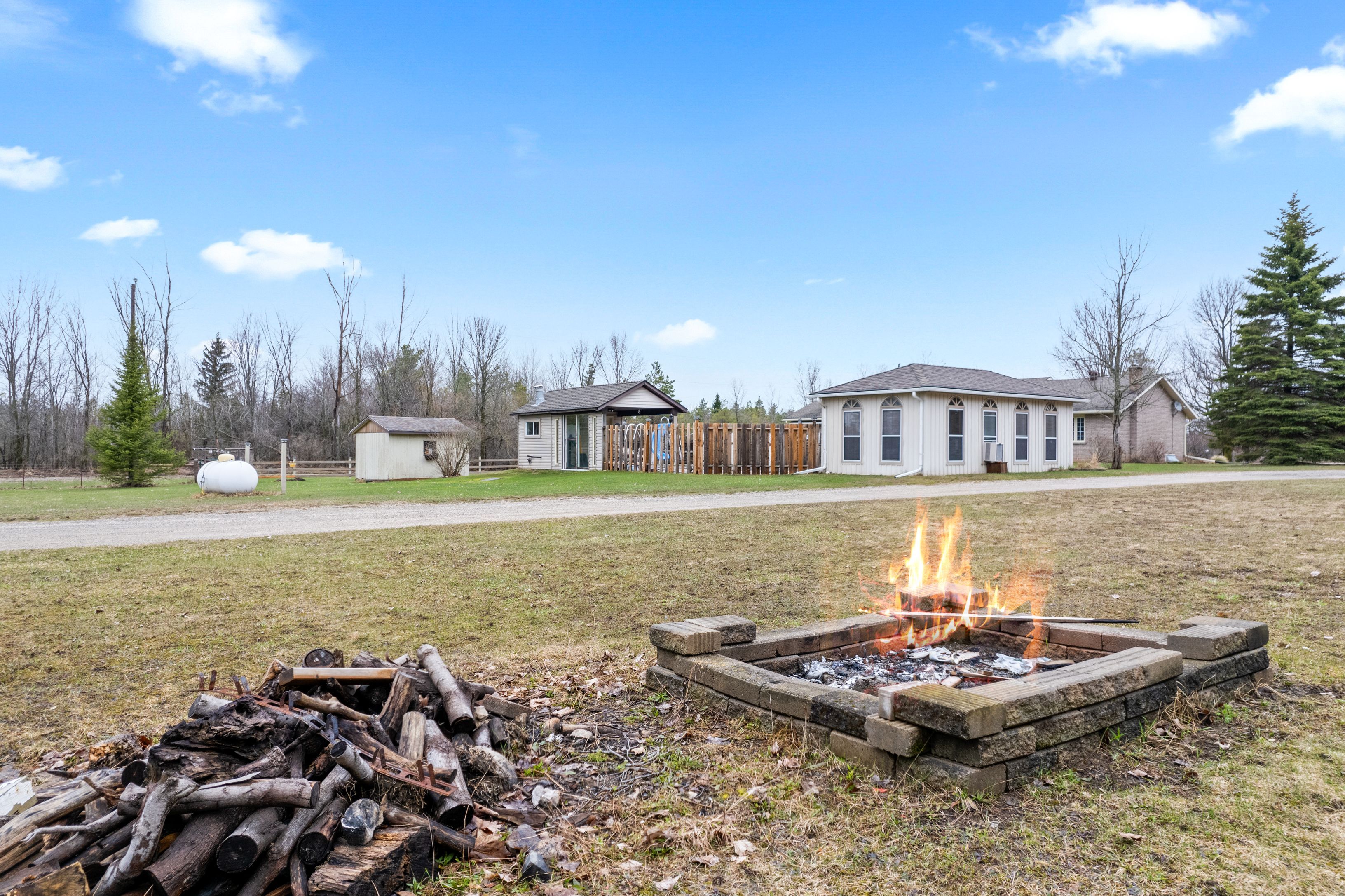 Rural living meets industrial shop opportunity. Situated on 3. 08acres on the outskirts of durham, easy access to hwy 6 or hwy 10. Showcasing both a peaceful rural lifestyle, inground pool, and m1 industrial zoning. This is a rare combo - run a business from your backyard while raising your family. The 4 bedroom, 3 bathroom bungalow with attached single car garage was designed for a growing family. The finished basement with large wetbar, family rec room, 1 bath and 1 bedroom, is perfect hang out space for the kids to grow into or a convenient in-law suite. The outdoor living space is ideal for summer relaxation, featuring fenced inground pool with a dedicated pool house and cabana, and a rear deck grilling space overlooking the large yard with a fire pit. The shop at the rear of the property is 30' x 53' with: concrete floors, heated, hydro, water, and a convenient 2-piece bathroom. The additional storage shed provides ample space for materials or equipment.