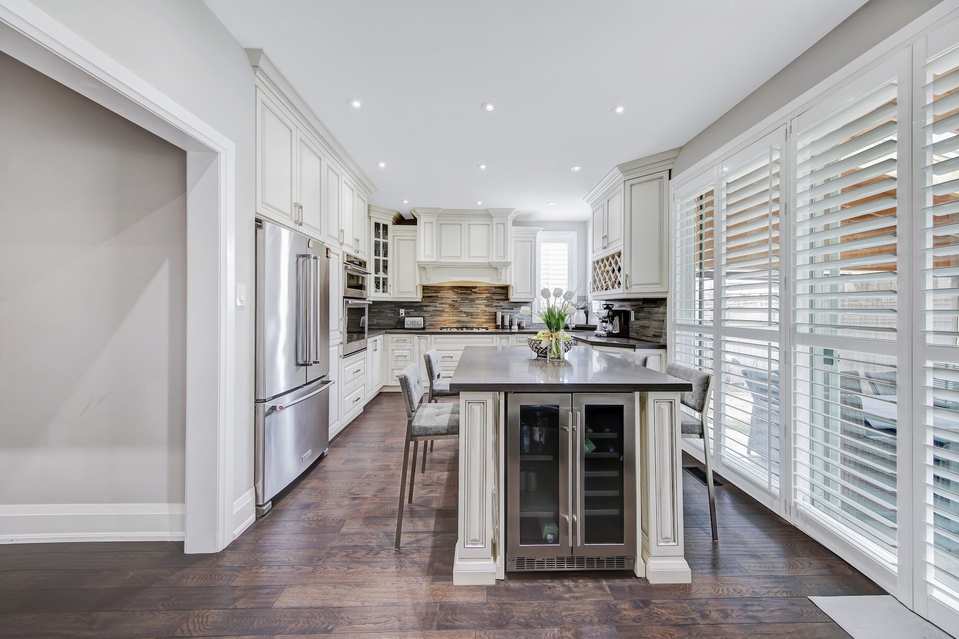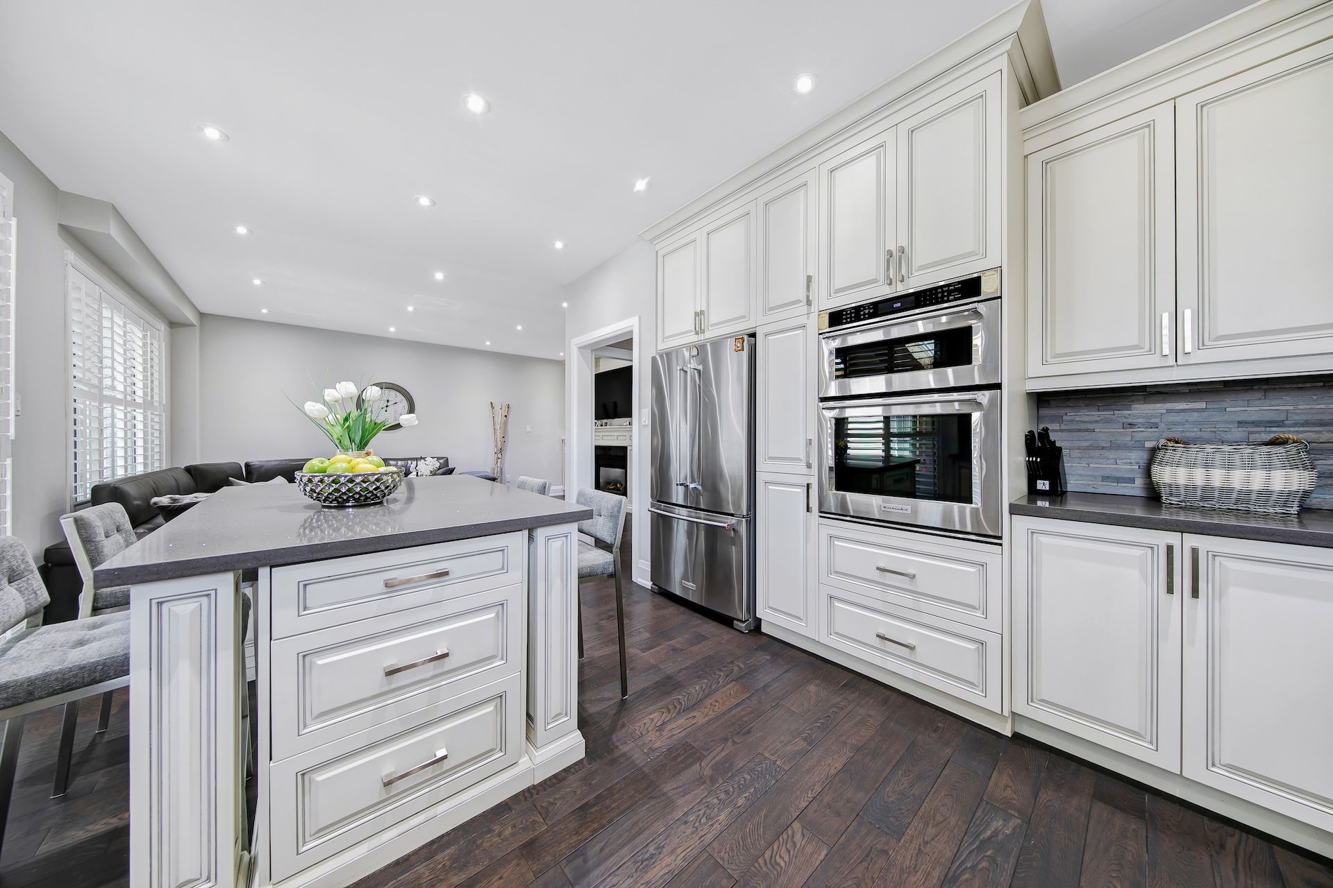 • Renovated kitchen features new appliances, quartz countertops, and a central island.