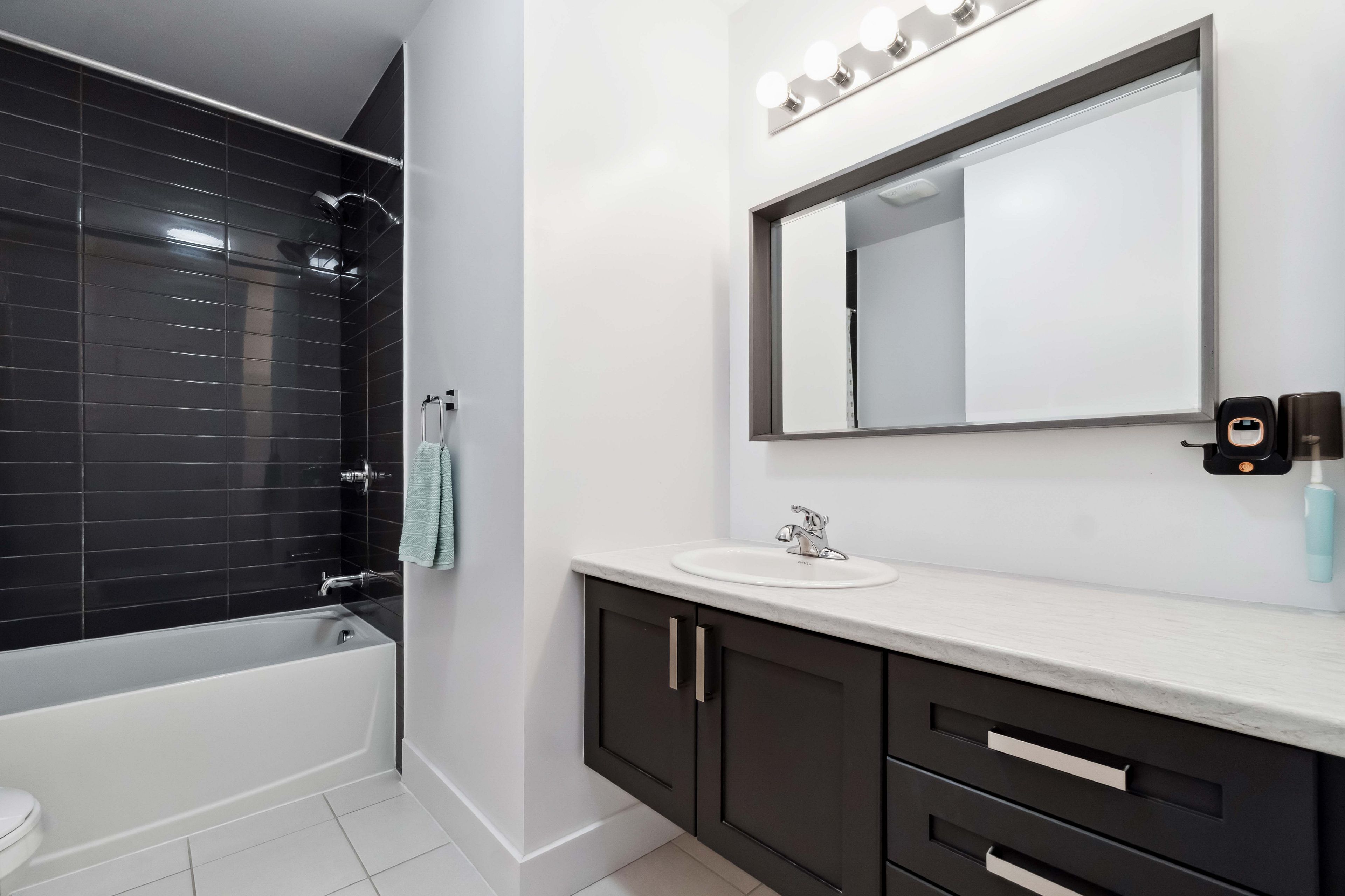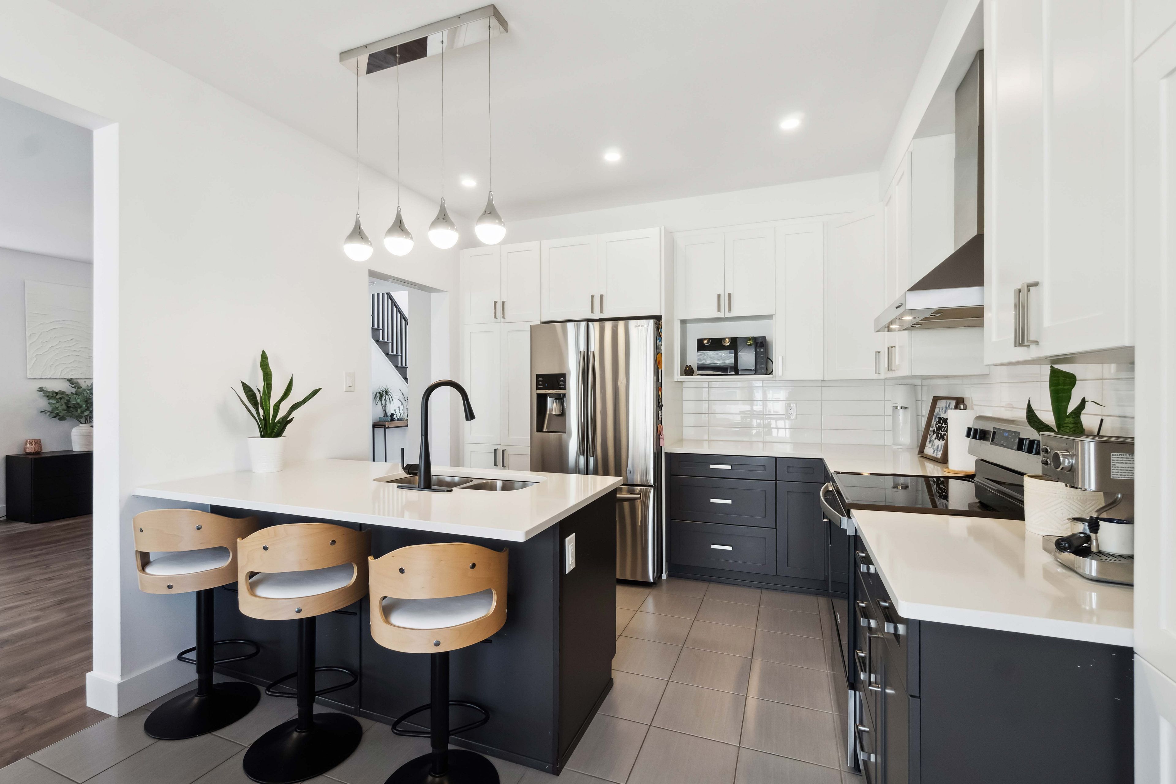 • Impressive chef's kitchen with quartz countertops and semi-open layout for entertaining.