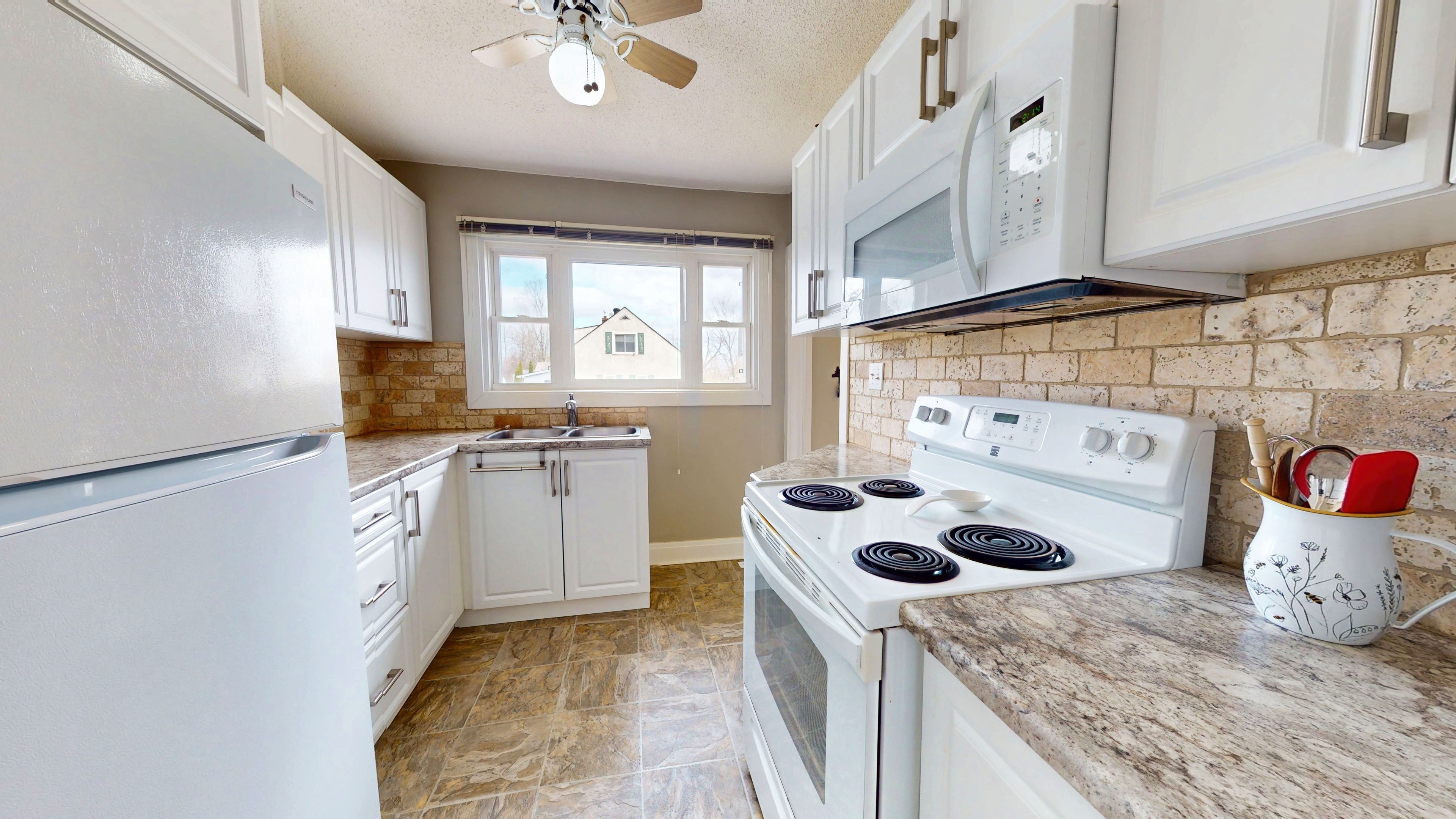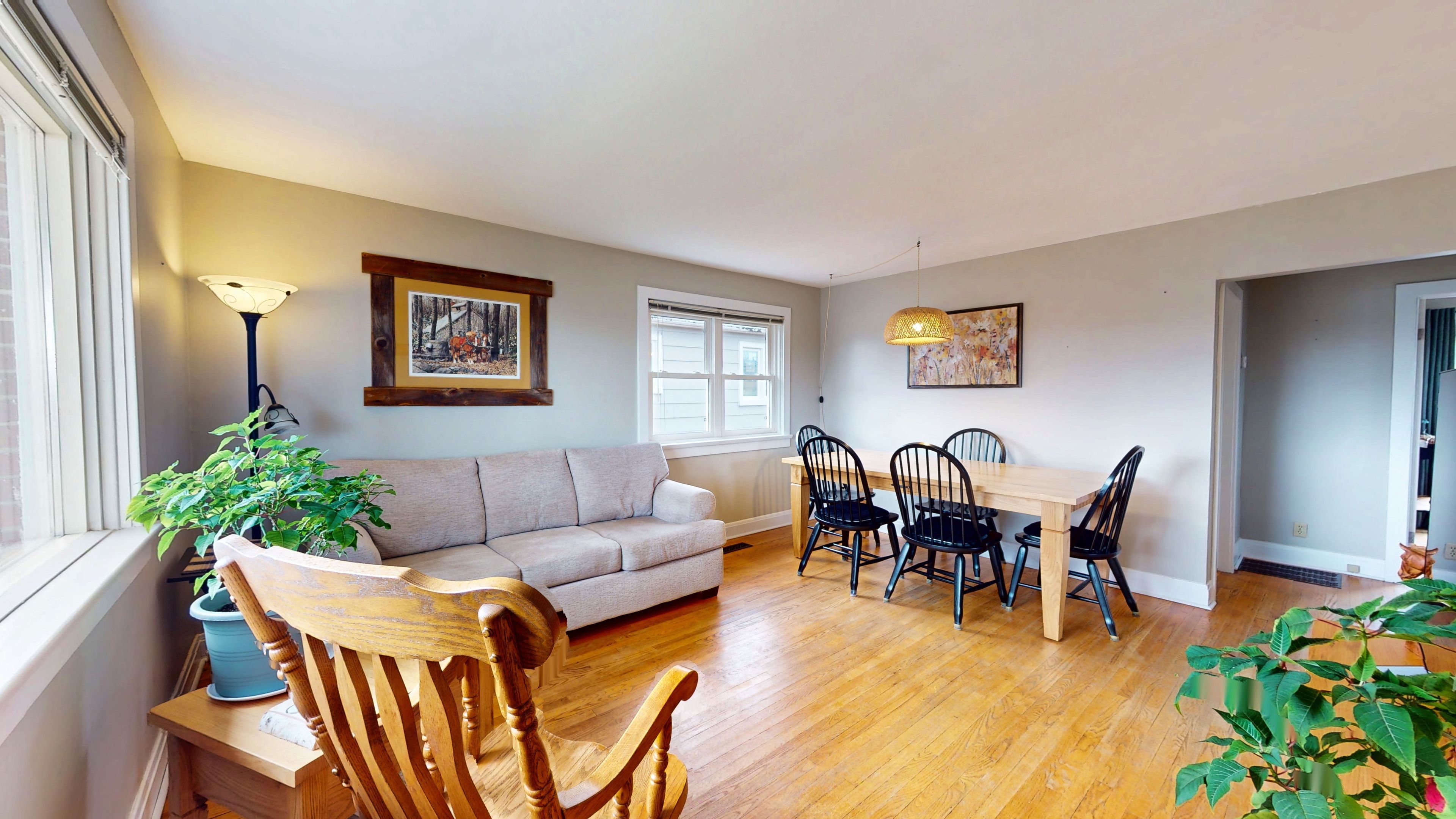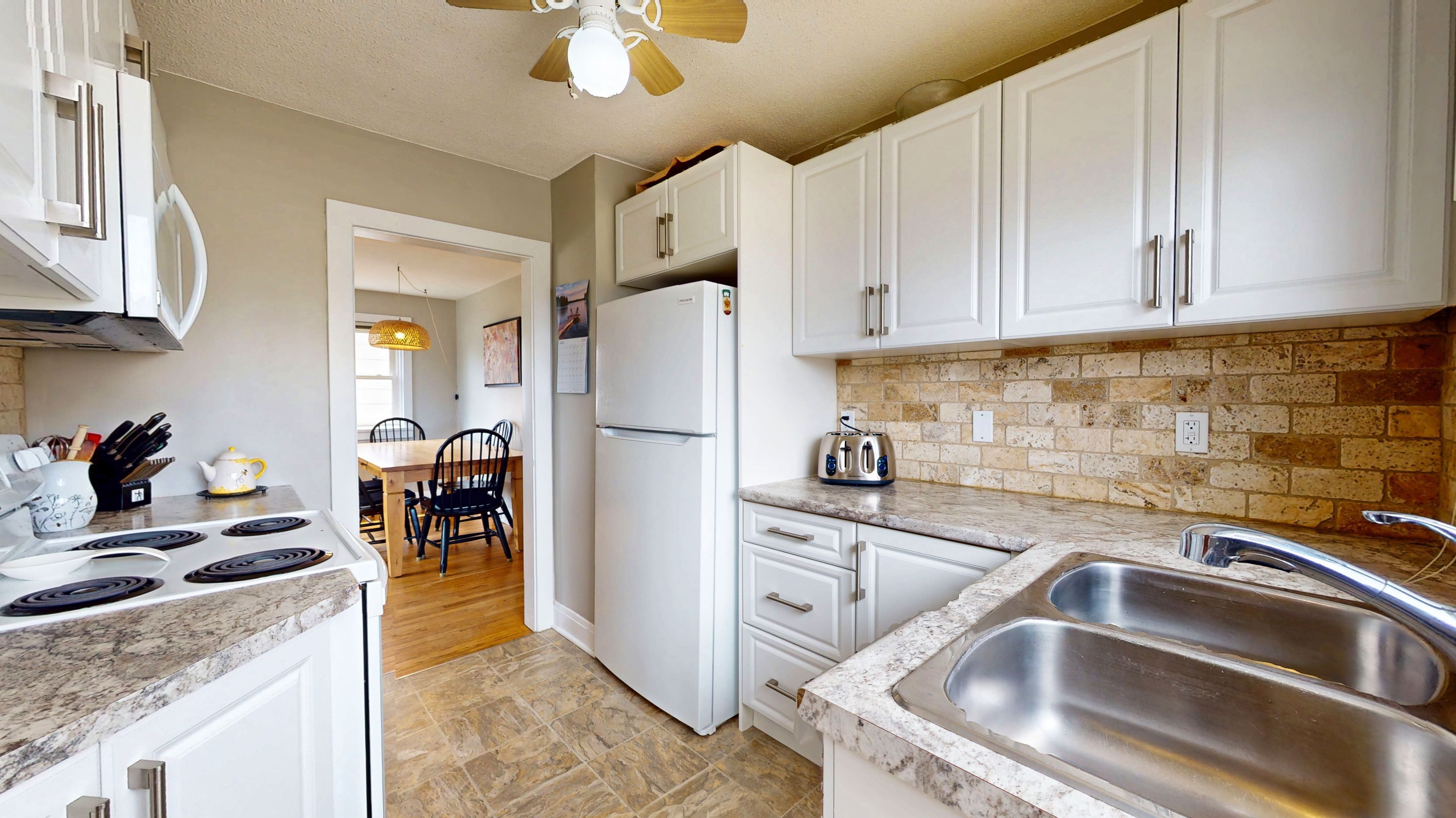 • Bright updated kitchen and spacious main floor with refinished hardwood flooring.