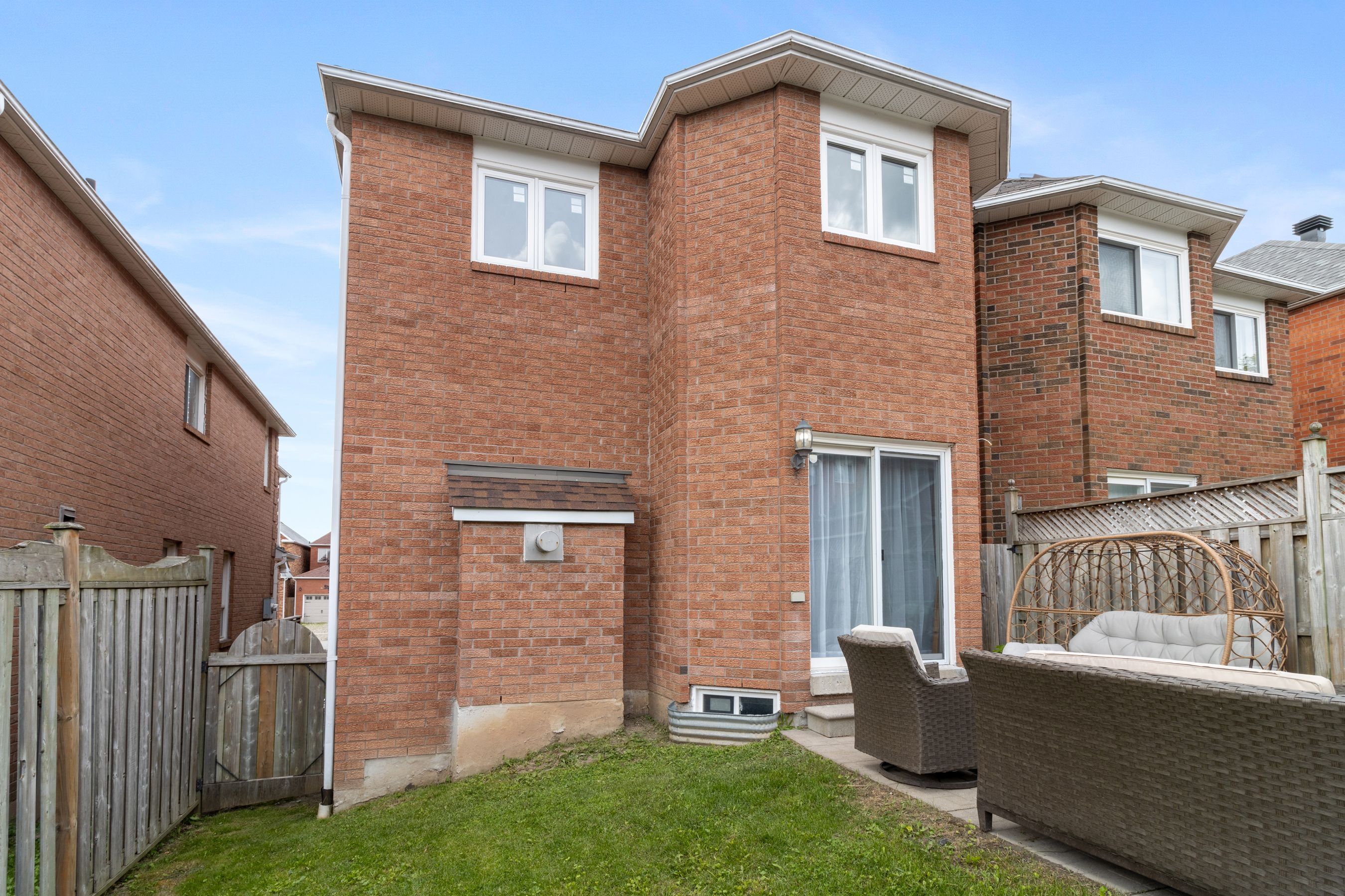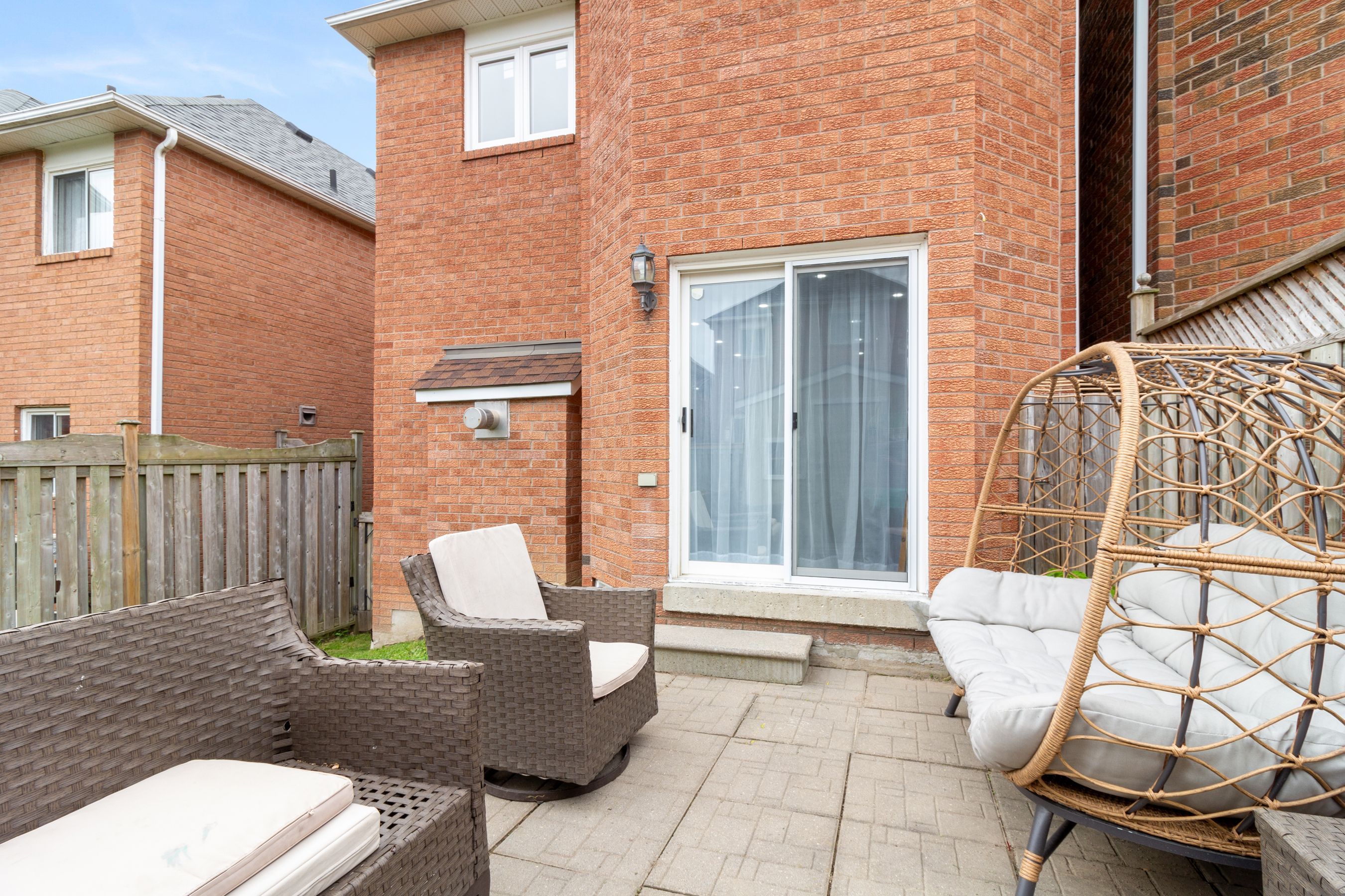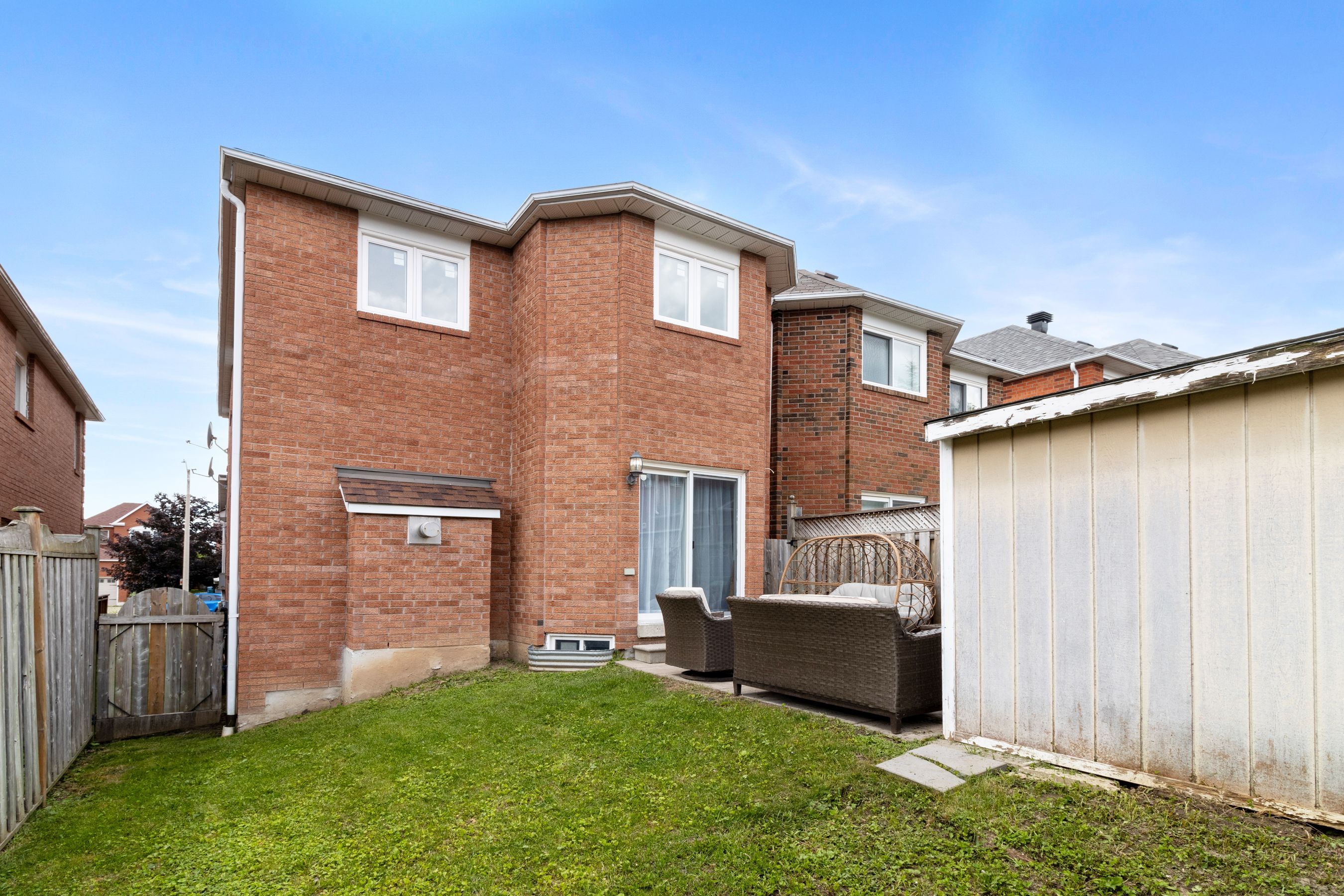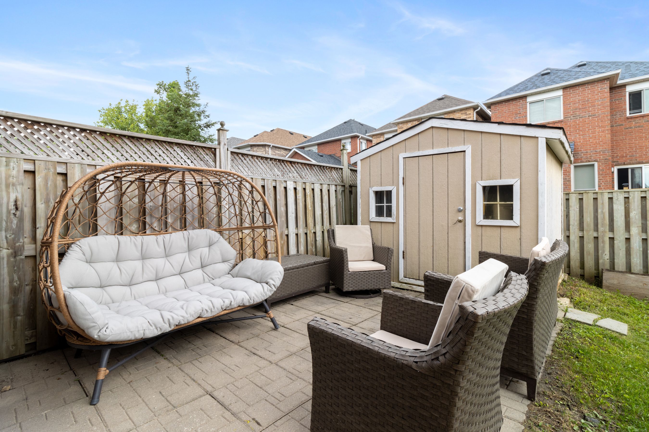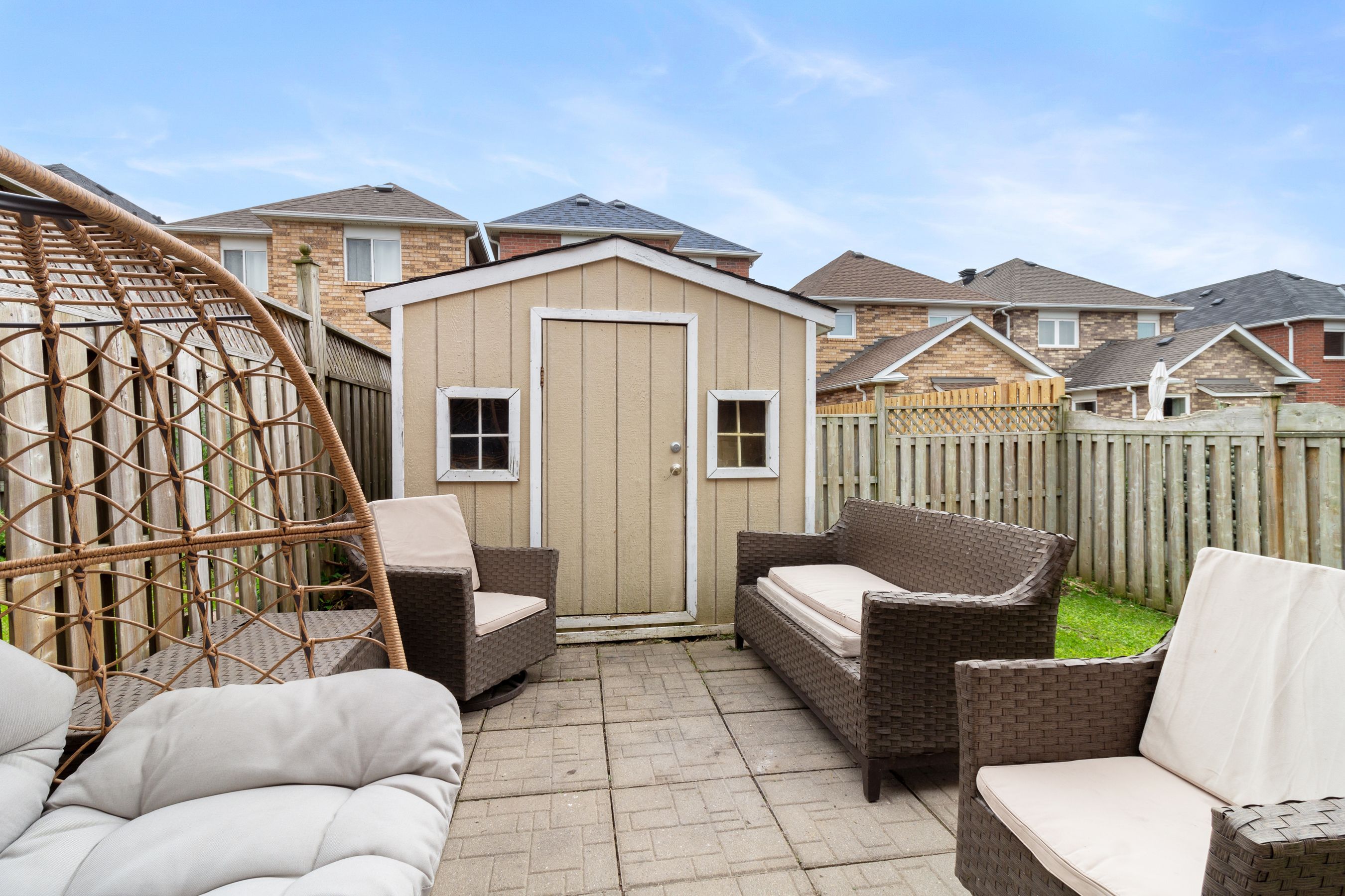 • Fully fenced yard with a stone patio, ideal for outdoor enjoyment and storage.