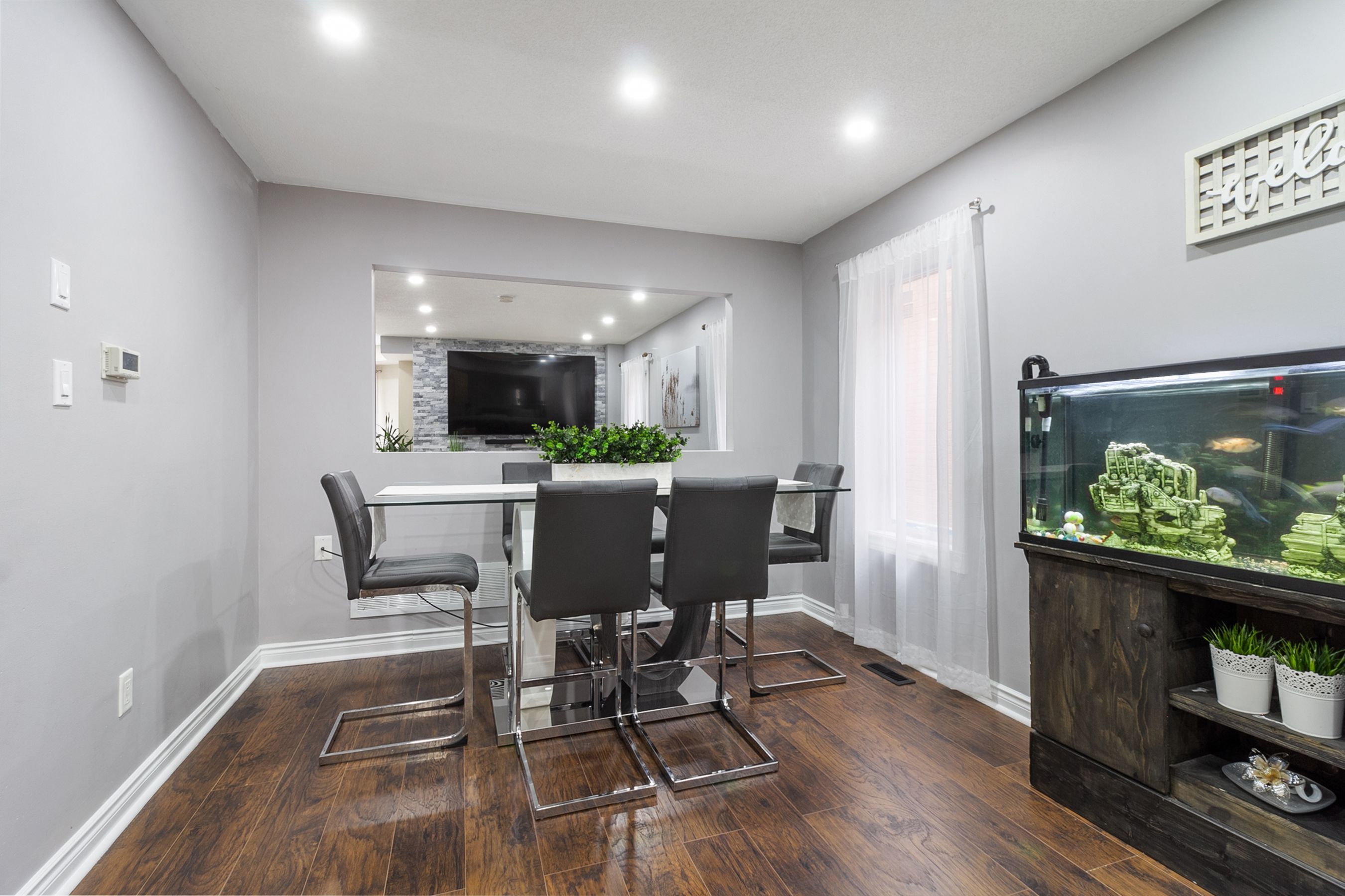 • Spacious family room featuring a gas fireplace and natural light from large windows.
