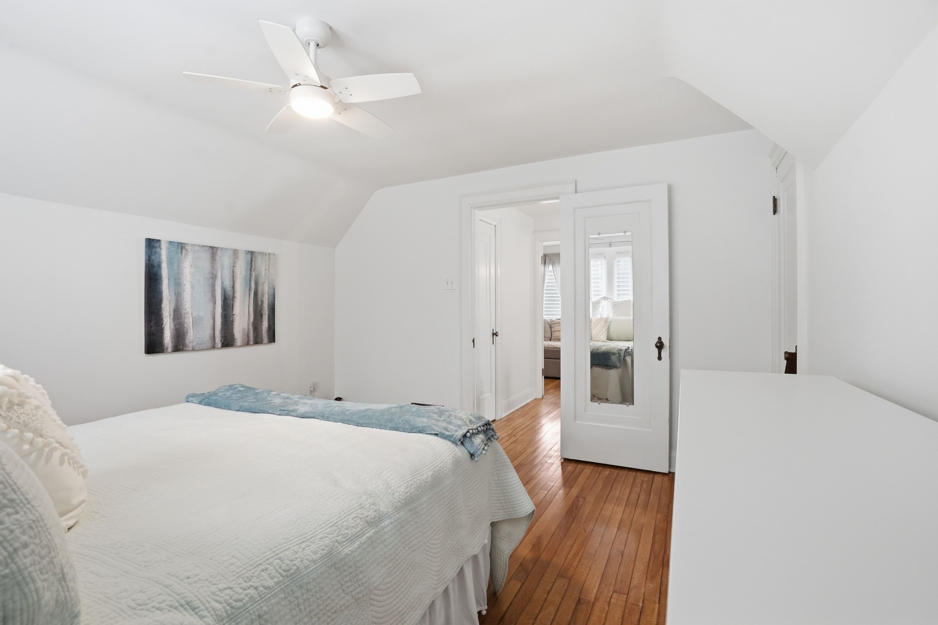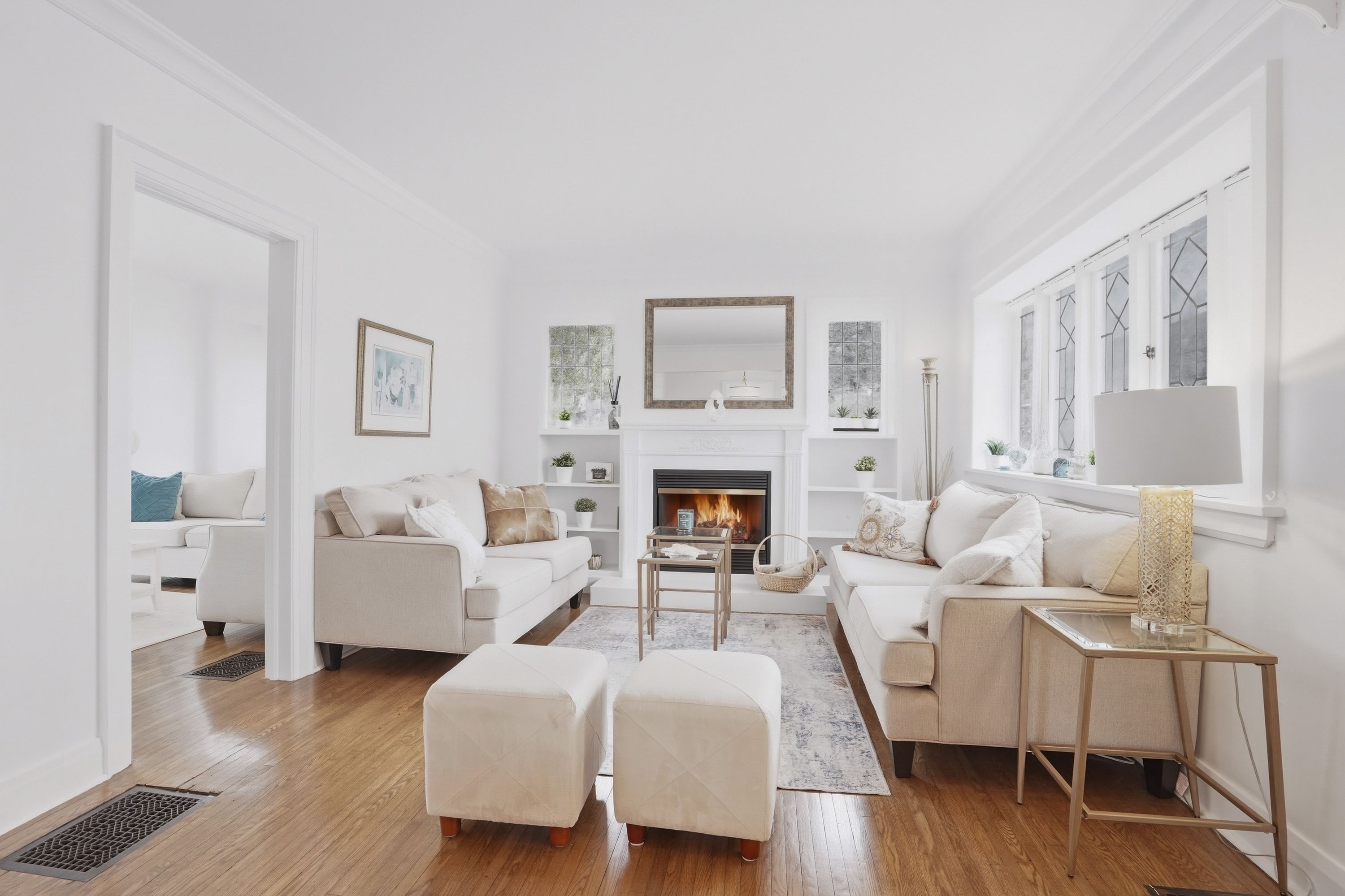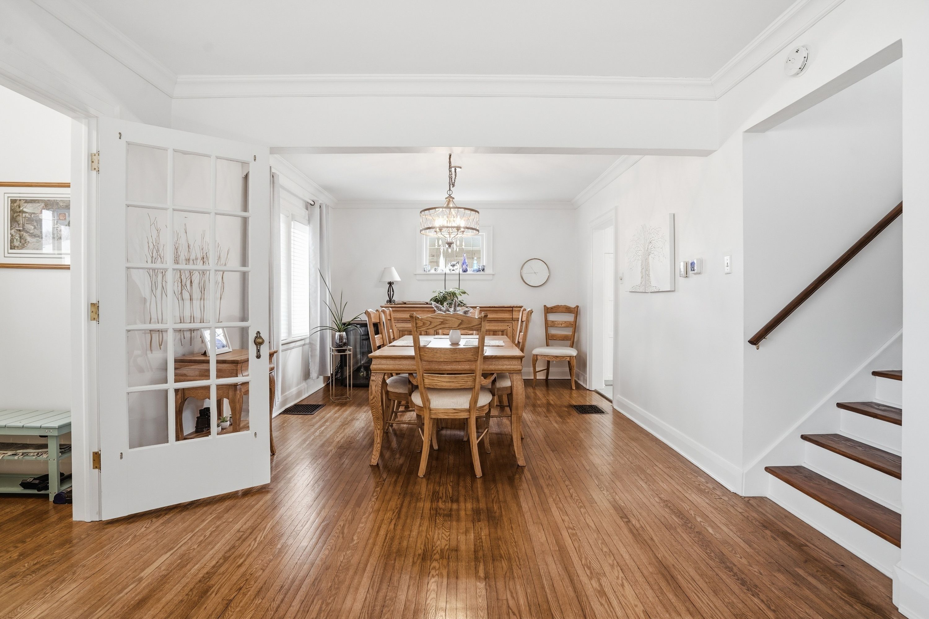 • Character features like leaded glass windows and hardwood floors throughout.