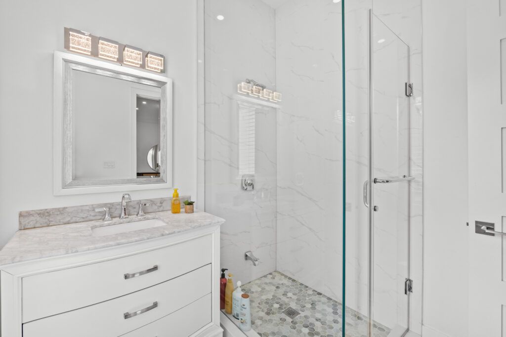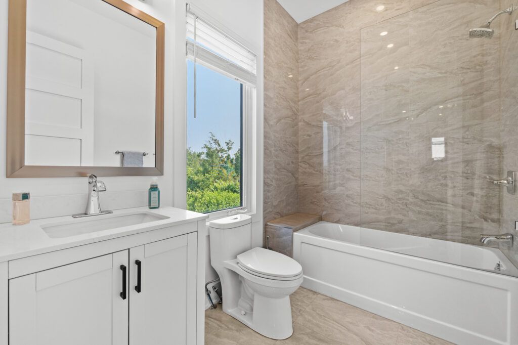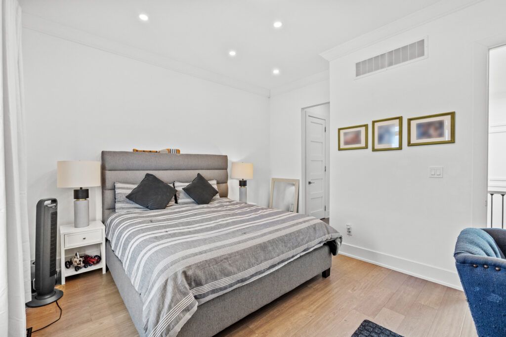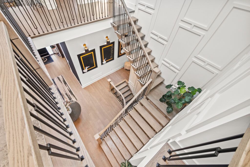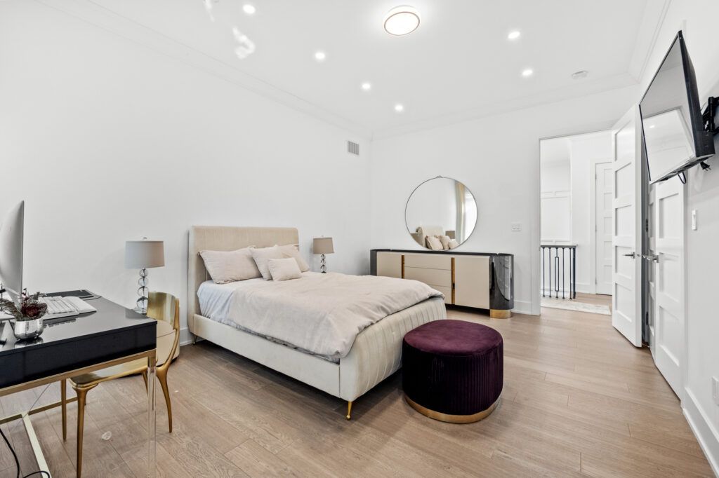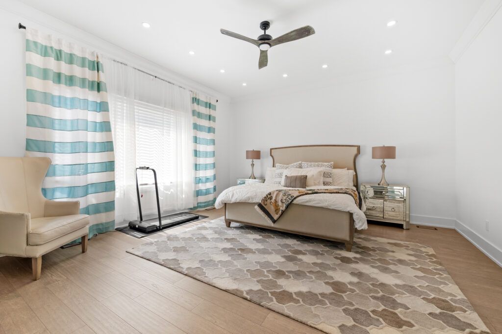 A showpiece of refined luxury, this home sits on an impressive 77' x 147' lot, where timeless design blends seamlessly with modern sophistication. The grand circular driveway, multiple entry points, and striking stone water feature create an unforgettable arrival experience. Inside, 12-foot ceilings, expansive floor-to-ceiling windows, a custom moss feature wall, and rich hardwood flooring establish a warm yet dramatic atmosphere throughout. At the heart of the home lies a chef-inspired kitchen, thoughtfully designed with sleek quartz countertops, a 10-foot waterfall island, premium built-in stainless steel appliances, central vacuum, kitchen dustpan/sweep inlet and custom full-height cabinetry that elevates both style and function. Upstairs, 10-foot ceilings enhance the sense of space, while the primary suite offers a true private retreat with a custom fireplace, an oversized walk-in closet with tailored organizers, and a spa-like ensuite featuring dual vanities, a deep soaker tub, a glass-enclosed rain shower, and refined finishes. Each additional bedroom includes its own ensuite, ample natural light, and premium details that create individual private sanctuaries. The fully finished lower level provides exceptional versatility, functioning as a self-contained rental suite or a comfortable in-law space with two spacious bedrooms, two full bathrooms, and an open-concept kitchen equipped with upgraded appliances. Outside, the beauty continues with professionally landscaped grounds, fruit trees, a full sprinkler system, a custom deck, and a covered pergola-perfect for outdoor entertaining and year-round enjoyment. A rare offering that exemplifies superior craftsmanship, thoughtful design, and contemporary luxury living.