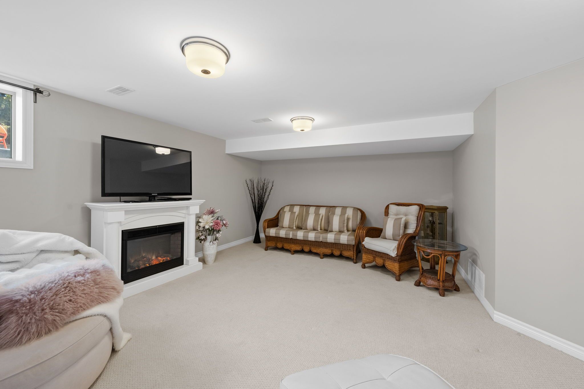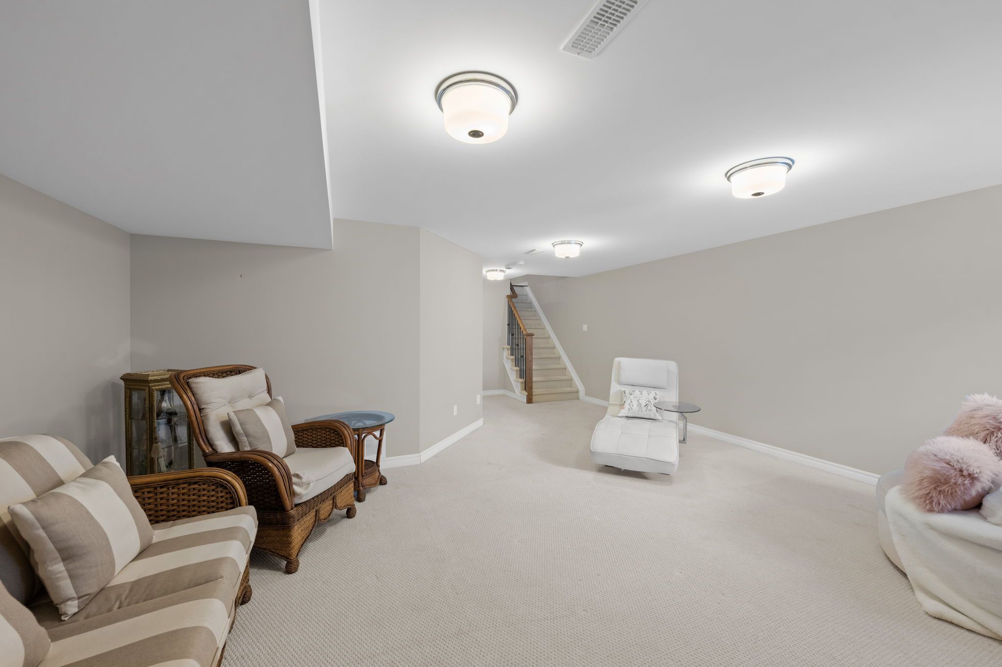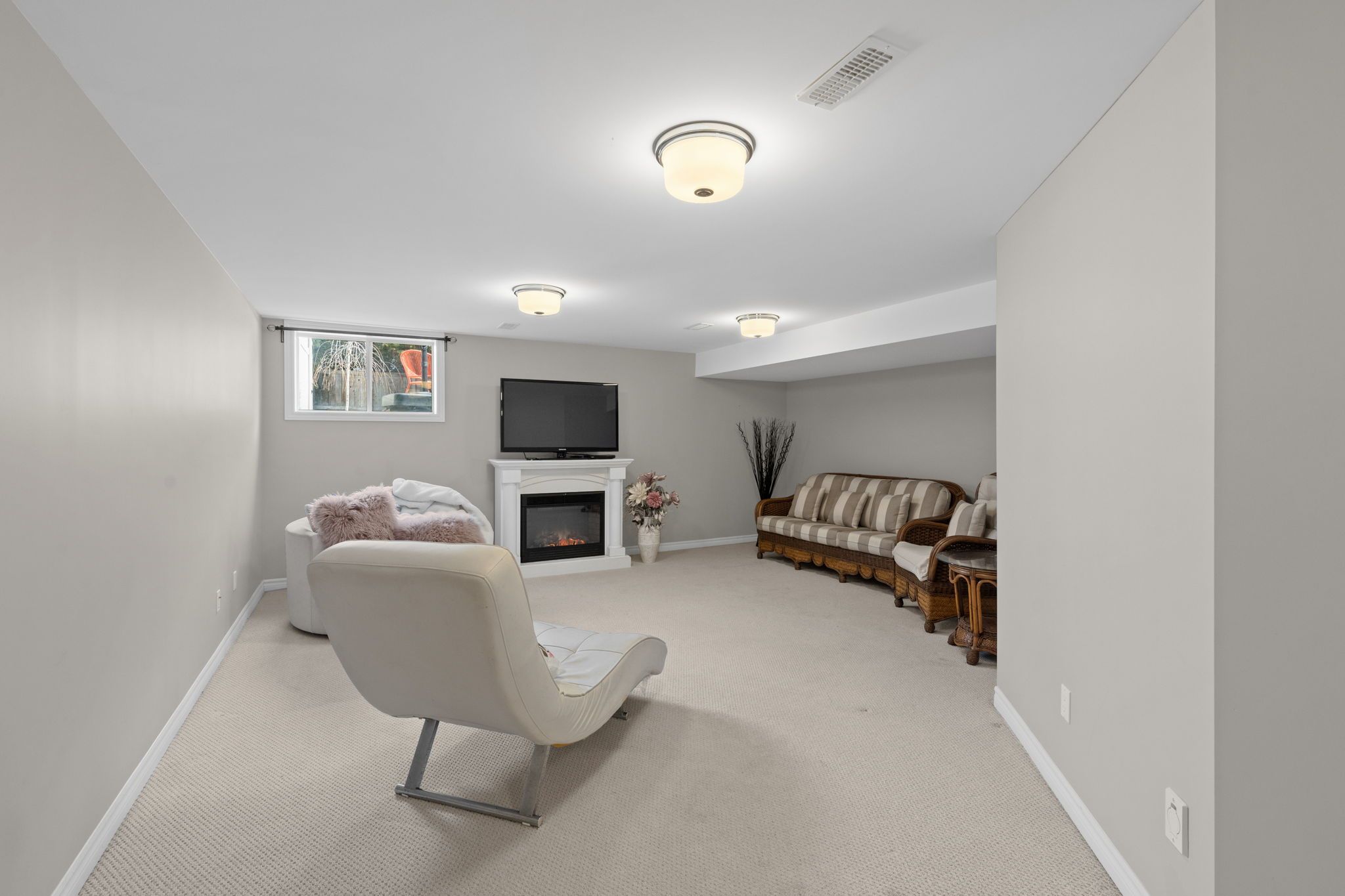 • Finished lower level recreation room adds extra living space.