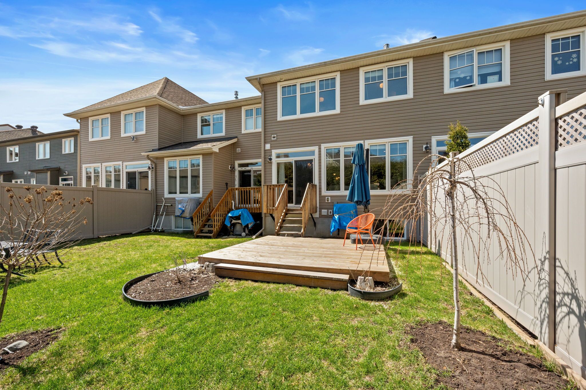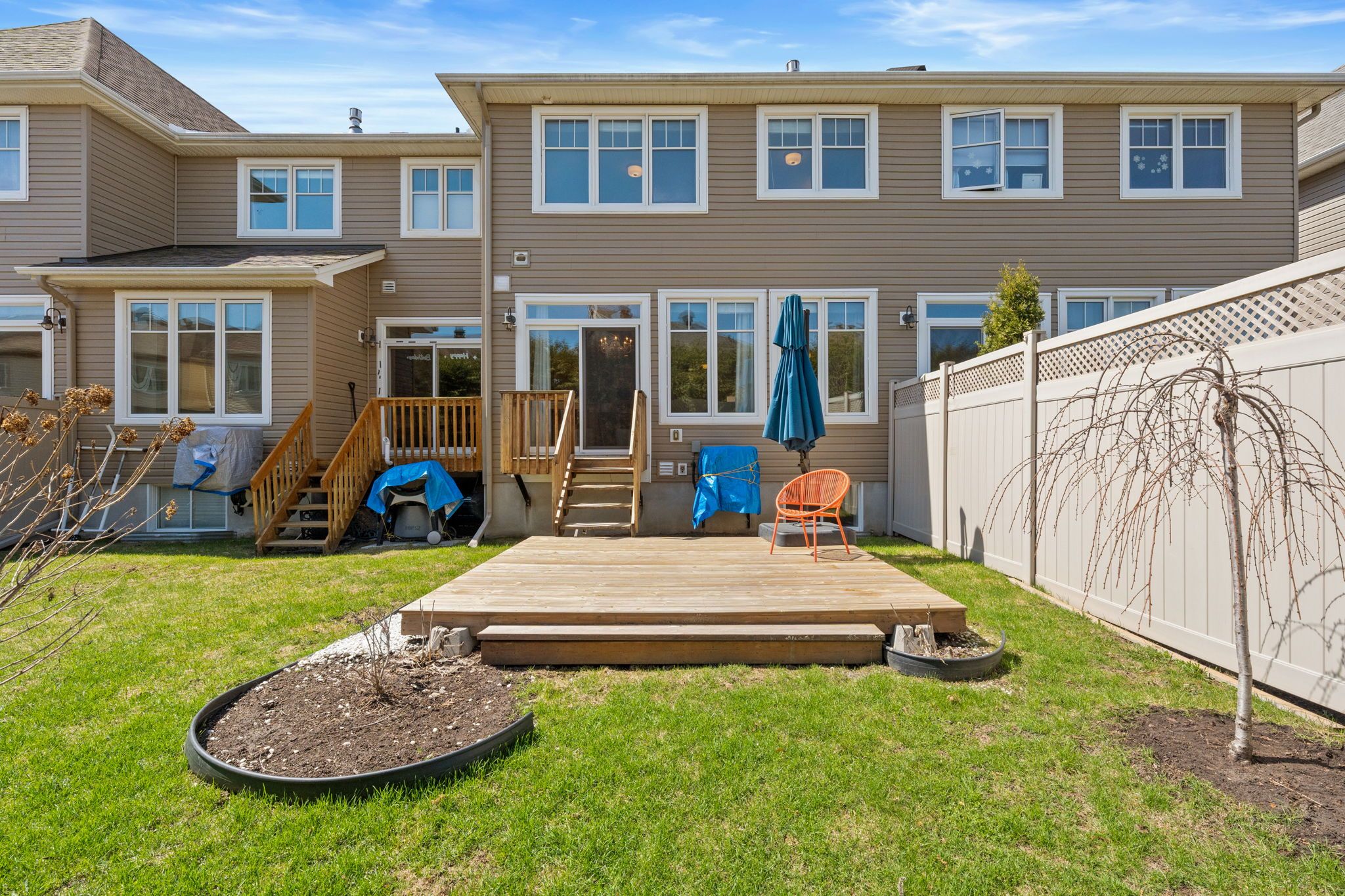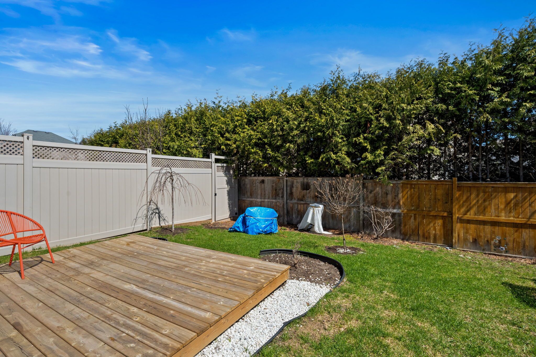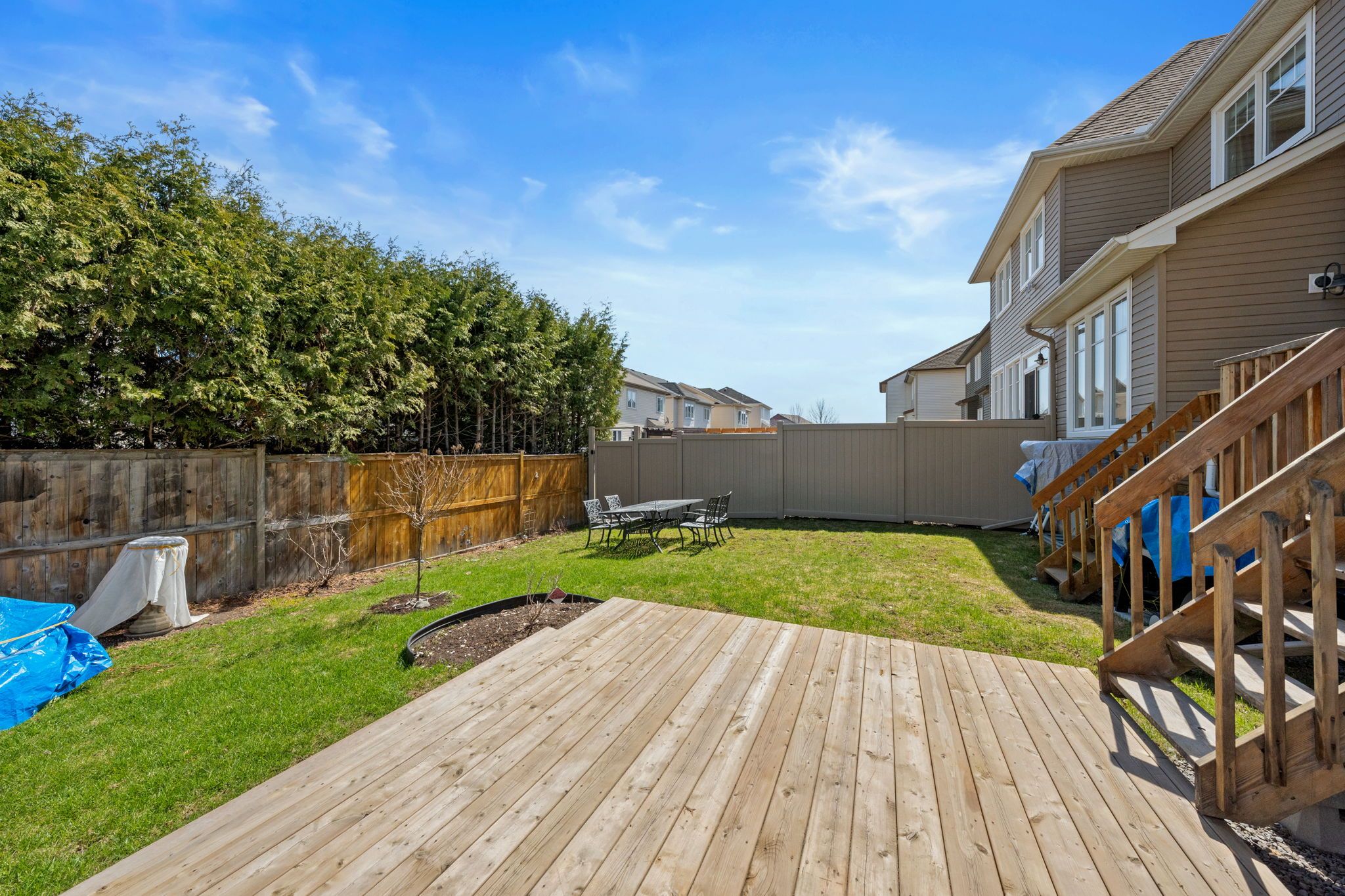 • Landscaped backyard with a deck, perfect for outdoor relaxation.