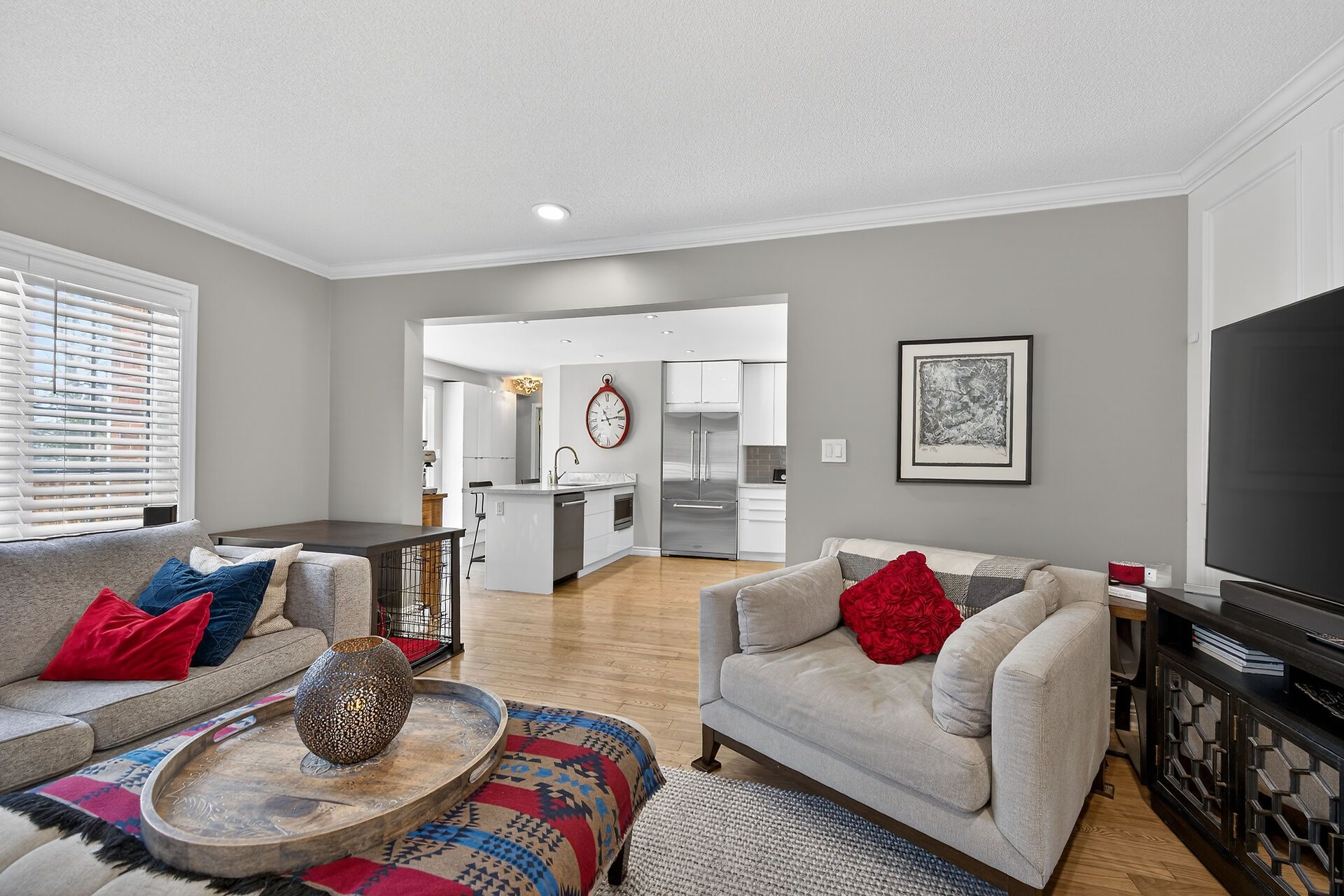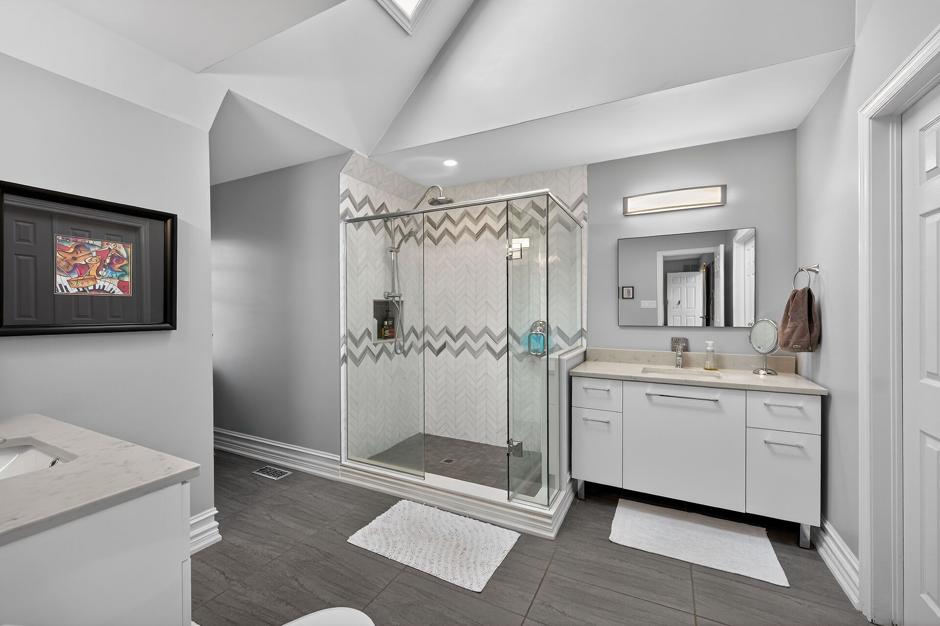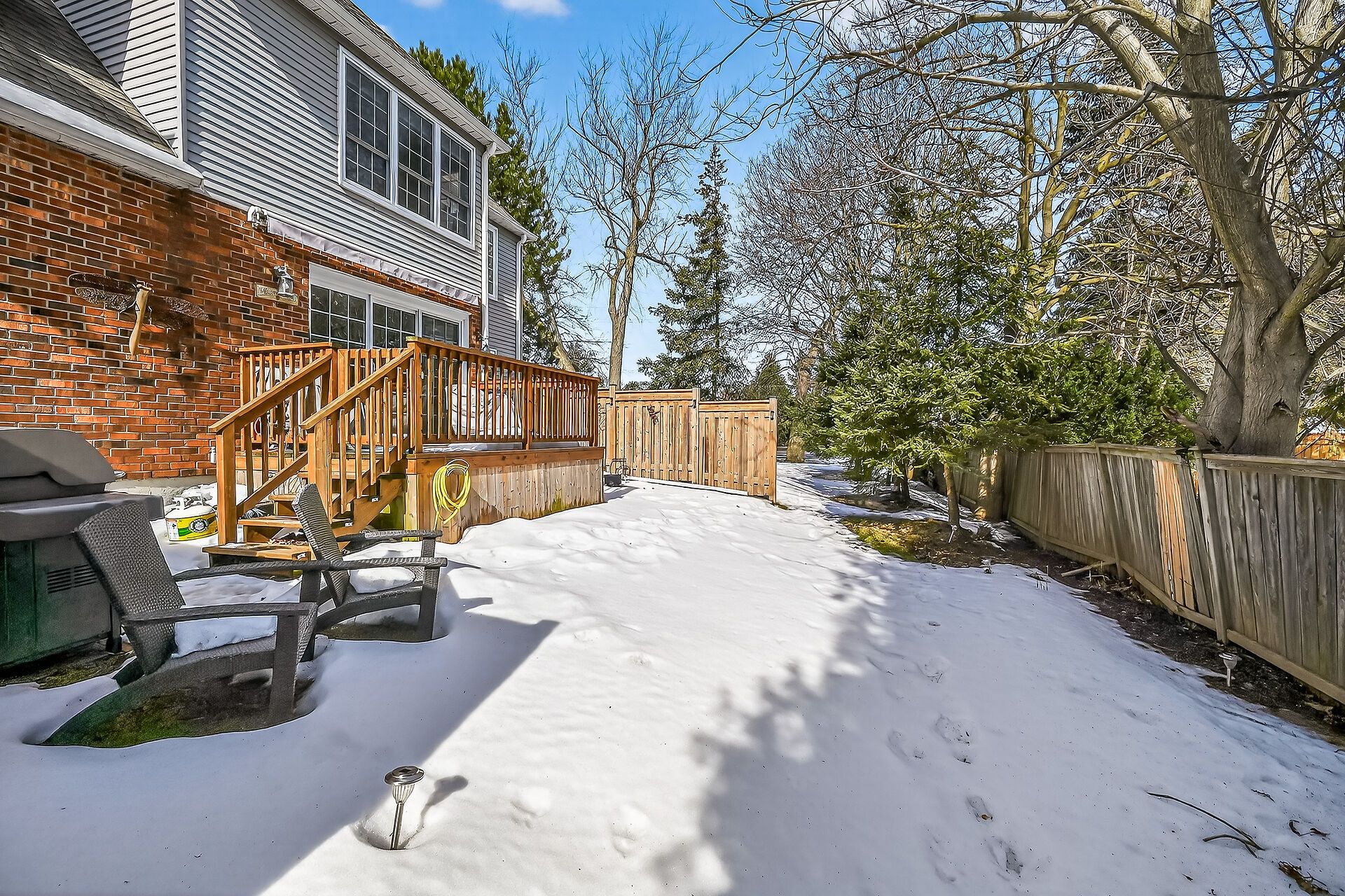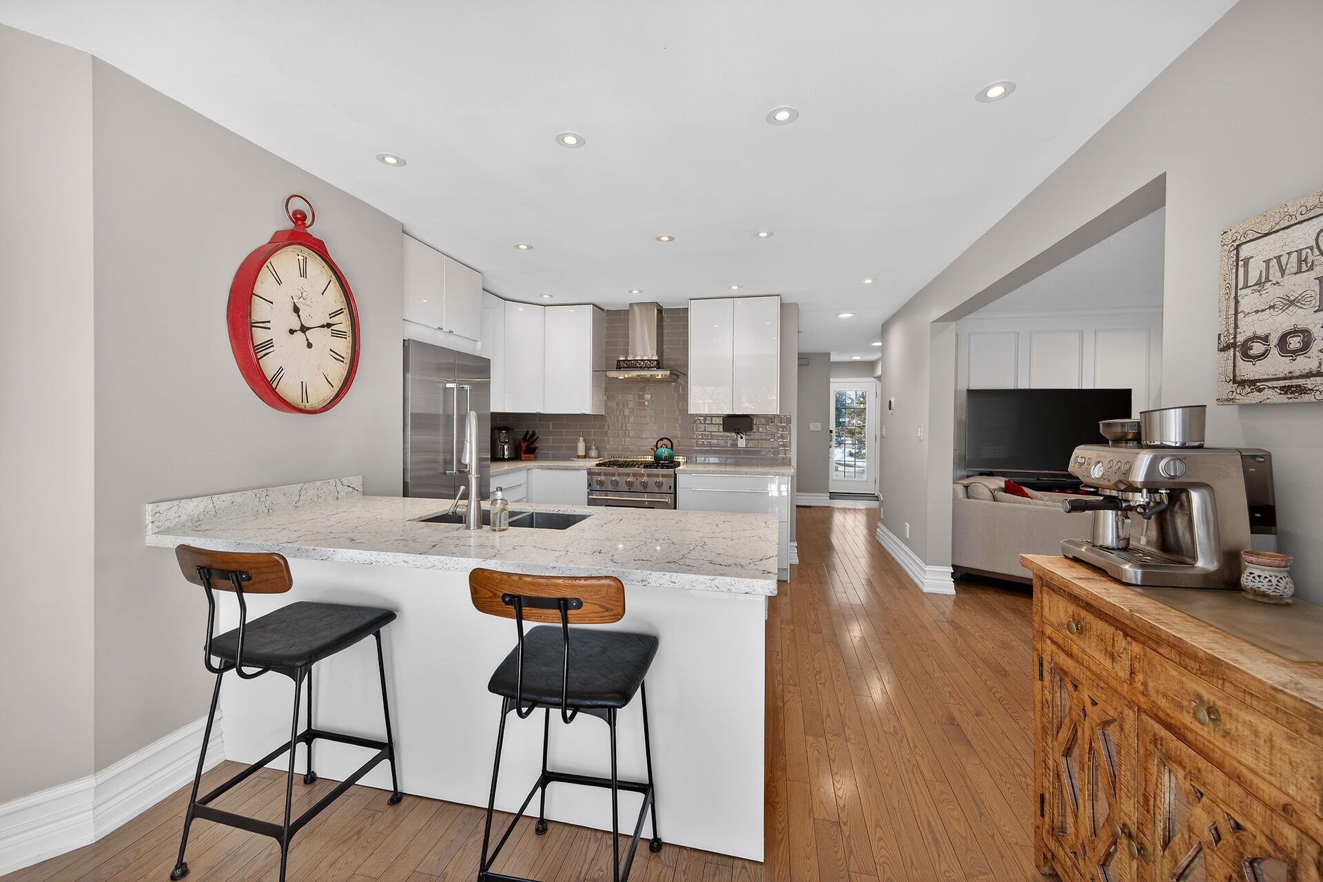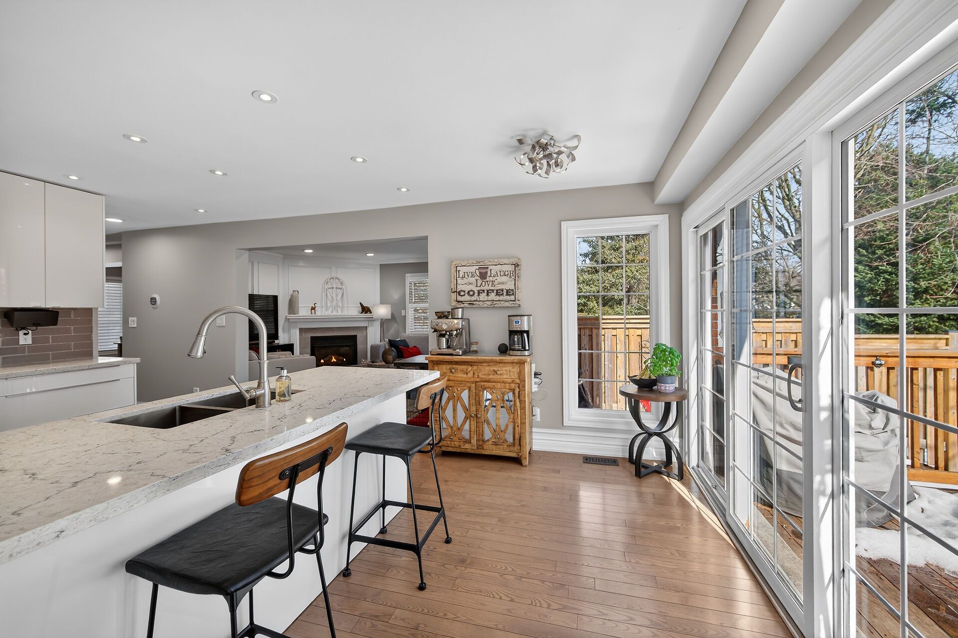 Spacious 2-storey end-unit condo townhouse providing 2946 sq ft of beautifully updated living space in sought-after ancaster. This bright and airy home features vaulted ceilings, oversized windows and an abundance of skylights, filling the interior with natural light. Thoughtfully designed layout includes a ground-floor family room with cozy gas fireplace, as well as separate living and dining rooms ideal for entertaining. Elegant ash flooring runs throughout the first and second floors. The stunning renovated kitchen showcases white high-gloss cabinetry, a full pantry wall, premium quartz countertops, glass backsplash, pot lights, and top-of-the-line stainless steel aga appliances. The basement was renovated in 2020, featuring a spacious recreation room, office space, additional bedroom, and a large 3-piece bathroom. A rare opportunity to enjoy spacious, low-maintenance living (including snow removal from driveway and walkway), close to highway access, shopping, and amenities in one of ancaster's most desirable neighborhoods. Rsa. Sqfta.