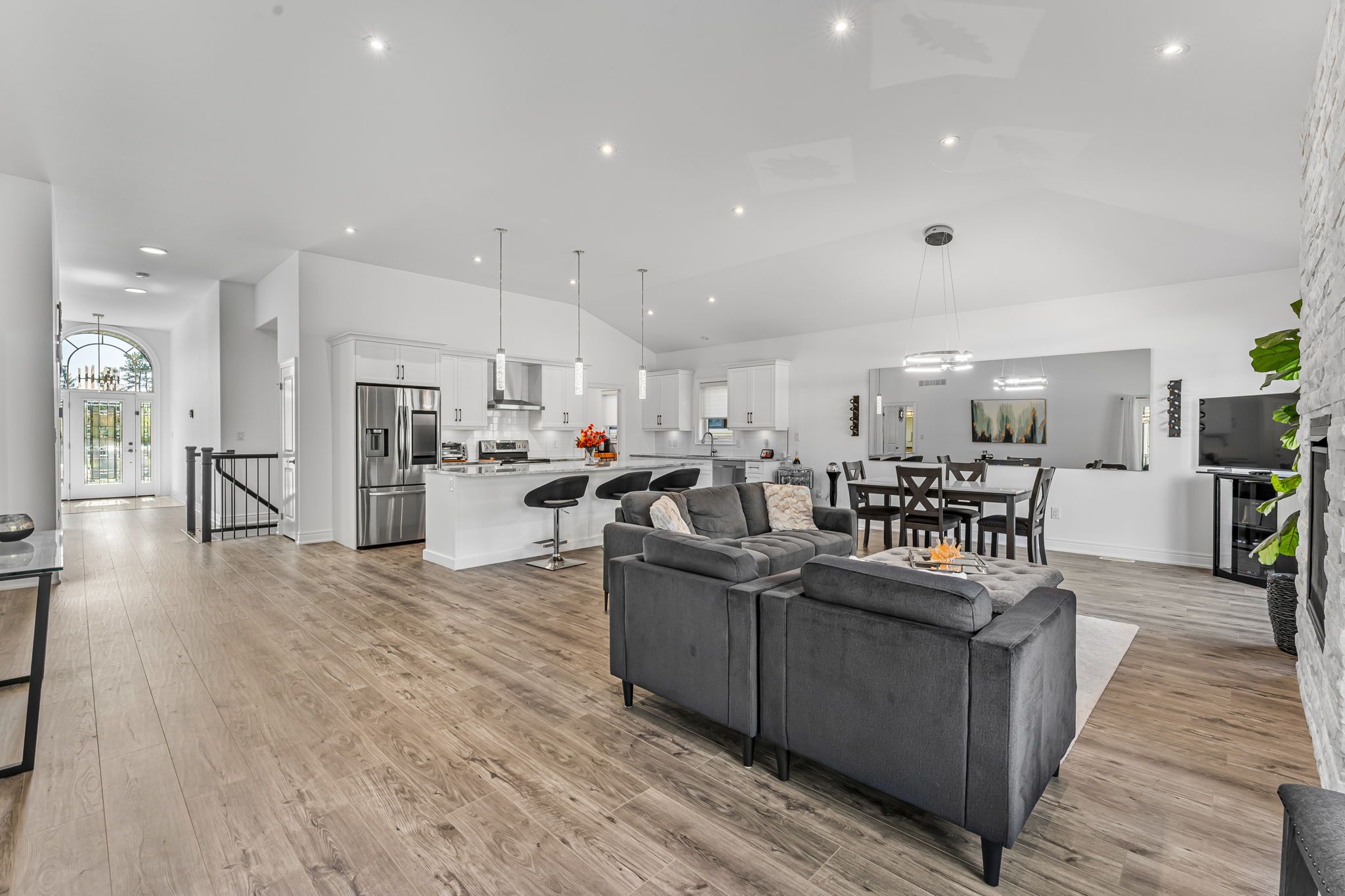 Welcome to this beautifully crafted and upgraded bungalow built by blythwood homes, located in the highly sought-after oaks community in ridgeway by the lake. Known for its small-town charm, boutique shops, restaurants, scenic trails, and proximity to lake erie's sandy beaches, ridgeway offers the perfect balance of relaxation and convenience. This beautifully landscaped home is ideally positioned on an oversized premium lot, backing onto the peaceful six mile creek forest, with a trail entrance beside the home that leads directly into the scenic protected forest and wetlands, a rare and tranquil setting. Inside, the open-concept main floor features bright and spacious living and dining areas. The primary suite is a private retreat with a walk-in closet and 5-piece ensuite complete with a soaker tub, shower, and double vanity. The fully finished lower level extends your living space with 2 additional bedrooms, a full 3-piece bathroom, and a large rec room, perfect for entertaining, guests, or a home office. Step outside to your private backyard featuring a custom covered porch with a glass enclosure, allowing you to enjoy forest views in comfort throughout the seasons. Built with blythwood homes' signature quality and nestled in the prestigious oaks community, this ridgeway bungalow offers a lifestyle defined by nature, privacy, and modern convenience. Don't miss this opportunity to make this your home!!!