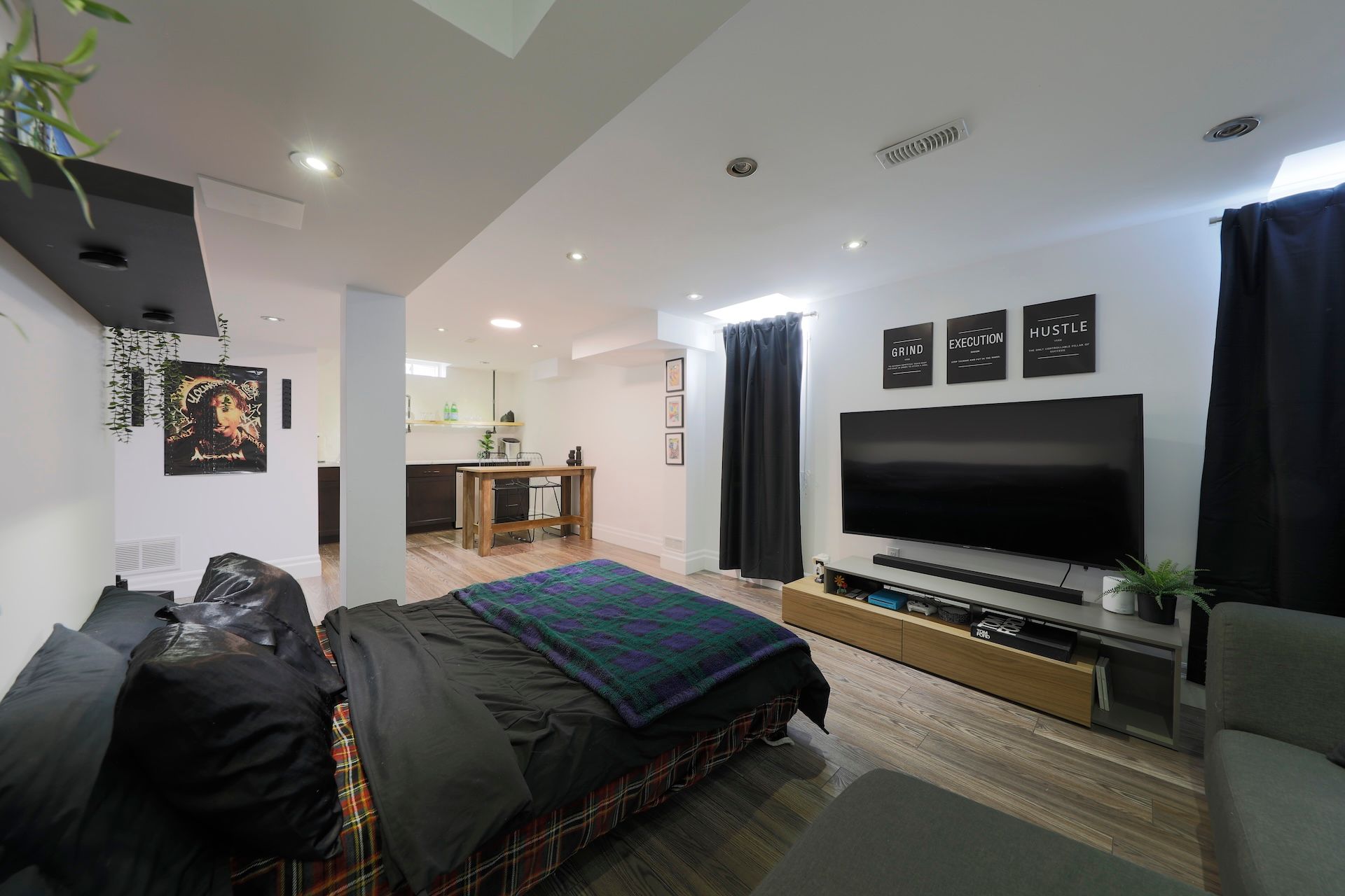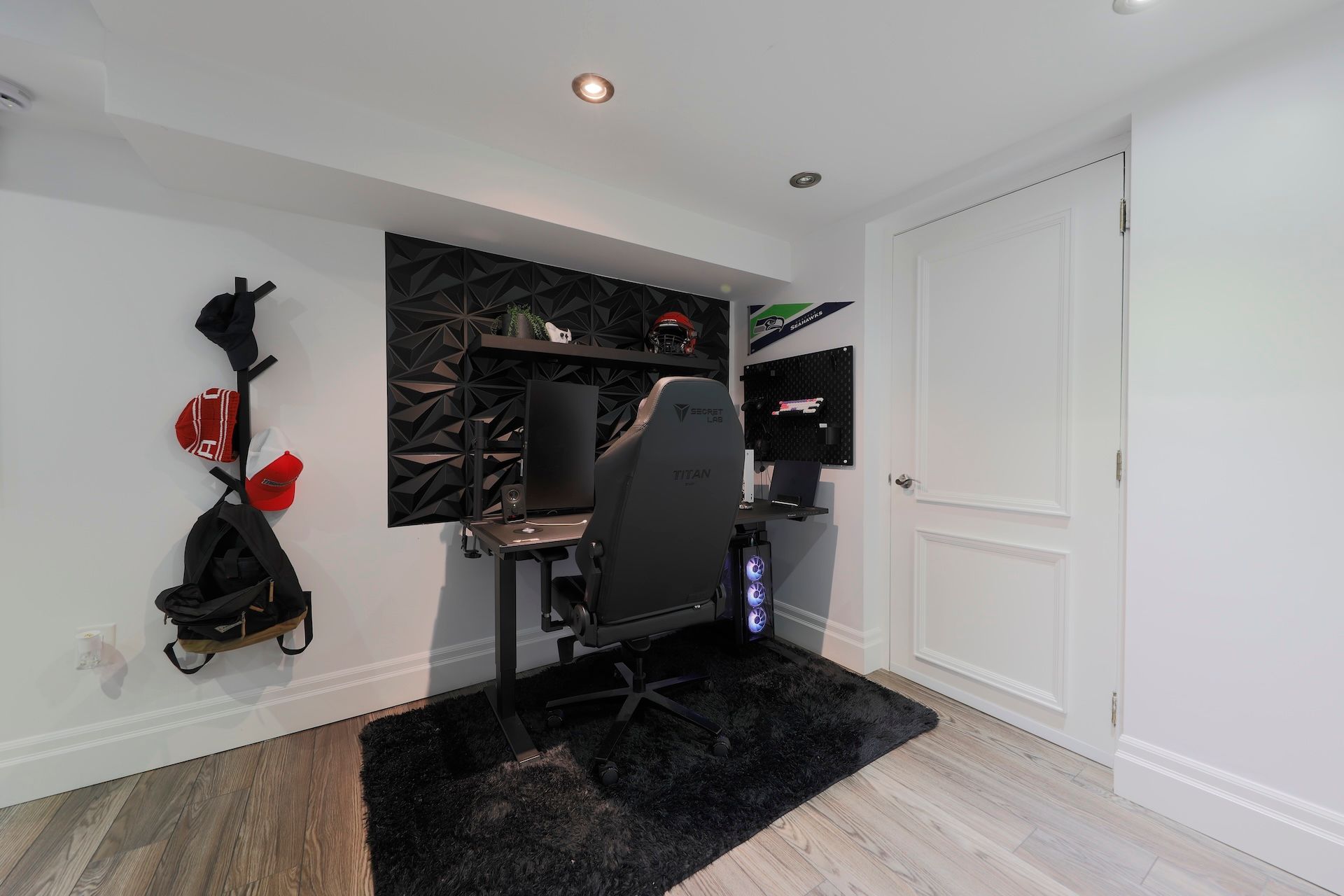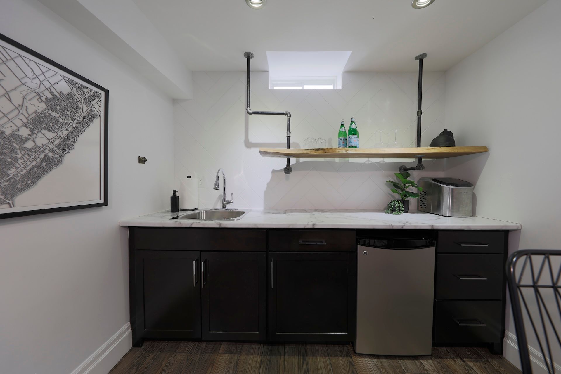 • Professionally finished basement with custom wet bar and luxurious bathroom.