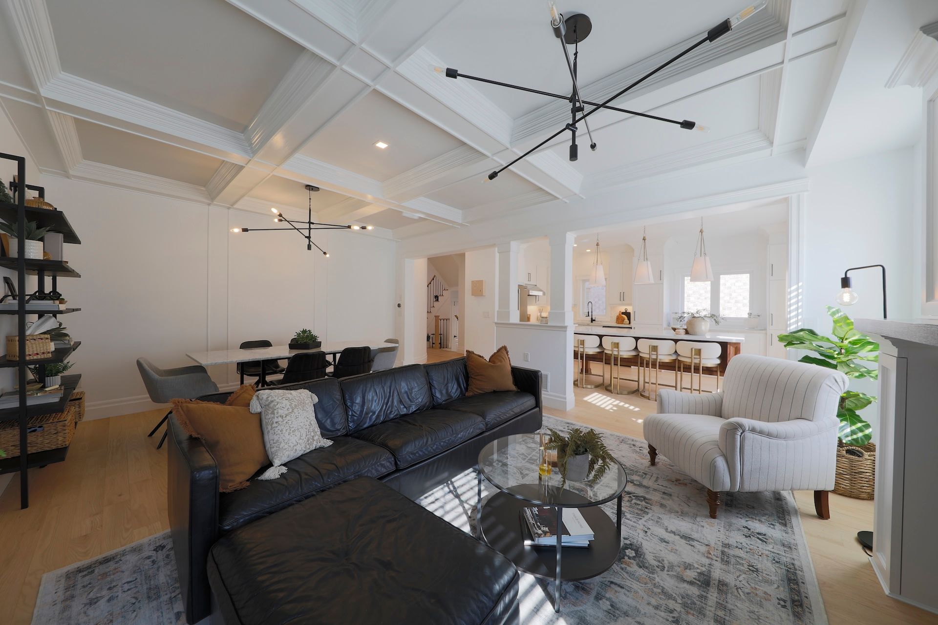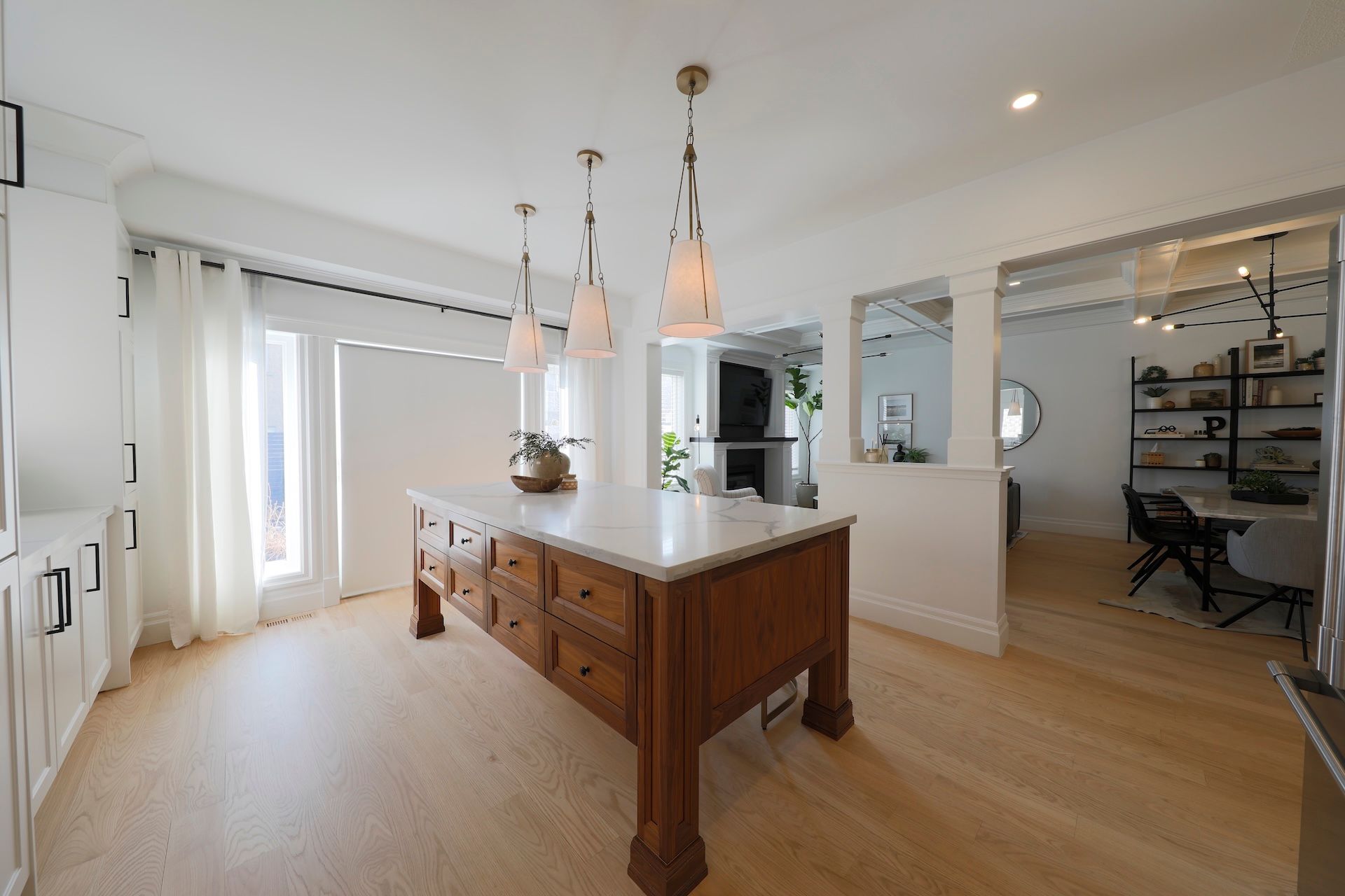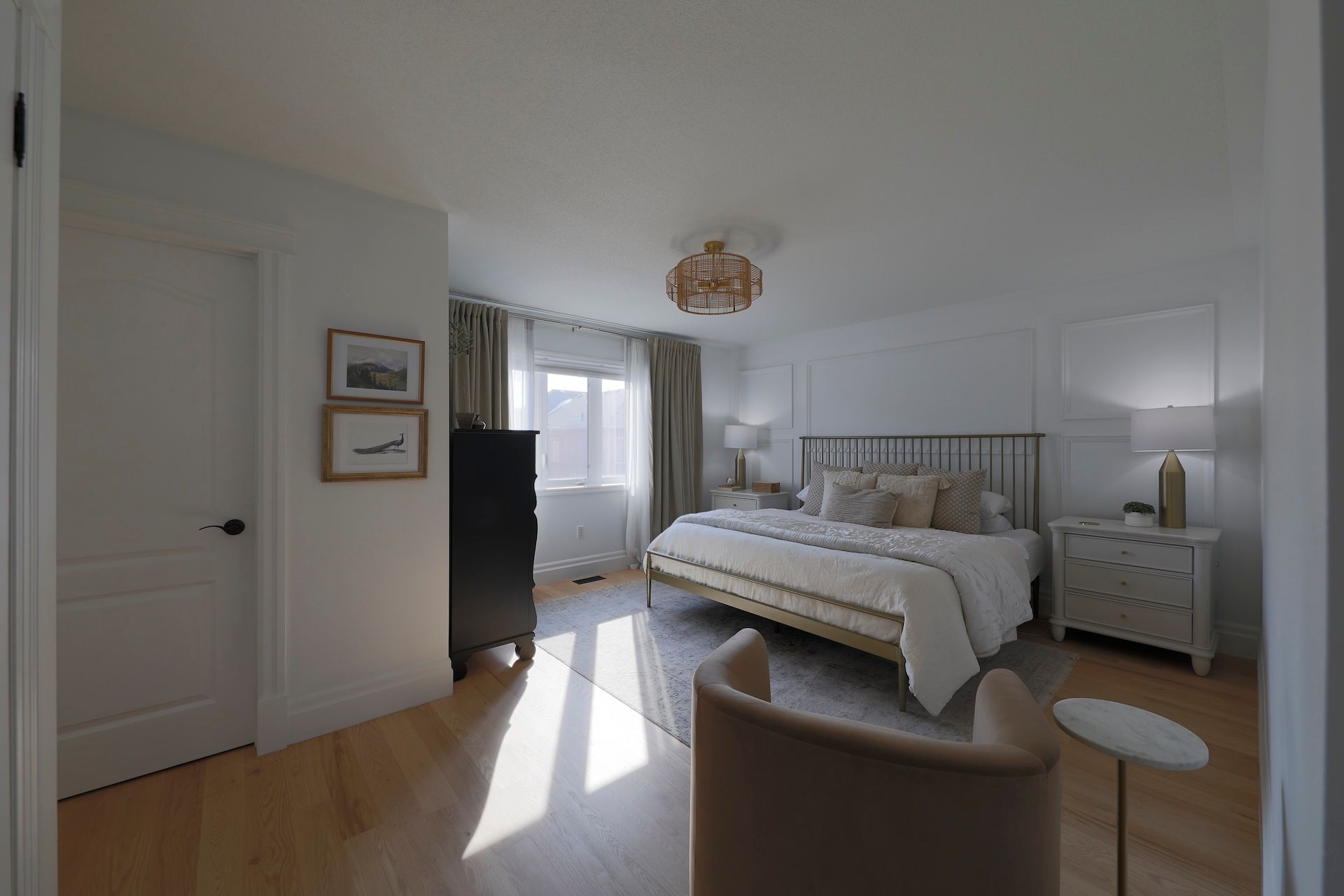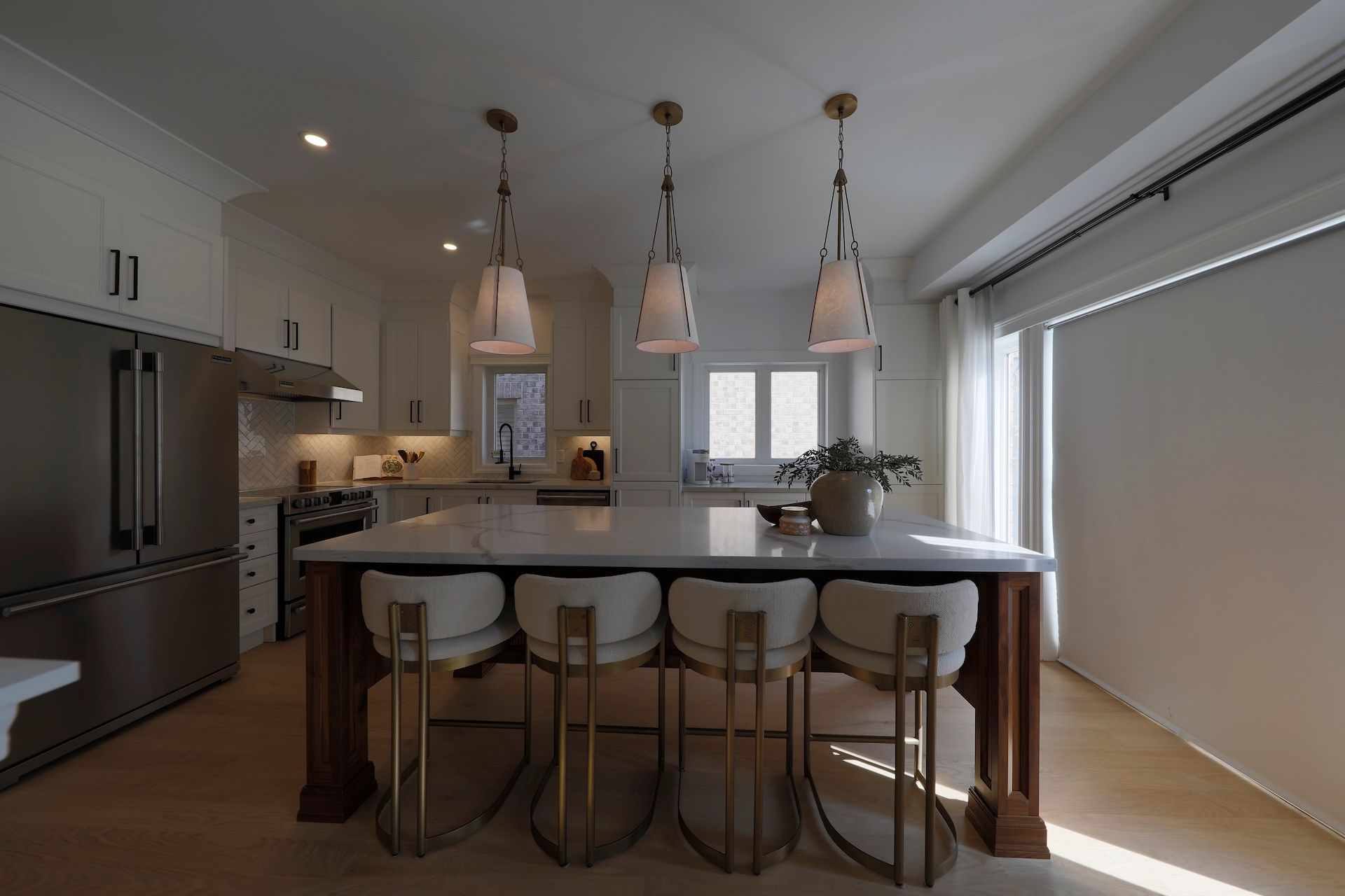 Welcome to luxury living in prestigious alton villageexperience nearly 3,000 square feet of beautifully finished luxury living where no detail has been overlooked. Located in the highly sought-after alton village, this professionally designed home is entirely move-in ready, showcasing freshly painted interiors, refinished hardwood floors, elegant waffle ceilings, and designer light fixtures equipped with lutron dimmers throughout. Property highlights:the chef's kitchen: the heart of the home features sleek, soft-close white cabinetry with modern hardware, gleaming quartz countertops, and a striking herringbone backsplash. It is fully equipped with stainless steel appliances (updated in 2018), a stylish coffee bar, and a large centre island with comfortable seating for four. Finished basement: an entertainer's dream, the professionally finished lower level includes a custom wet bar and a luxurious full bathroom. Outdoor oasis: step outside to a professionally landscaped exterior featuring a completely private rear yard with elegant stamped concrete-perfect for summer hosting. Fully finished garage: a pristine, fully finished double garage adds extra polished space and convenience.