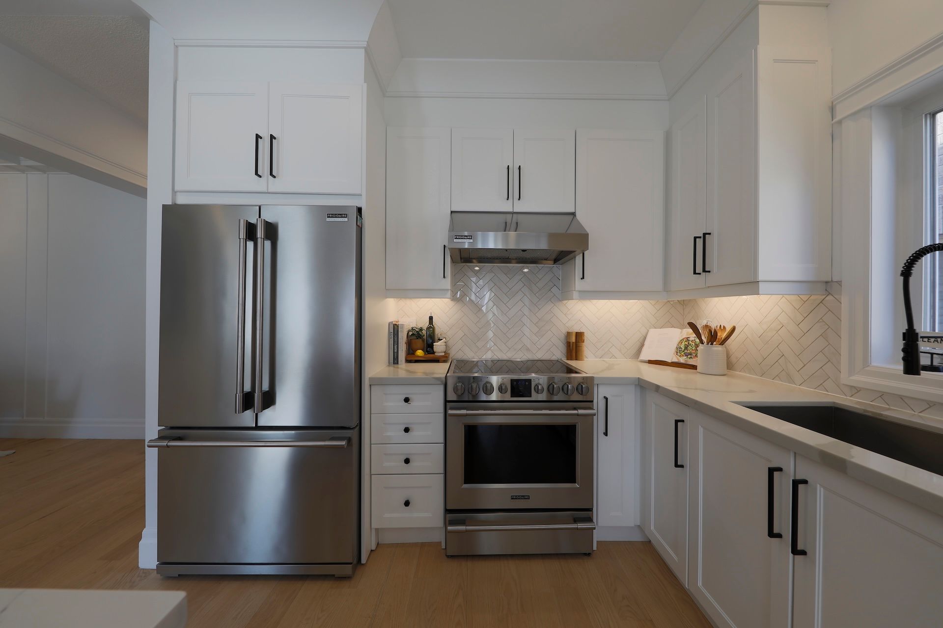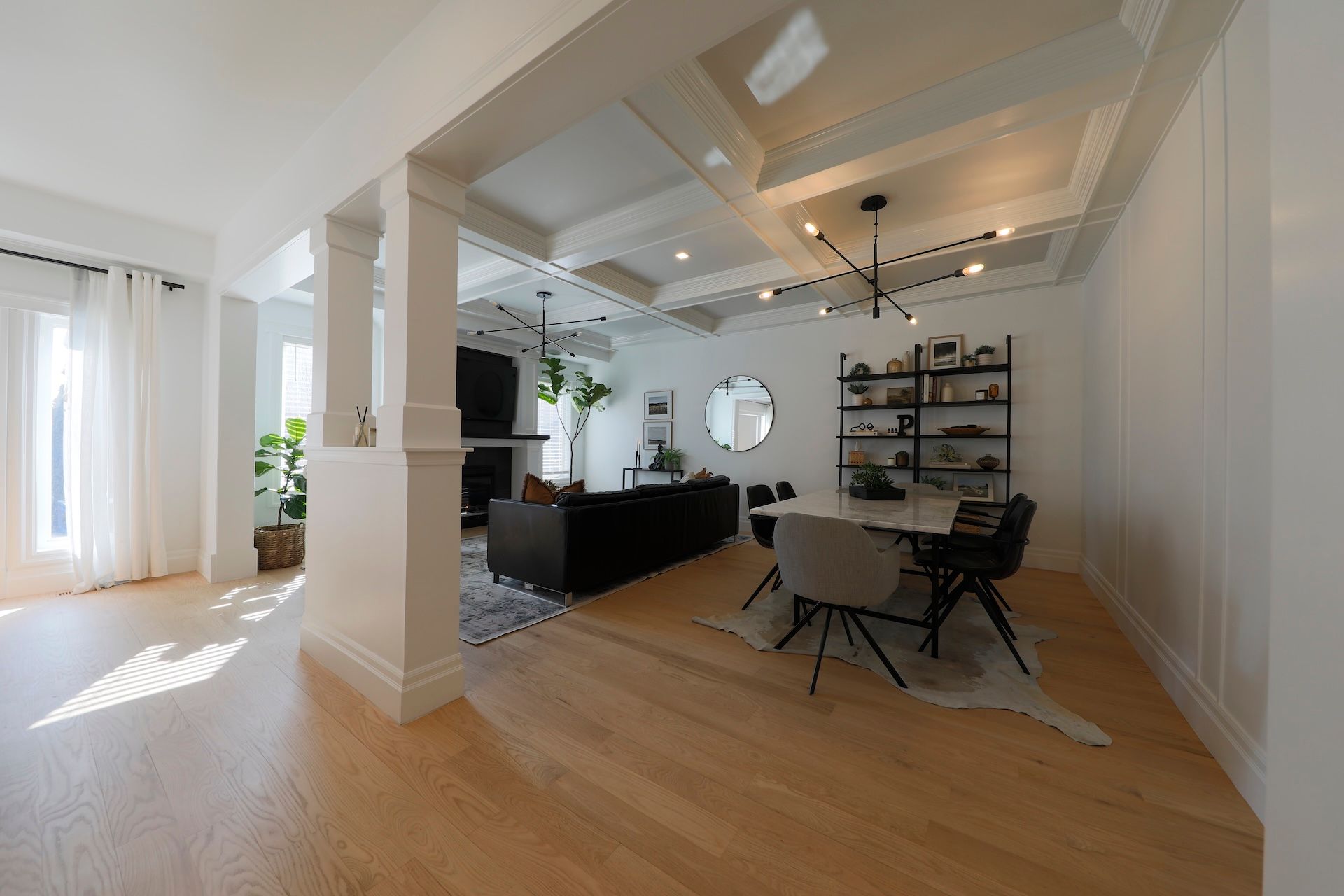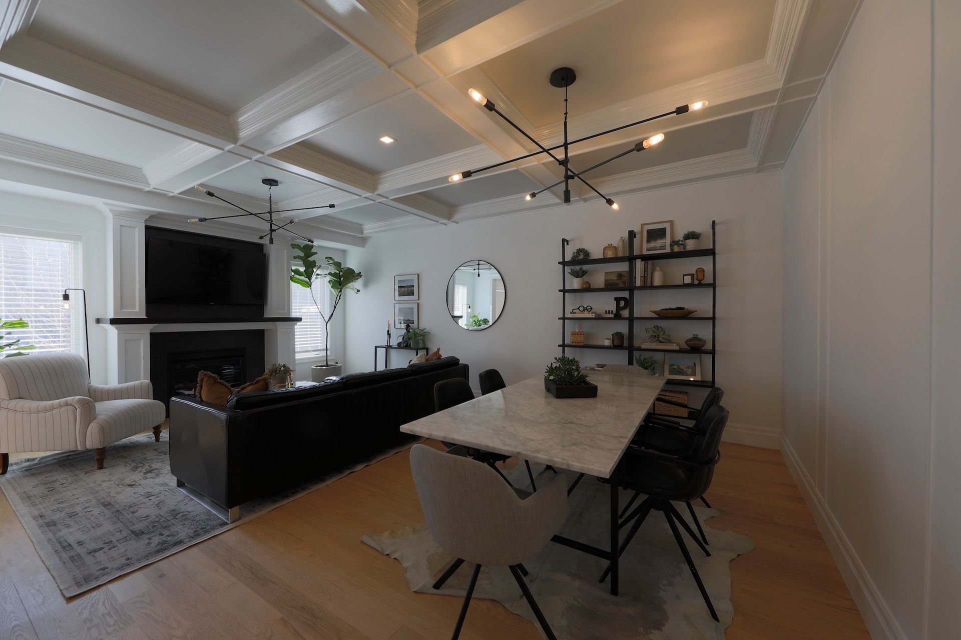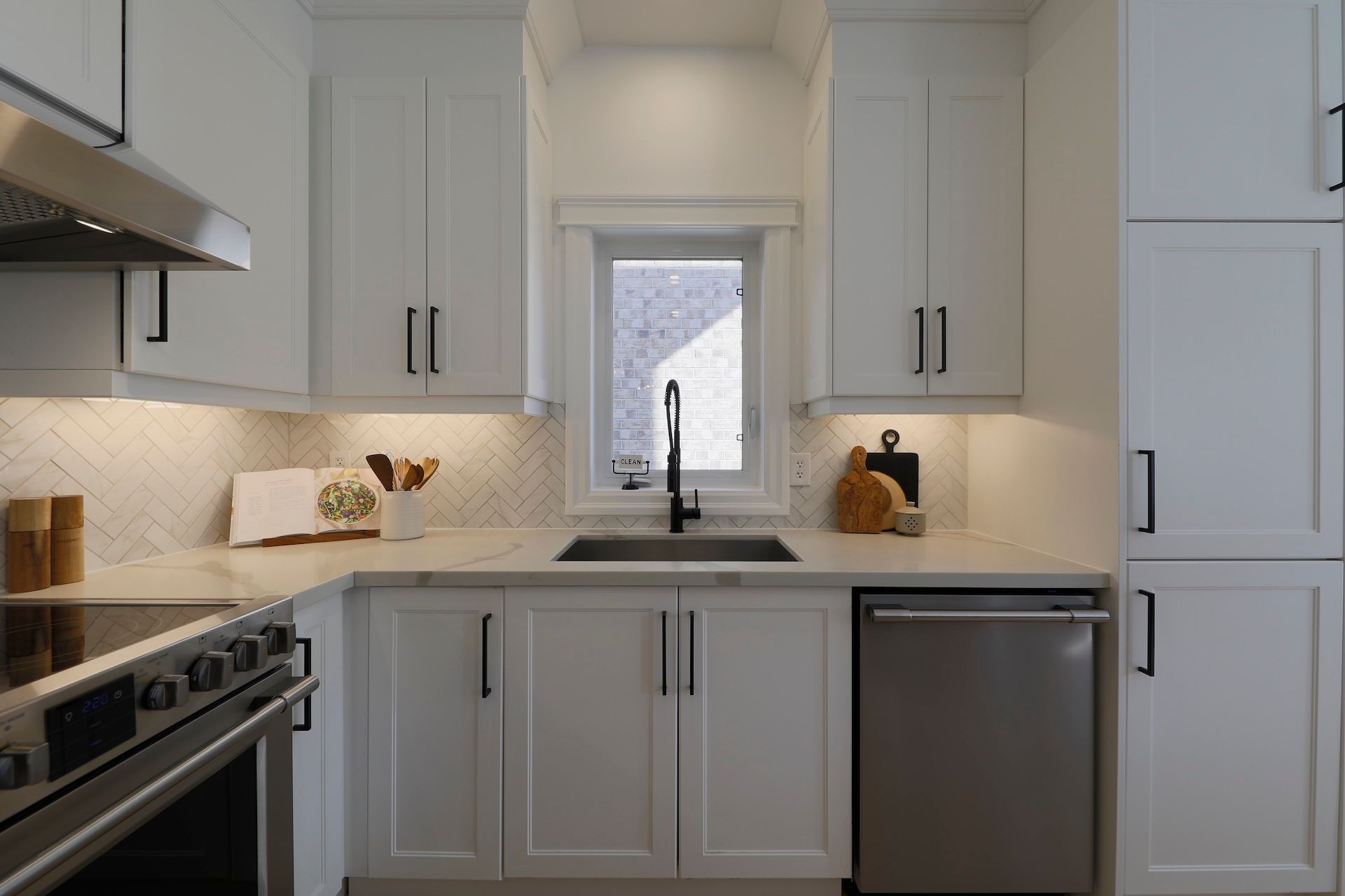 Welcome to luxury living in prestigious alton villageexperience nearly 3,000 square feet of beautifully finished luxury living where no detail has been overlooked. Located in the highly sought-after alton village, this professionally designed home is entirely move-in ready, showcasing freshly painted interiors, refinished hardwood floors, elegant waffle ceilings, and designer light fixtures equipped with lutron dimmers throughout. Property highlights:the chef's kitchen: the heart of the home features sleek, soft-close white cabinetry with modern hardware, gleaming quartz countertops, and a striking herringbone backsplash. It is fully equipped with stainless steel appliances (updated in 2018), a stylish coffee bar, and a large centre island with comfortable seating for four. Finished basement: an entertainer's dream, the professionally finished lower level includes a custom wet bar and a luxurious full bathroom. Outdoor oasis: step outside to a professionally landscaped exterior featuring a completely private rear yard with elegant stamped concrete-perfect for summer hosting. Fully finished garage: a pristine, fully finished double garage adds extra polished space and convenience.