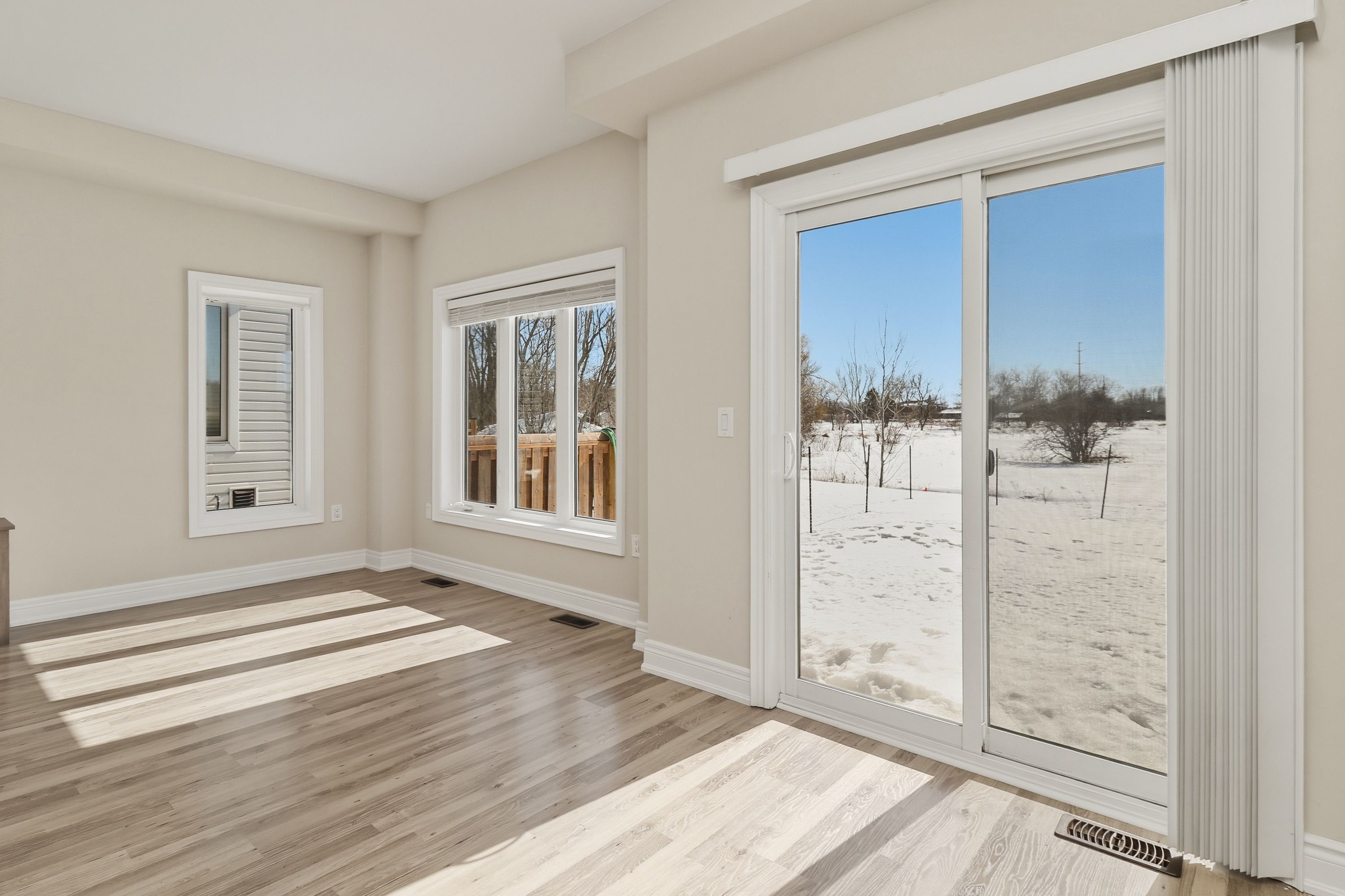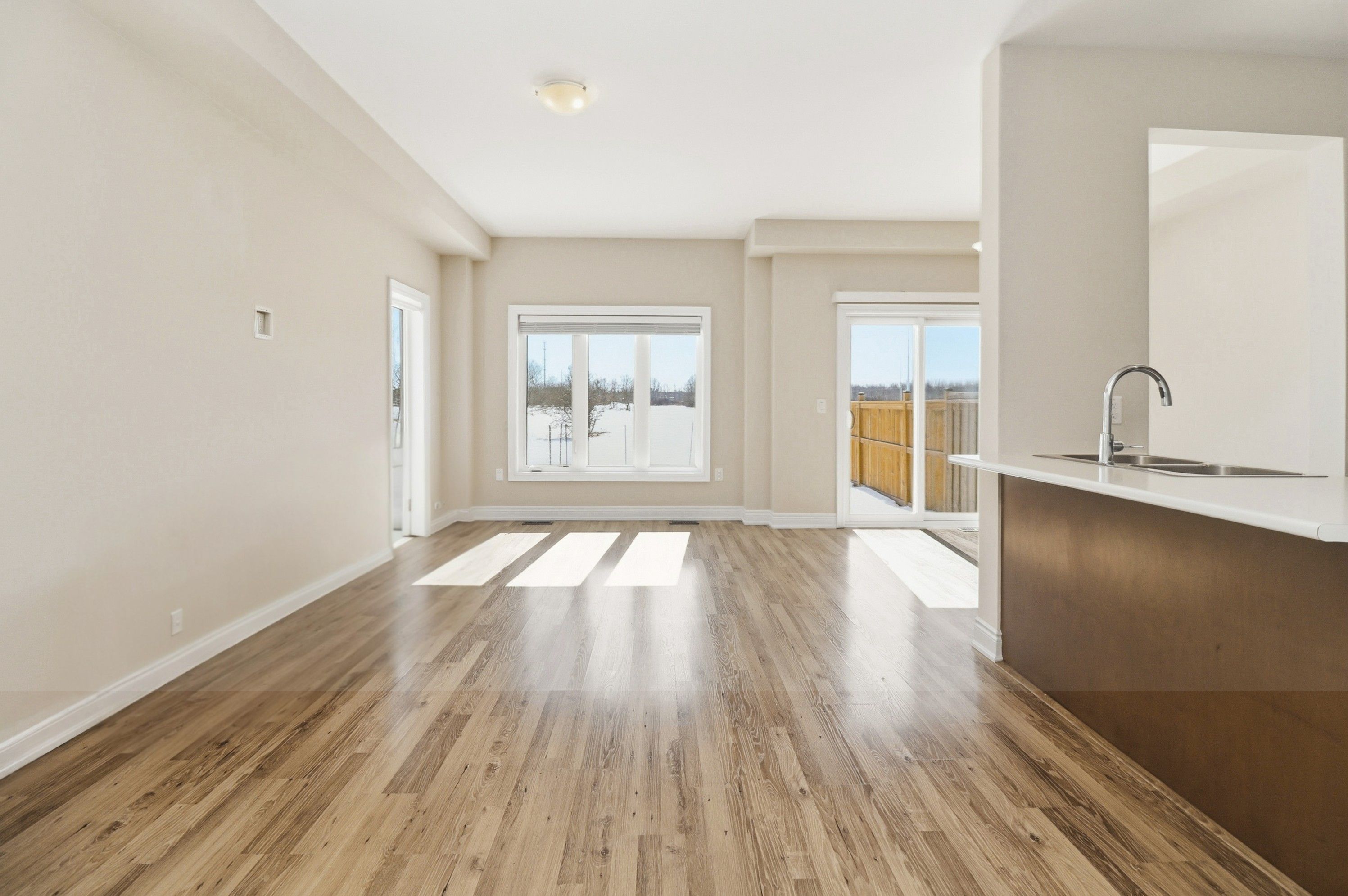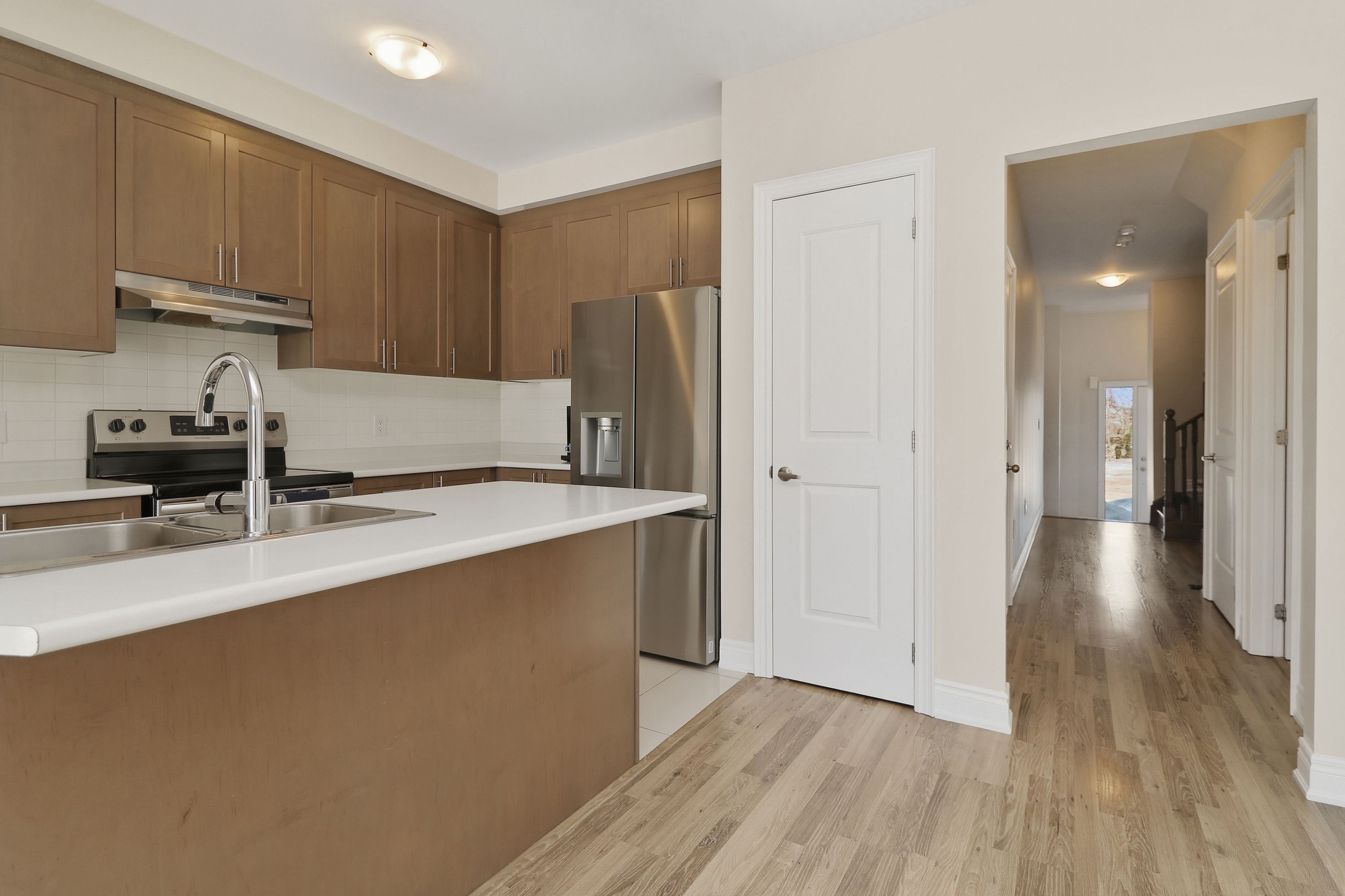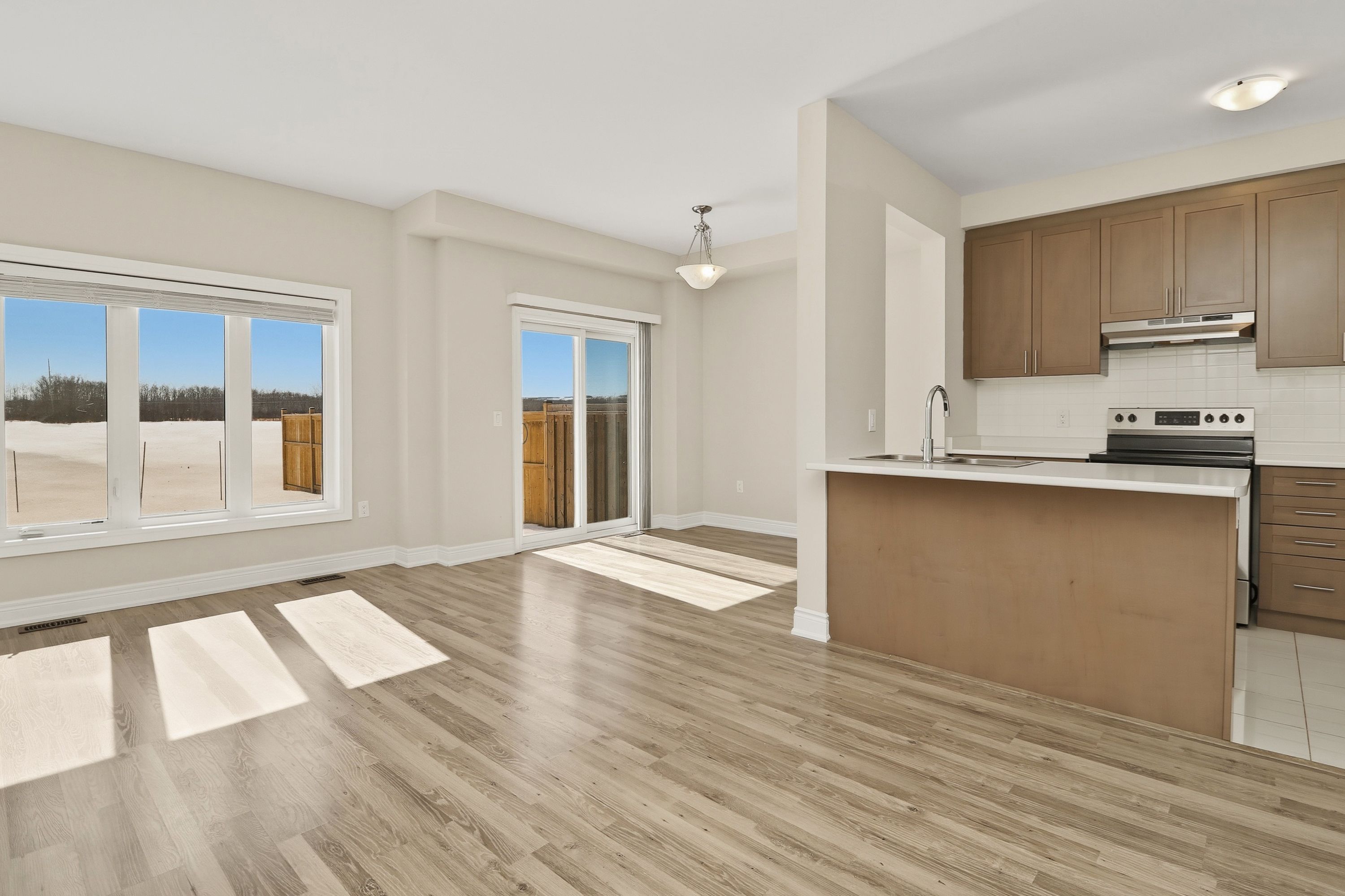 Welcome to this stunning 4 bedroom, 3 bathroom end unit, offering a bright, functional living space - perfect for first time home buyers, growing families, or downsizers seeking comfort and style. Ideally located just 15 minutes to collingwood, 30 minutes to barrie and blue mountain, and approximately one hour to the gta, this home offers easy access to year round recreation, shopping, dining, and major commuter routes. Situated on a premium lot with desirable south-facing rear exposure, this sun filled home is flooded with natural light throughout the day. As an end unit, it benefits from added privacy and extra windows, enhancing the home's bright and welcoming feel. The open concept main floor boasts 9 foot ceilings and a seamless flow between the living, and kitchen areas - an ideal layout for entertaining. The kitchen is thoughtfully designed with extended cabinetry, an upgraded backsplash, a breakfast bar, pantry, and premium porcelain tile flooring. Recent updates include new appliances (fridge and dishwasher, june 2025). A carpet-free interior, complemented by upgraded porcelain tile in the foyer, kitchen, and 2 piece powder room, creates a clean, contemporary, and low maintenance living space that combines both style and functionality. Upstairs, you'll find four generously sized bedrooms and two full bathrooms, offering plenty of space for families or home office needs. The primary suite provides a private retreat featuring a walk-in closet and 3 piece ensuite, while the additional bedrooms are served by a well appointed 4 piece bathroom. Bright, spacious, and move-in ready, this beautifully maintained end unit offers the perfect combination of space, functionality, and lifestyle.