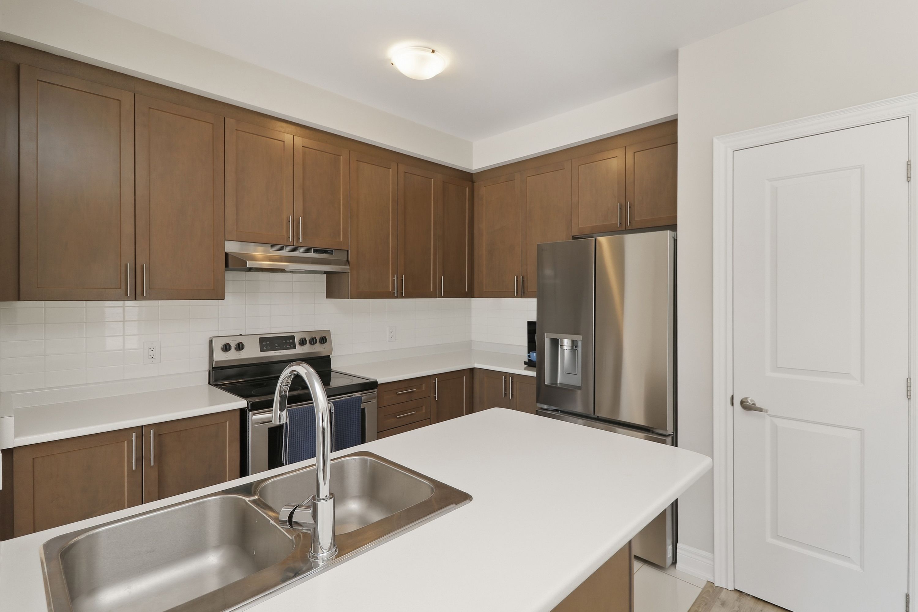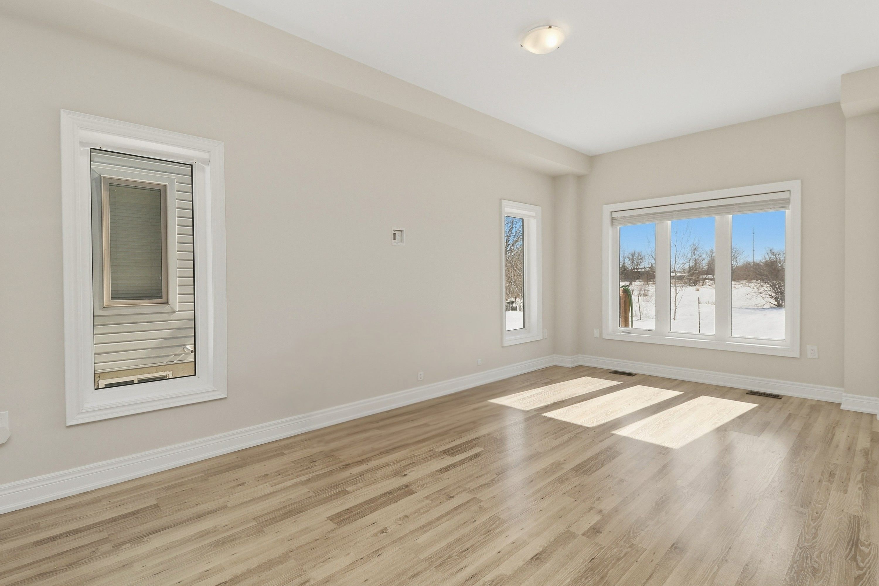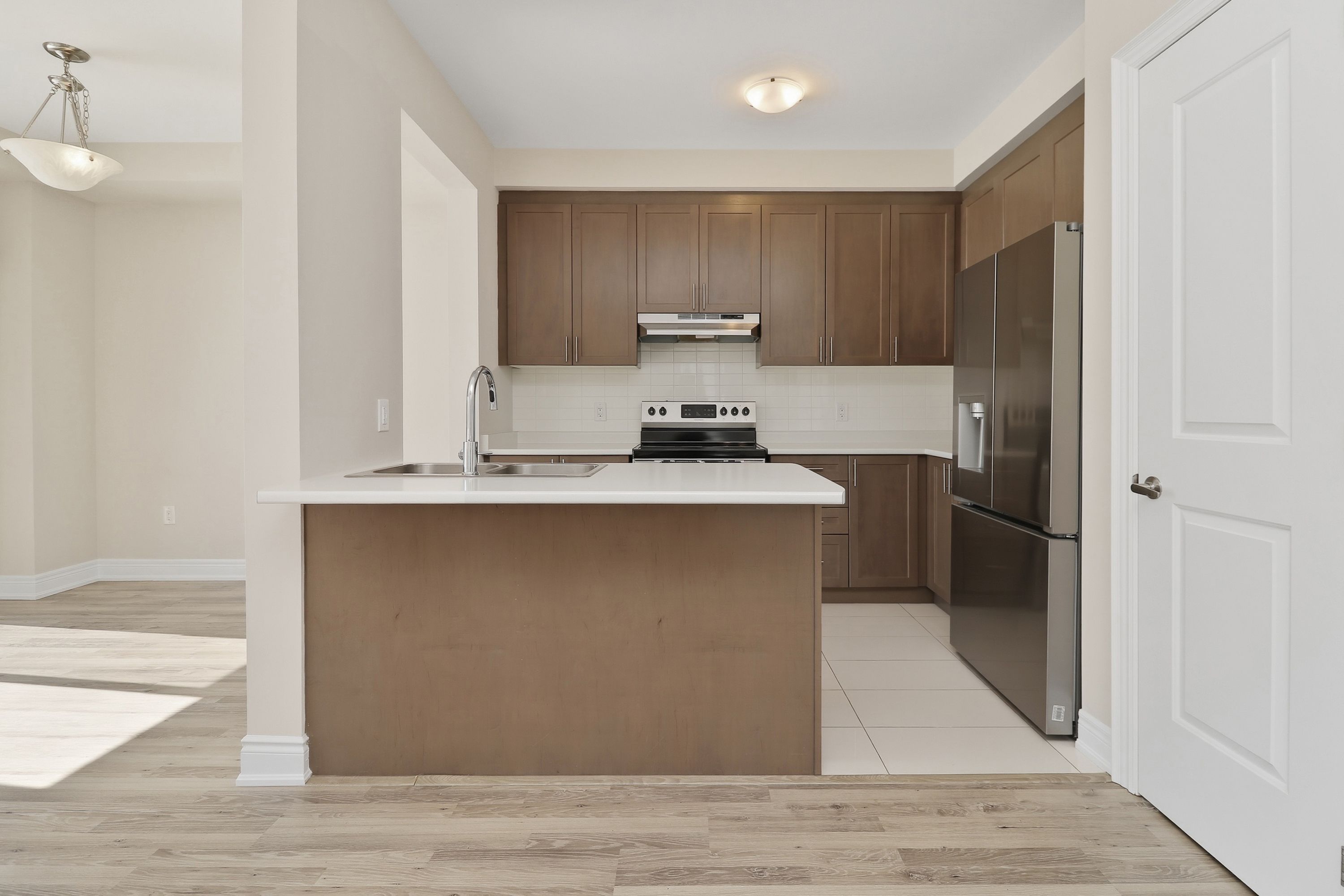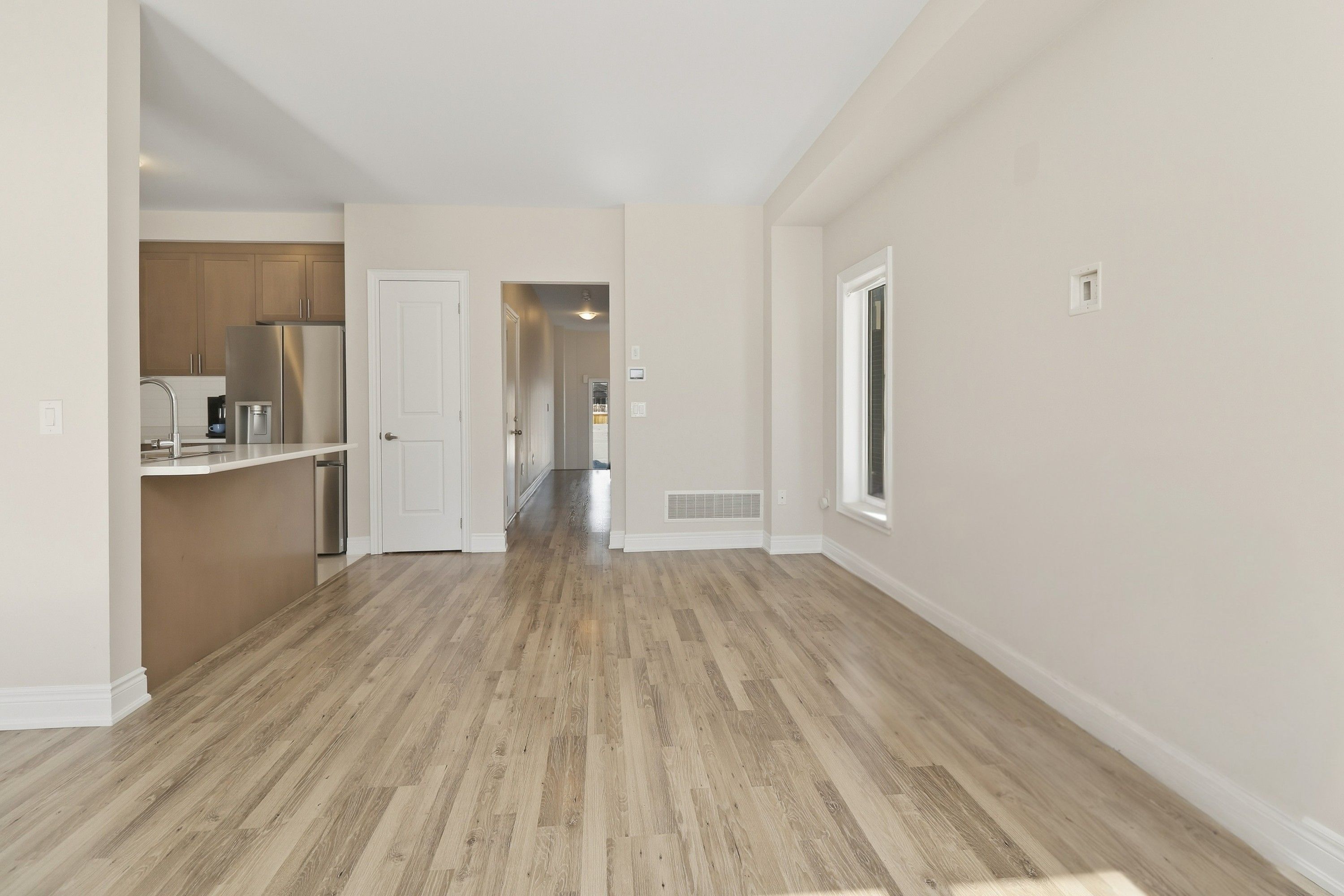Welcome to this stunning 4 bedroom, 3 bathroom end unit, offering a bright, functional living space - perfect for first time home buyers, growing families, or downsizers seeking comfort and style. Ideally located just 15 minutes to collingwood, 30 minutes to barrie and blue mountain, and approximately one hour to the gta, this home offers easy access to year round recreation, shopping, dining, and major commuter routes. Situated on a premium lot with desirable south-facing rear exposure, this sun filled home is flooded with natural light throughout the day. As an end unit, it benefits from added privacy and extra windows, enhancing the home's bright and welcoming feel. The open concept main floor boasts 9 foot ceilings and a seamless flow between the living, and kitchen areas - an ideal layout for entertaining. The kitchen is thoughtfully designed with extended cabinetry, an upgraded backsplash, a breakfast bar, pantry, and premium porcelain tile flooring. Recent updates include new appliances (fridge and dishwasher, june 2025). A carpet-free interior, complemented by upgraded porcelain tile in the foyer, kitchen, and 2 piece powder room, creates a clean, contemporary, and low maintenance living space that combines both style and functionality. Upstairs, you'll find four generously sized bedrooms and two full bathrooms, offering plenty of space for families or home office needs. The primary suite provides a private retreat featuring a walk-in closet and 3 piece ensuite, while the additional bedrooms are served by a well appointed 4 piece bathroom. Bright, spacious, and move-in ready, this beautifully maintained end unit offers the perfect combination of space, functionality, and lifestyle.