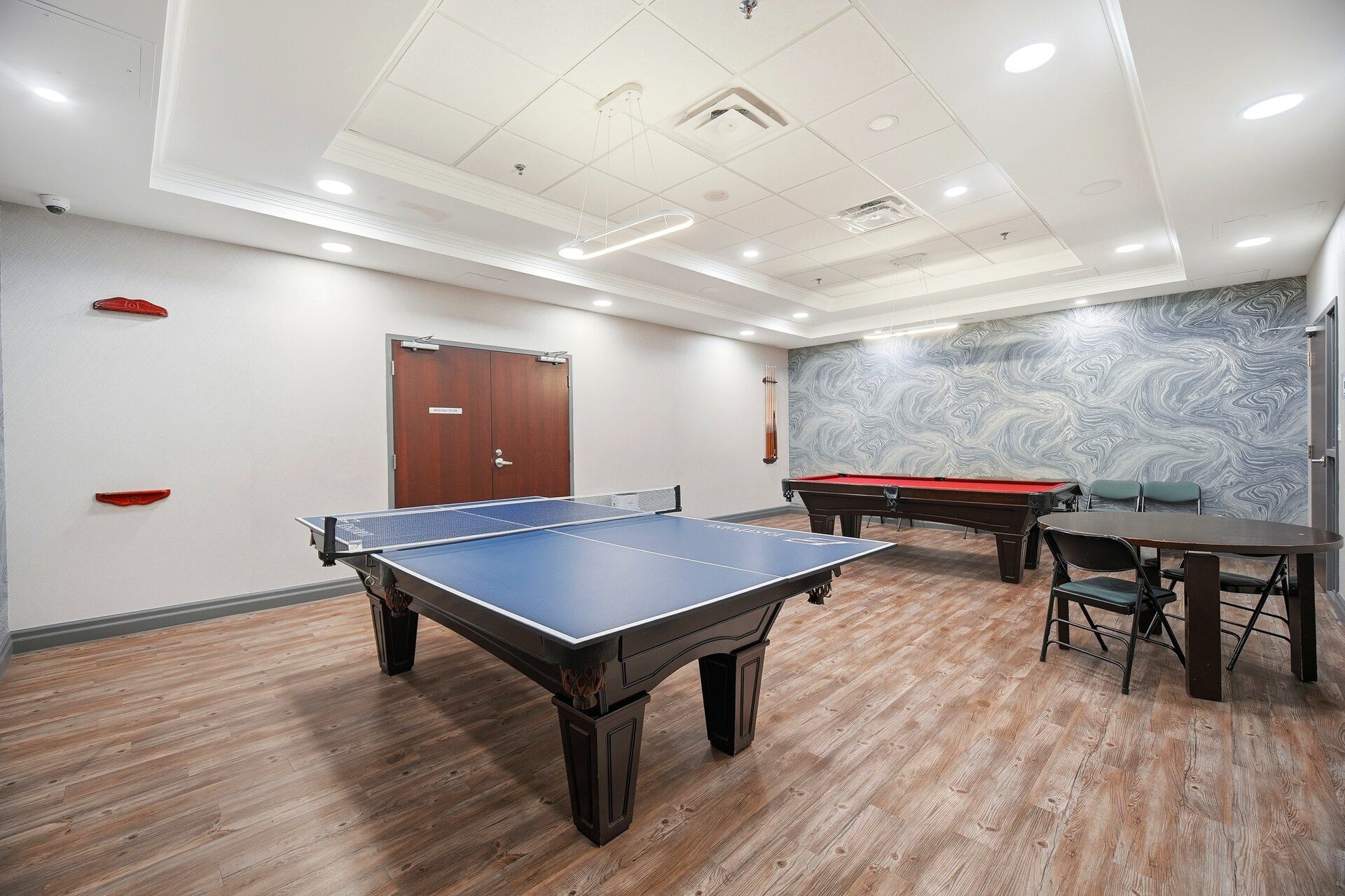 • Amenities include indoor pool, gym, and outdoor tennis court.