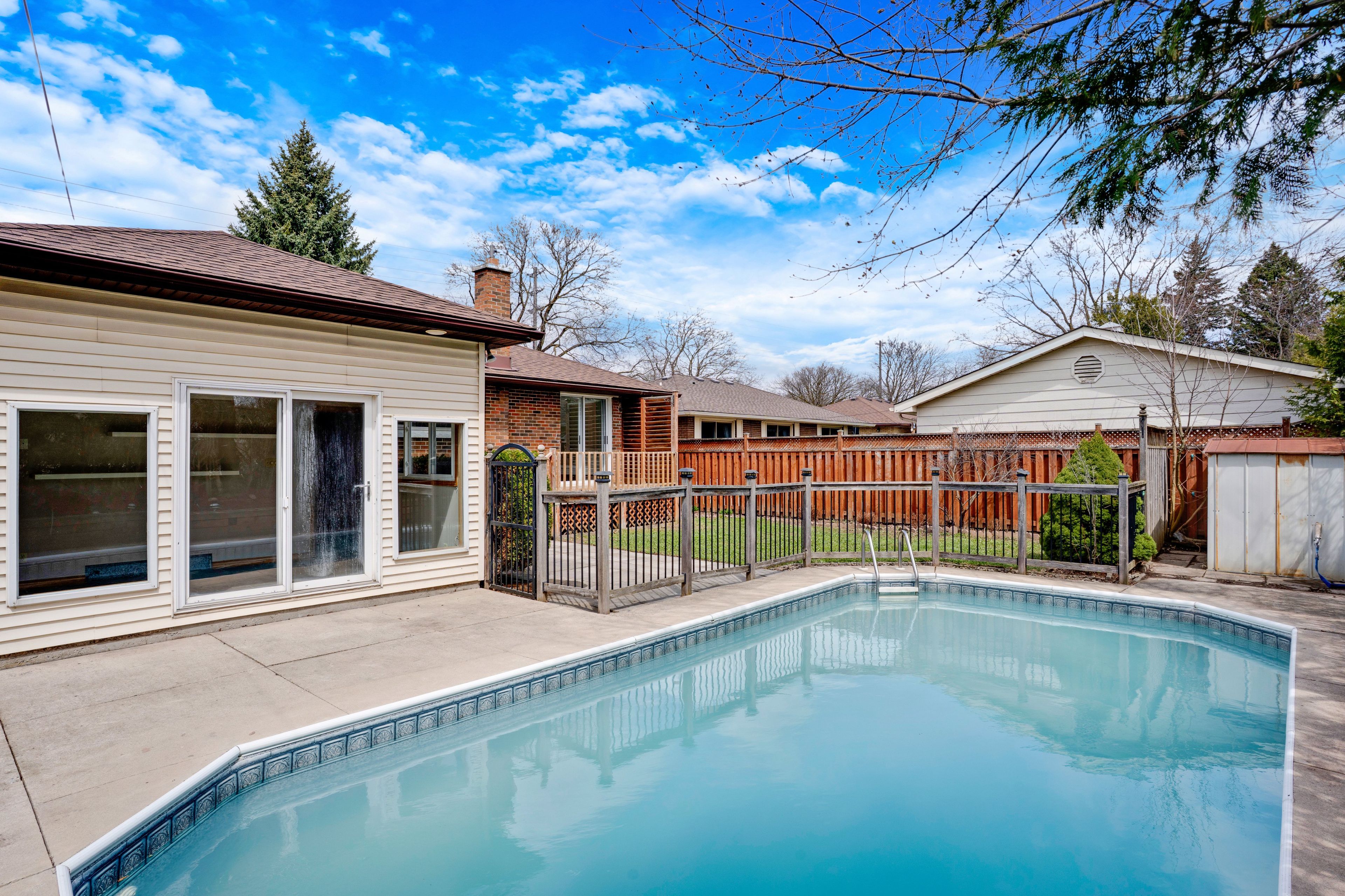 • Private backyard features a sparkling inground pool and dedicated entertaining areas.