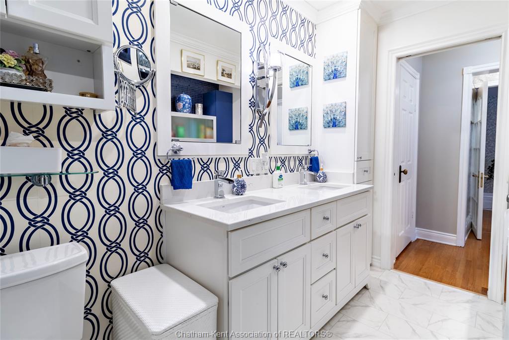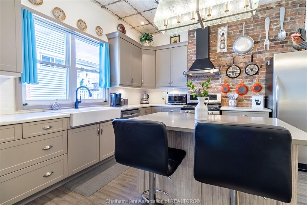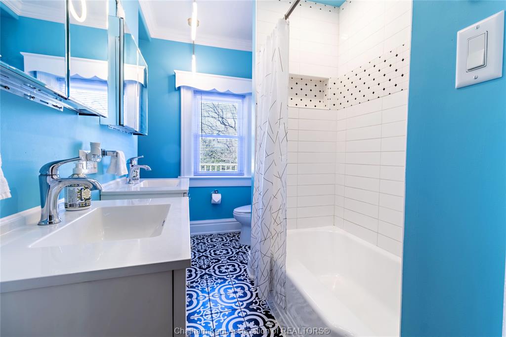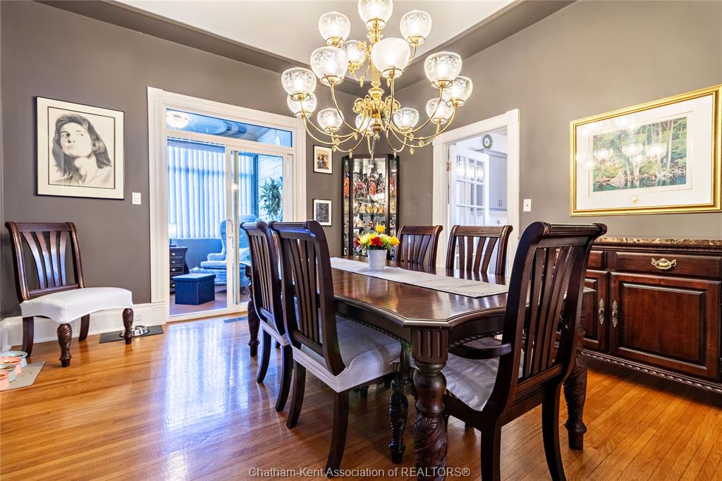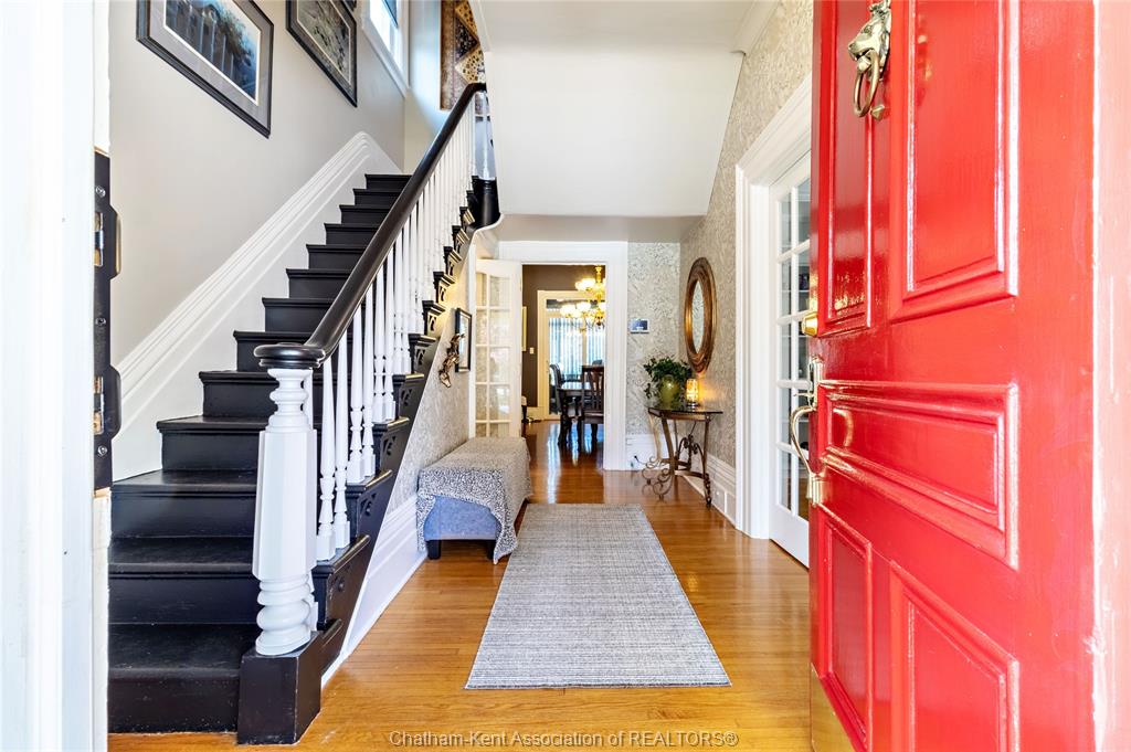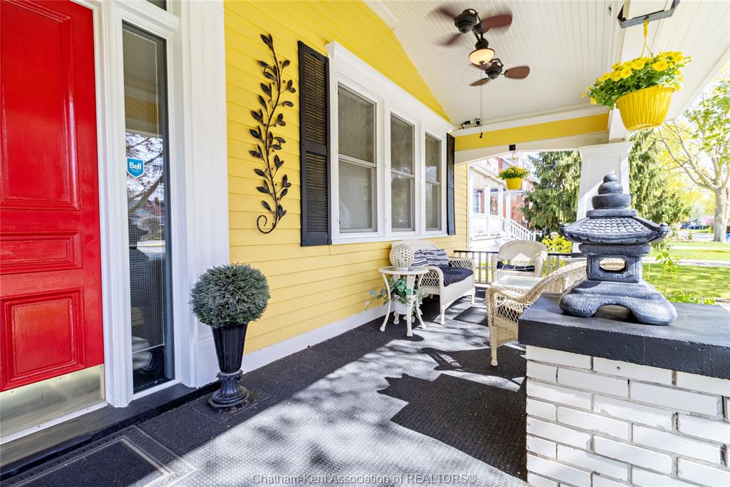335 wellington st. W. - 1910 stately charmer, the gem of wellington st. W., this stately built 4 bed, 2 bath home blends century character with modern upgrades on a prestigious tree-lined street. Original details include tall baseboards, soaring ceilings & period charm throughout, the kind of character you just can't build anymore. Enjoy a fully updated baker's kitchen, bathrooms with heated floors - a treat on cold ontario mornings. Fresh paint inside and out, newer windows and meticulous upkeep = true turn-key. The lot is a standout at over 200ft deep, giving you room to garden, play or entertain. Unwind on the covered front porch with ceiling fan, or retreat to the rare 2nd floor walkout porch - your private spot for sun and sunsets. Just steps from downtown chatham, you're minutes from shopping, dining, thames river trails, parks and entertainment - all while living on a quiet, tree-lined street. 4 beds|2 baths| 1910 charm|200ft+ lot|downtown convenience.