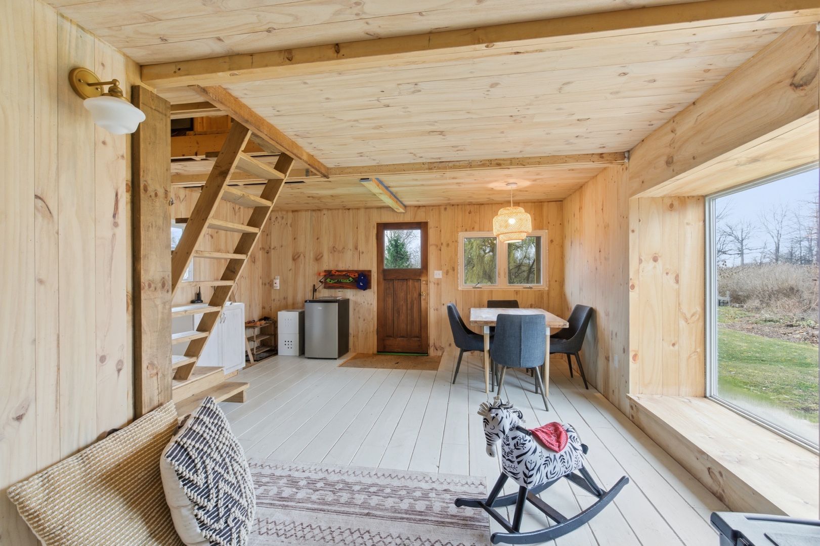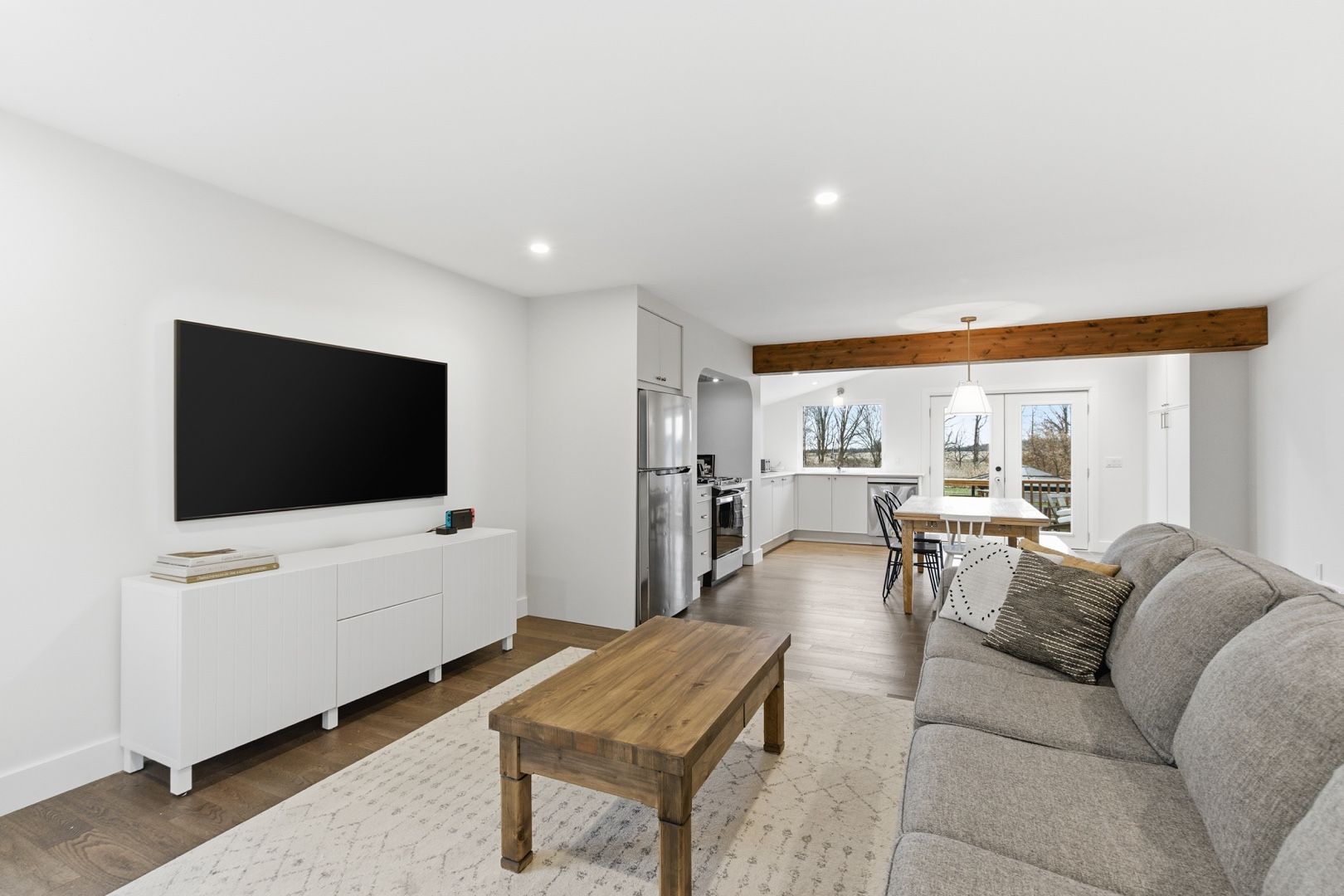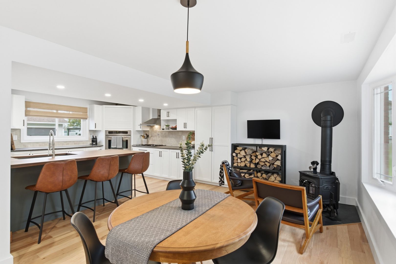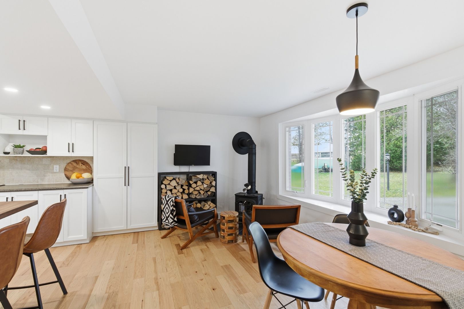 Incredible opportunity to own this rare two-family home set on a full one-acre property, just seconds from downtown binbrook. Both units are fully above grade and feature completely separate front and rear entrances, offering versatility for multi-generational living or rental income. North suite: step inside to an updated kitchen equipped with built-in stainless-steel appliances, a butcher-block island, modern trim work and beautiful hickory engineered flooring. The bright living/dining area provides the perfect space for family gatherings and entertaining. The lower level features a renovated rec room with a cozy fireplace-ideal for movie nights. Upstairs are two bedrooms with excellent storage and an updated 5-piece bathroom. South suite: the professionally designed kitchen showcases a warm, inviting aesthetic with a gas stove, stainless steel appliances and quartz countertops. Enjoy a spacious family room filled with natural light, two main-floor bedrooms and an updated full bathroom. A generous mudroom with separate laundry completes this level. A third bedroom is located in the finished basement. Outdoor living: you'll love the stunning sunsets on summer nights. The expansive 1-acre yard offers everything you need-an on-ground pool, a 3-car garage/workshop, extensive vegetable gardens and a charming garden house with lots of potential. There is ample space for entertaining, relaxing and enjoying country living just moments from town. Rsa.