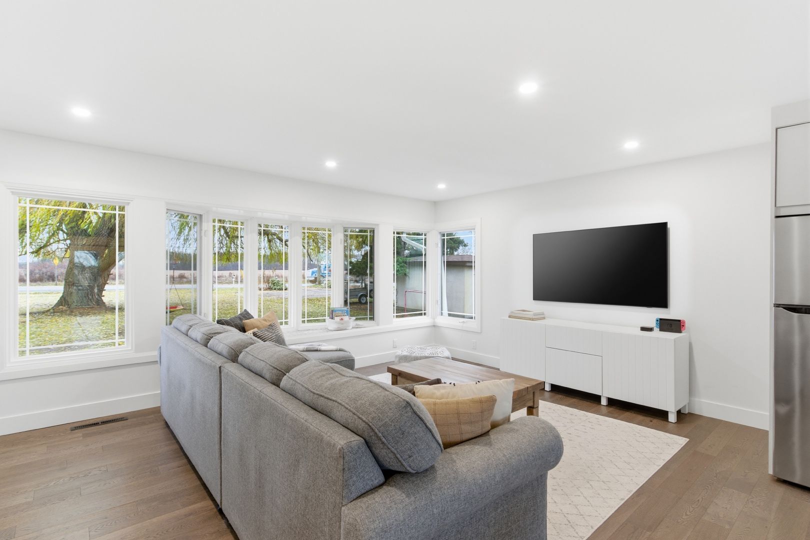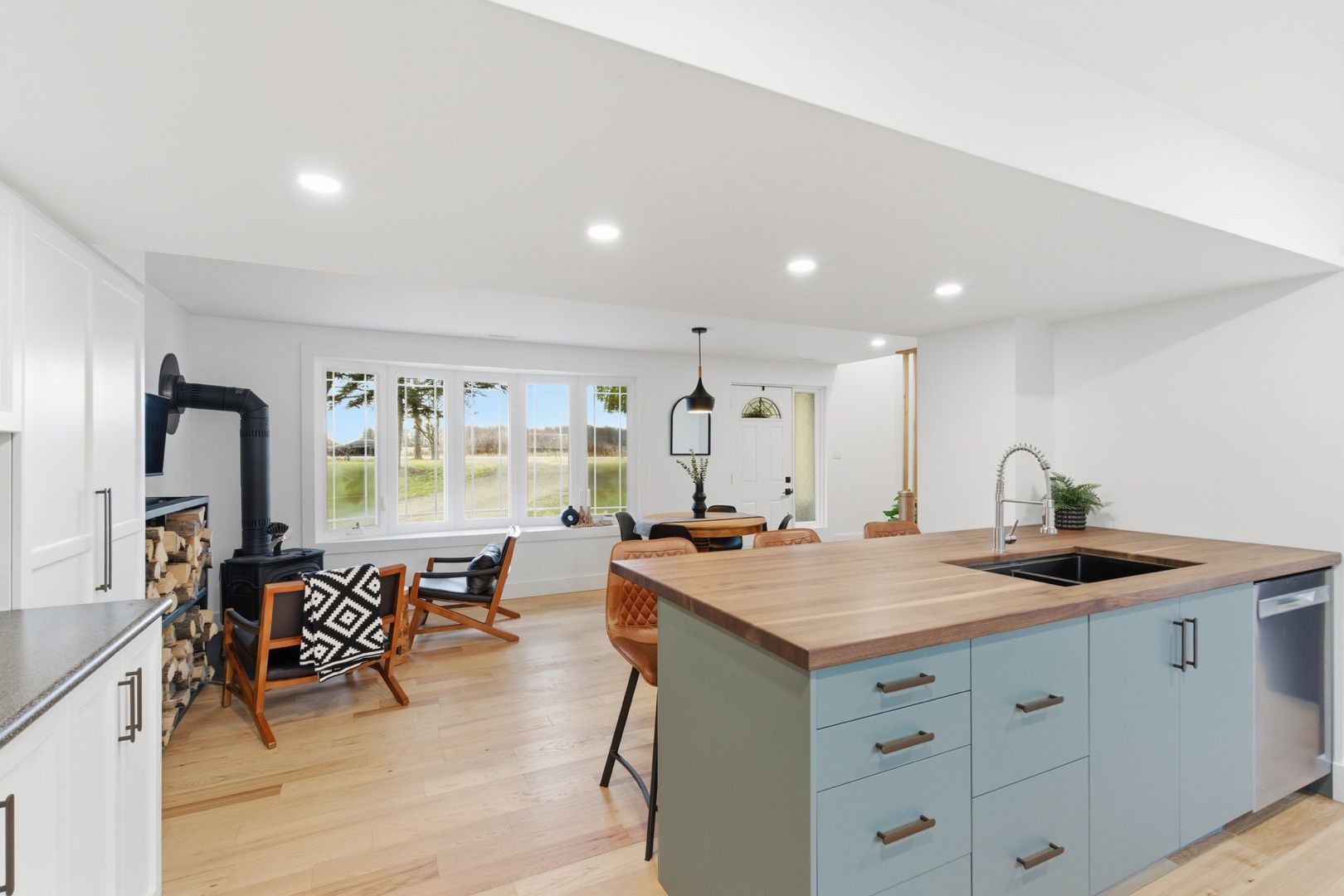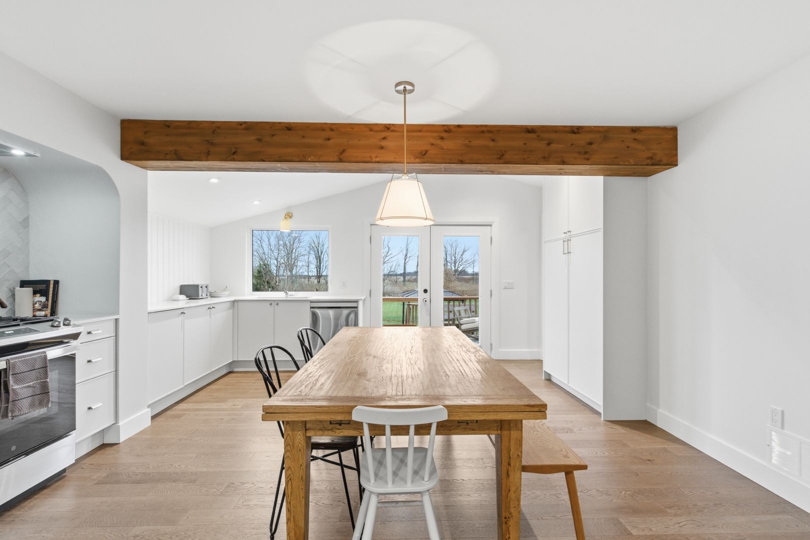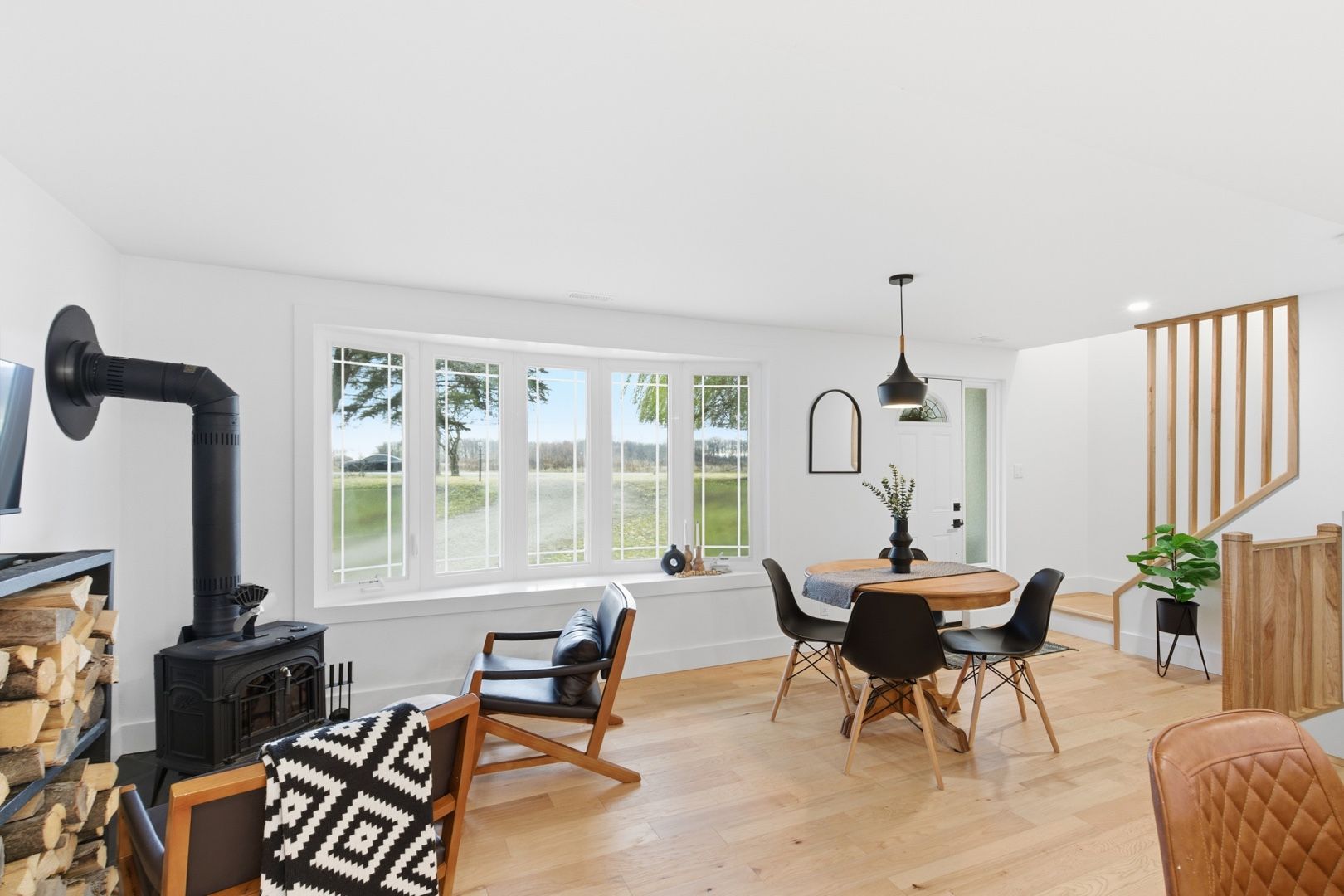 Incredible opportunity to own this rare two-family home set on a full one-acre property, just seconds from downtown binbrook. Both units are fully above grade and feature completely separate front and rear entrances, offering versatility for multi-generational living or rental income. North suite: step inside to an updated kitchen equipped with built-in stainless-steel appliances, a butcher-block island, modern trim work and beautiful hickory engineered flooring. The bright living/dining area provides the perfect space for family gatherings and entertaining. The lower level features a renovated rec room with a cozy fireplace-ideal for movie nights. Upstairs are two bedrooms with excellent storage and an updated 5-piece bathroom. South suite: the professionally designed kitchen showcases a warm, inviting aesthetic with a gas stove, stainless steel appliances and quartz countertops. Enjoy a spacious family room filled with natural light, two main-floor bedrooms and an updated full bathroom. A generous mudroom with separate laundry completes this level. A third bedroom is located in the finished basement. Outdoor living: you'll love the stunning sunsets on summer nights. The expansive 1-acre yard offers everything you need-an on-ground pool, a 3-car garage/workshop, extensive vegetable gardens and a charming garden house with lots of potential. There is ample space for entertaining, relaxing and enjoying country living just moments from town. Rsa.