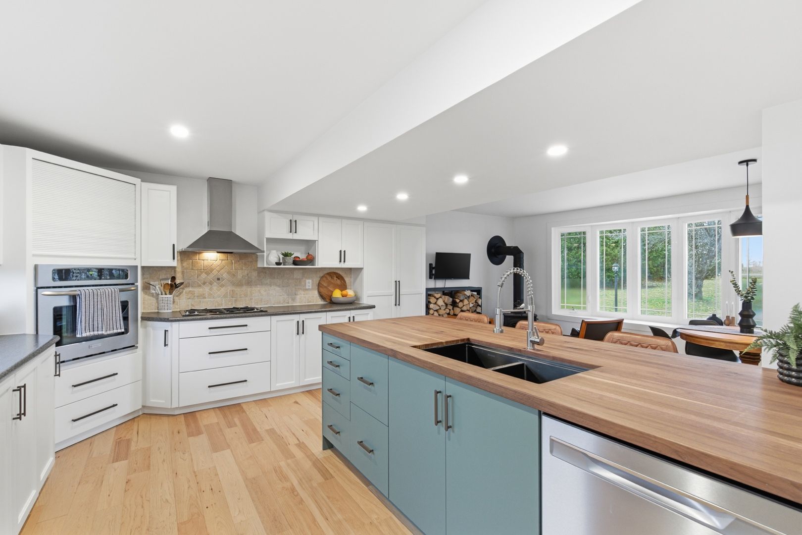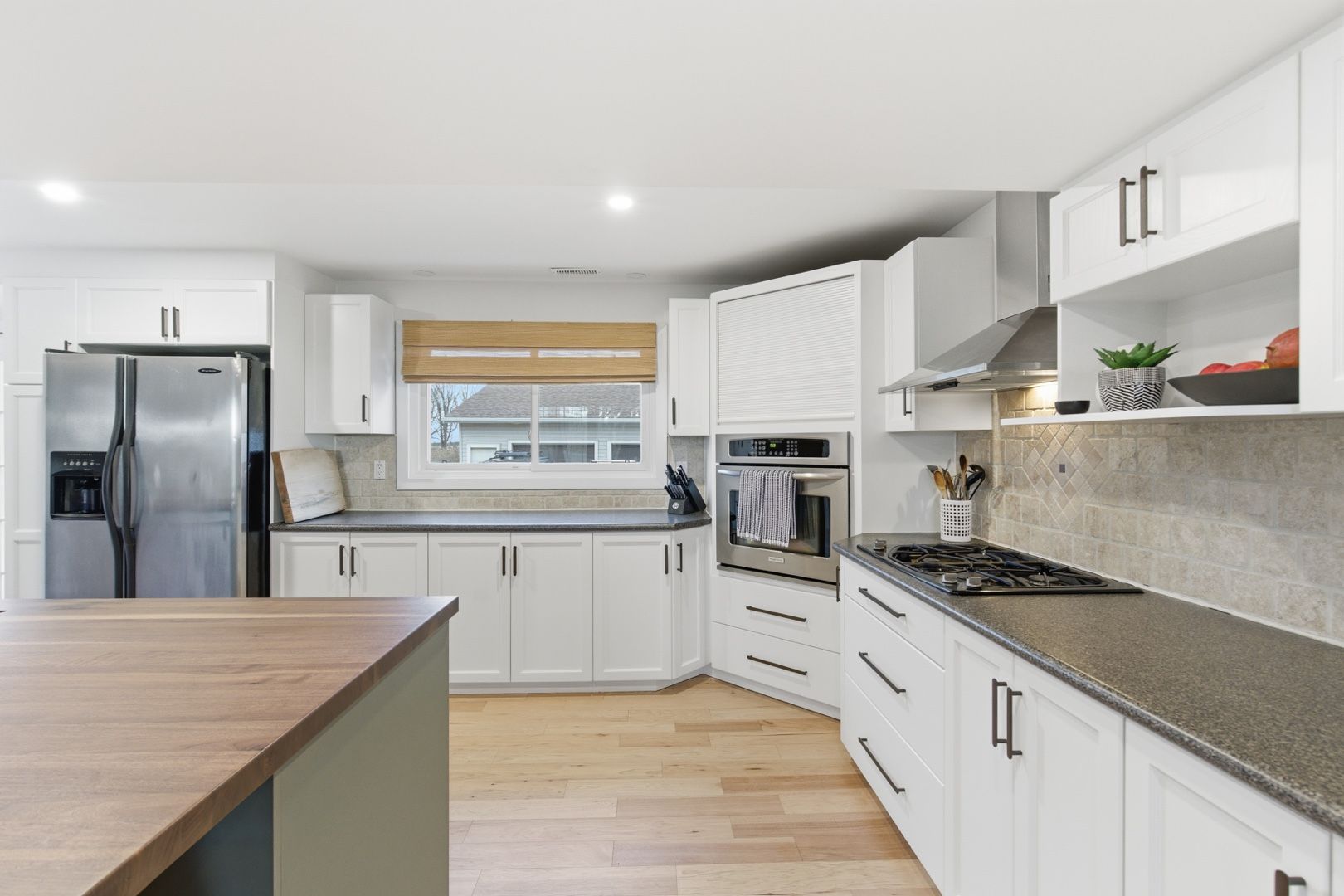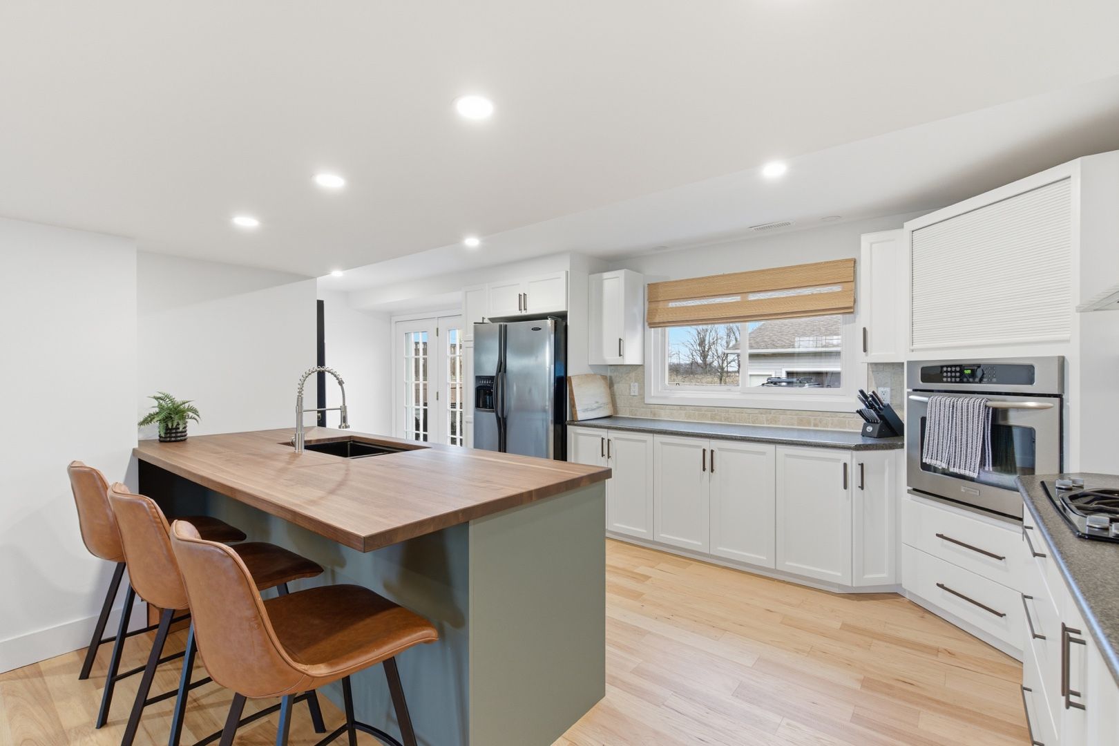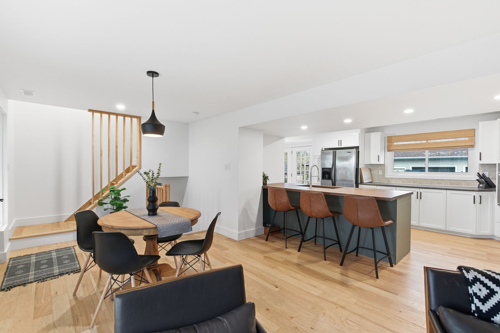 Incredible opportunity to own this rare two-family home set on a full one-acre property, just seconds from downtown binbrook. Both units are fully above grade and feature completely separate front and rear entrances, offering versatility for multi-generational living or rental income. North suite: step inside to an updated kitchen equipped with built-in stainless-steel appliances, a butcher-block island, modern trim work and beautiful hickory engineered flooring. The bright living/dining area provides the perfect space for family gatherings and entertaining. The lower level features a renovated rec room with a cozy fireplace-ideal for movie nights. Upstairs are two bedrooms with excellent storage and an updated 5-piece bathroom. South suite: the professionally designed kitchen showcases a warm, inviting aesthetic with a gas stove, stainless steel appliances and quartz countertops. Enjoy a spacious family room filled with natural light, two main-floor bedrooms and an updated full bathroom. A generous mudroom with separate laundry completes this level. A third bedroom is located in the finished basement. Outdoor living: you'll love the stunning sunsets on summer nights. The expansive 1-acre yard offers everything you need-an on-ground pool, a 3-car garage/workshop, extensive vegetable gardens and a charming garden house with lots of potential. There is ample space for entertaining, relaxing and enjoying country living just moments from town. Rsa.