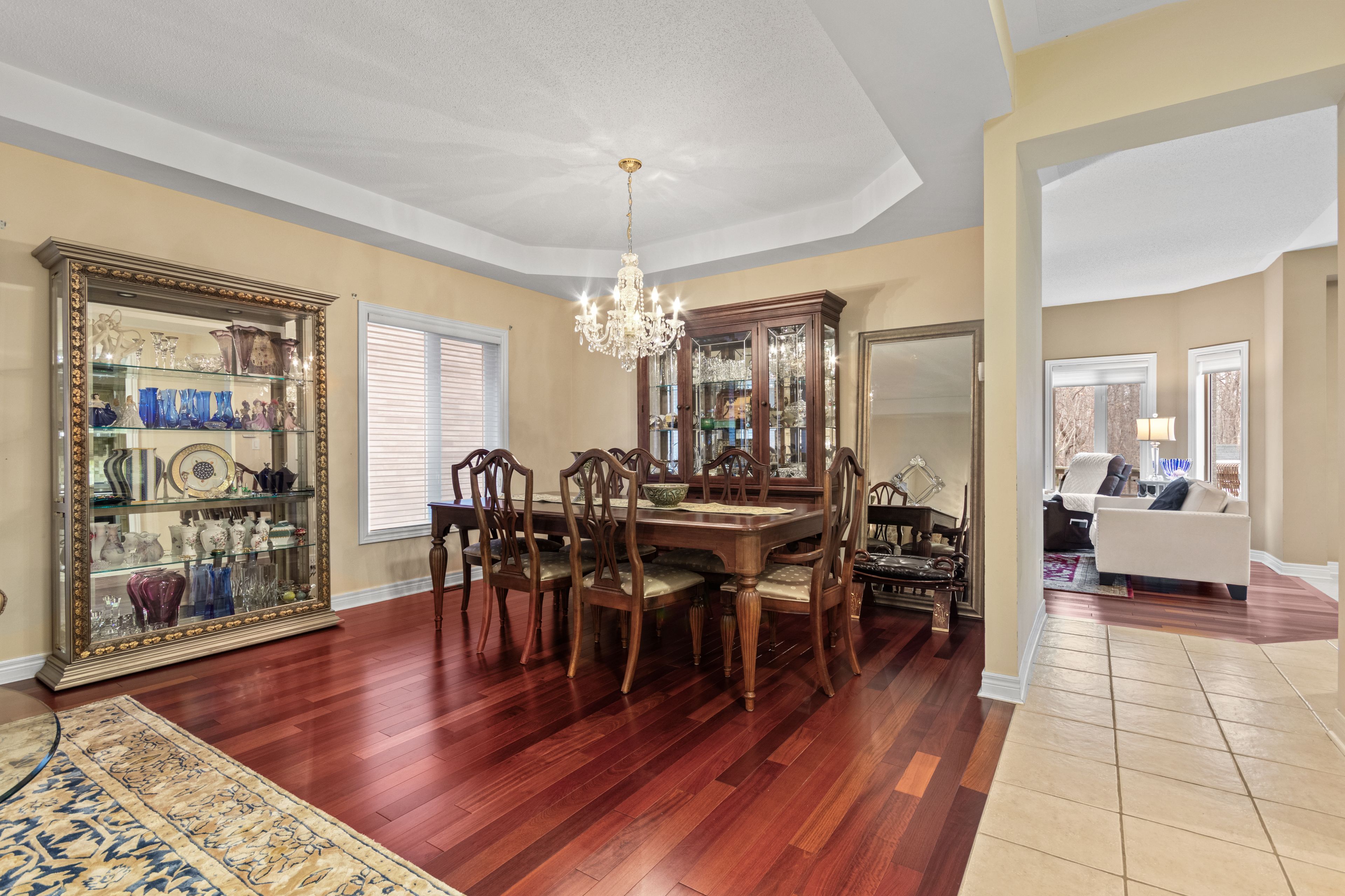 Welcome to 3352 erin centre blvd, an executive family home in the heart of churchill meadows offering over 4,200 sf of living space, with no rear neighbours. Step inside and you are immediately greeted by a curved oak staircase, rich hardwood flooring, and soaring ceilings that set an impressive tone from the moment you enter. The main level is designed for both everyday living and entertaining. A formal dining room invites memorable gatherings, while the sun-filled living and family rooms create warm, connected spaces anchored by a cozy fireplace. The chef-inspired kitchen offers granite countertops, custom cabinetry, stainless steel appliances, and a detailed backsplash that adds a polished finish. The adjoining breakfast area is bright and inviting, opening directly to your private deck and stone patio, which makes indoor-outdoor living seamless for morning coffee or evening relaxation. A dedicated main floor office provides a quiet space to work or study, while a convenient laundry room adds everyday practicality. Above, four generous bedrooms offer comfort for the whole family. The primary suite is a true retreat, featuring a coffered ceiling, expansive windows overlooking a peaceful treetop backdrop, and a spa-like 5 piece ensuite with a soaker tub and dual vanities, designed for relaxation at the end of the day. The lower level offers a large open rec space ready to be transformed into a home theatre, gym, or entertainment zone, limited only by your vision. Outside your door, enjoy quick access to churchill meadows community centre and mattamy sports park for recreation, sports, and family activities. Daily essentials and shopping are minutes away at erin mills town centre, along with top medical care at credit valley hospital. Families will appreciate access to highly regarded schools including stephen lewis secondary school. Commuting is effortless with nearby access to highways highway 403 and highway 407, plus convenient connections to the go transit.