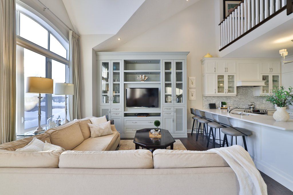 • Elegant main level features vaulted ceilings and a well-equipped kitchen.
