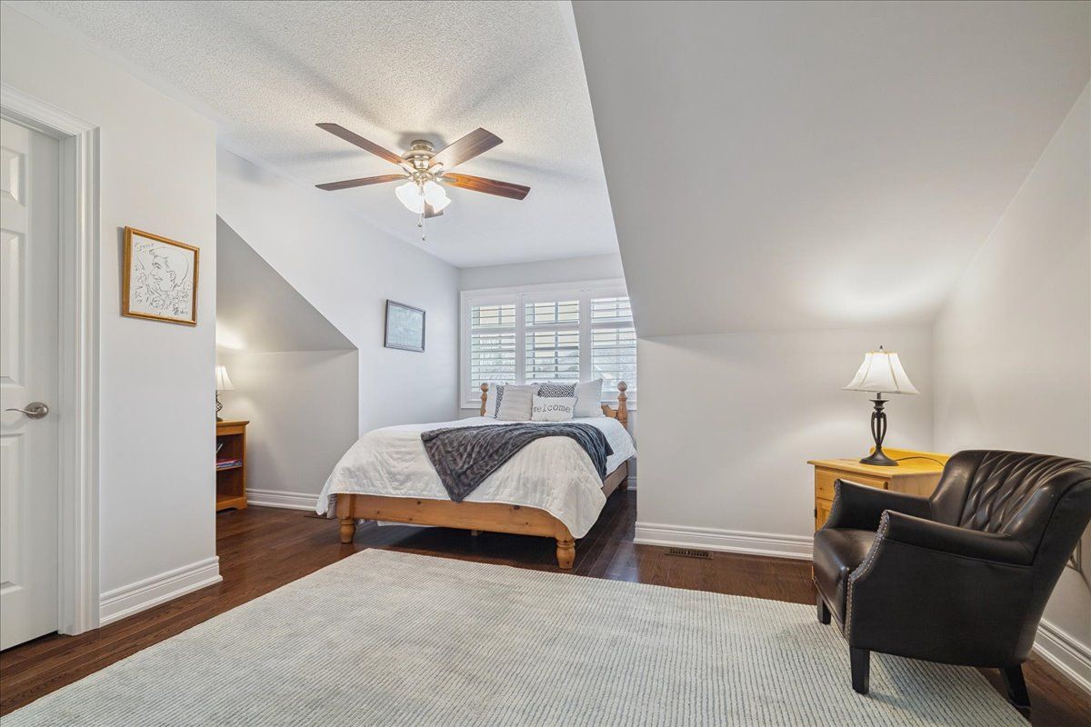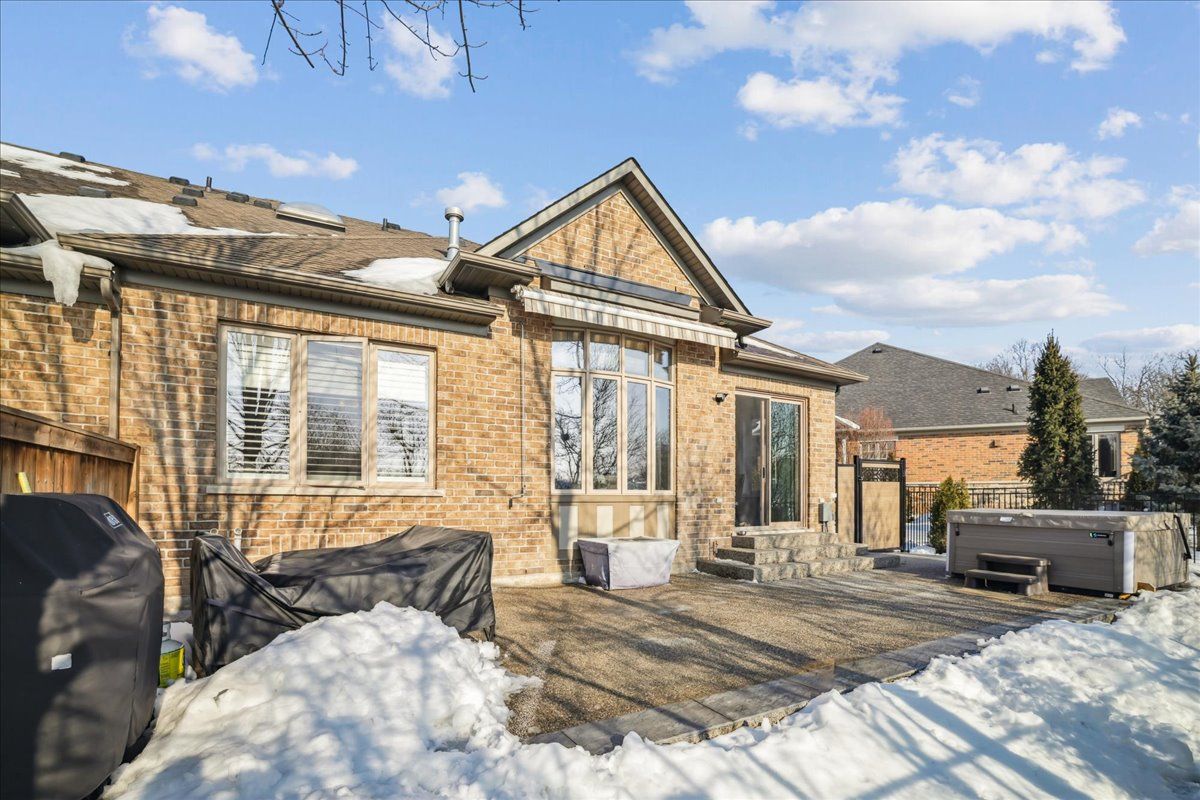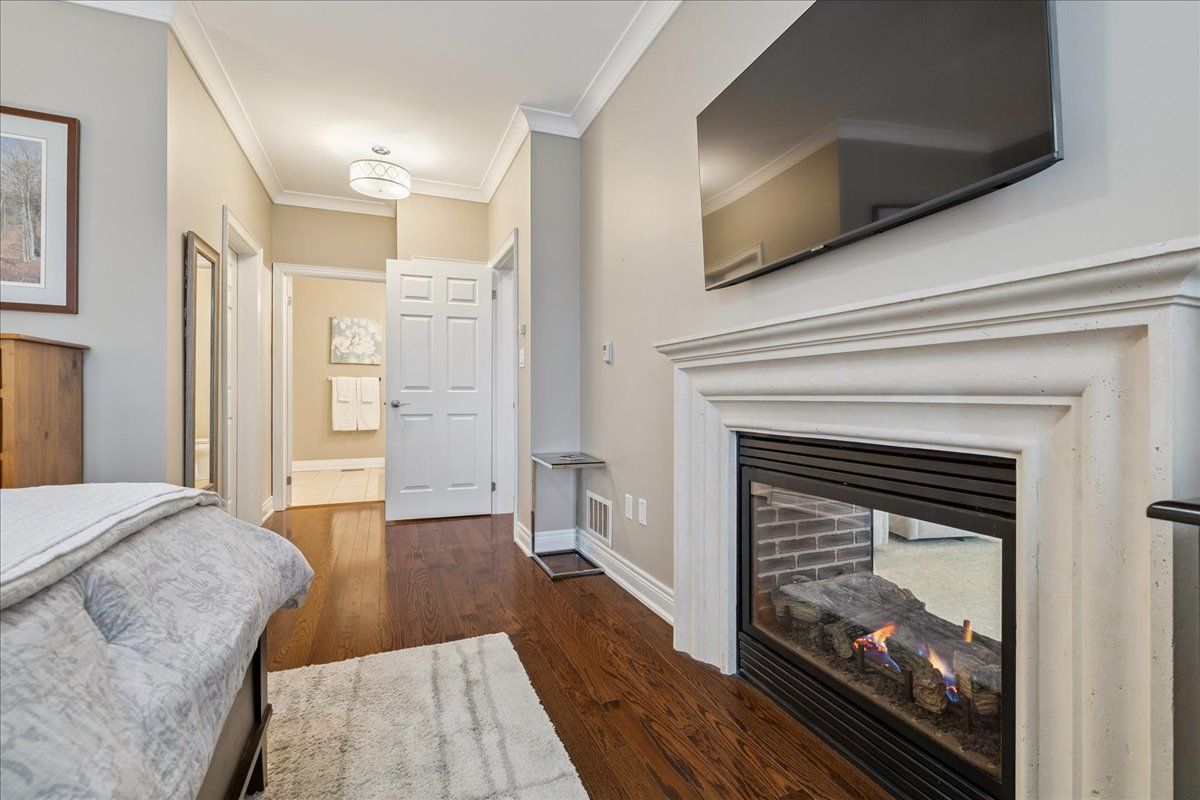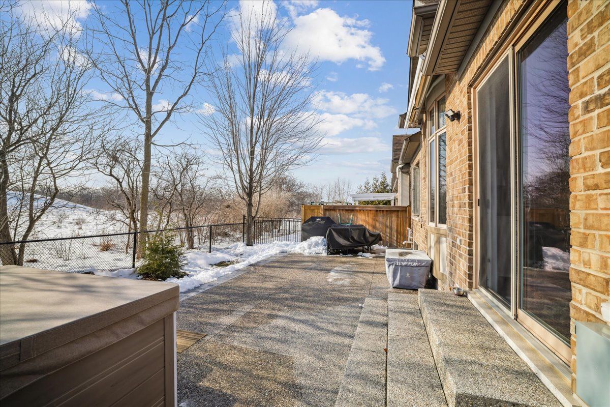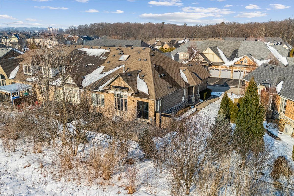Tucked within an exclusive enclave, this rare and sought-after bungaloft offers premium sunset rear exposure overlooking bronte creek provincial park. With over 3,900 sq. Ft. Of bright, open living space, this executive family home showcases hardwood floors, pot lights, and upgraded fixtures throughout. A formal dining room with cathedral ceilings flows into the stunning living room with soaring ceilings and a gas fireplace, seamlessly connected to the designer kitchen featuring two-tone cabinetry, stainless steel appliances, granite counters, island with breakfast bar, backsplash, valance lighting, and walkout to a private yard with lush greenery and exposed aggregate patio. The main floor primary suite offers a walk-in closet, two-way fireplace, and spa-like ensuite with double sinks, soaker tub, and glass shower. A versatile second main-level bedroom or home office features semi-ensuite access to an updated 3-piece bathroom with heated floors, while the convenient main floor laundry enhances everyday functionality. Upstairs, a bright loft with skylight overlooks the living and dining areas below, along with an additional bedroom and a well-appointed 4-piece bath. The professionally finished lower level offers a spacious rec room with a separate family room area featuring an electric fireplace, a breakfast area, and a dedicated gym space, along with two additional bedrooms, a 4-piece bath, and a separate storage room. Double garage with inside entry, double driveway and exposed aggregate walkway. Close to hiking and biking trails, parks, schools, shopping. Minutes to bronte go station, near oakville trafalgar hospital and easy access to qew and 407. Furnace (2020).