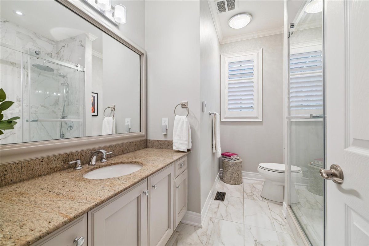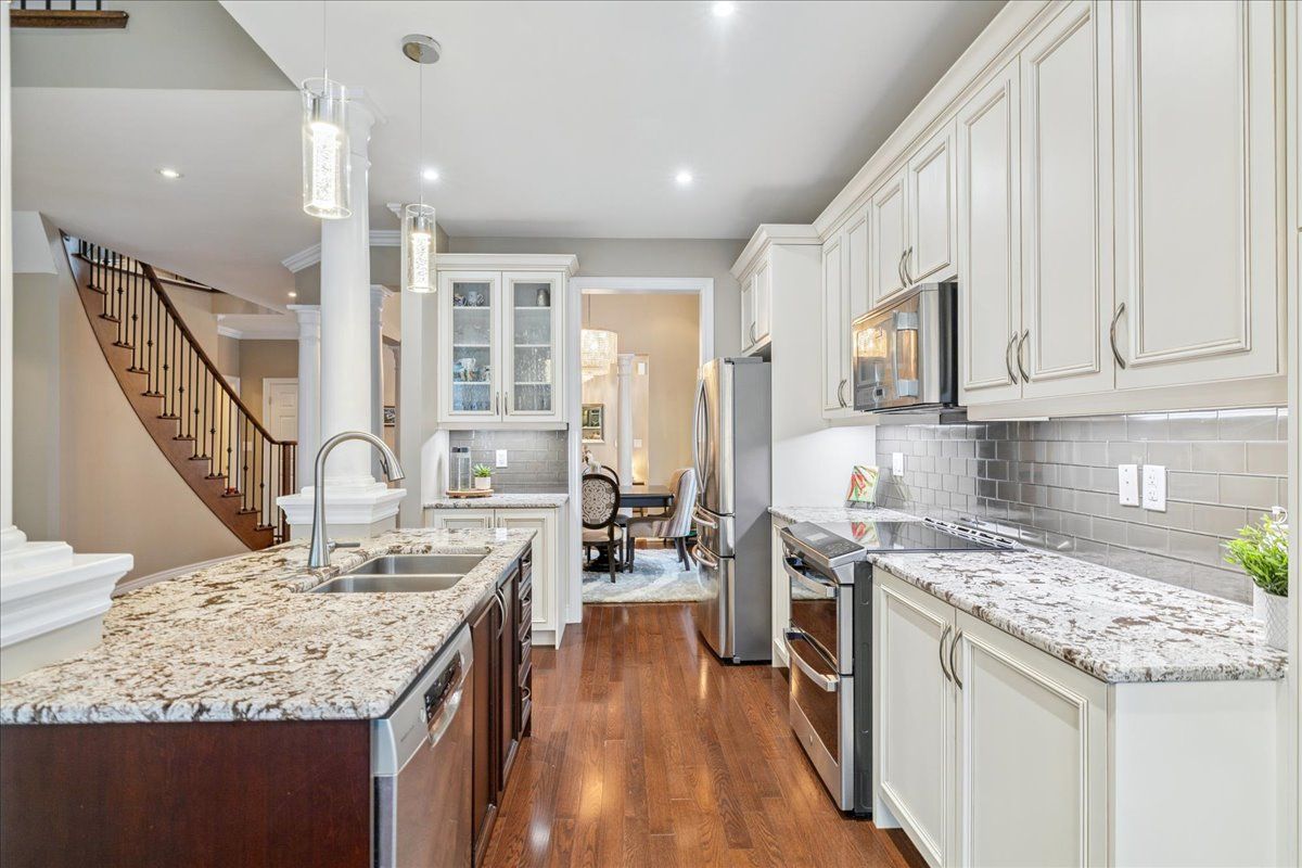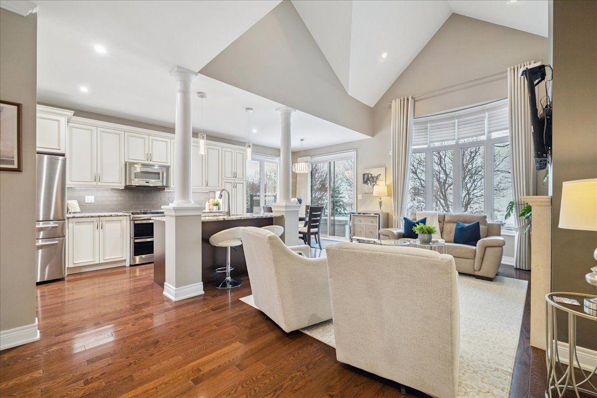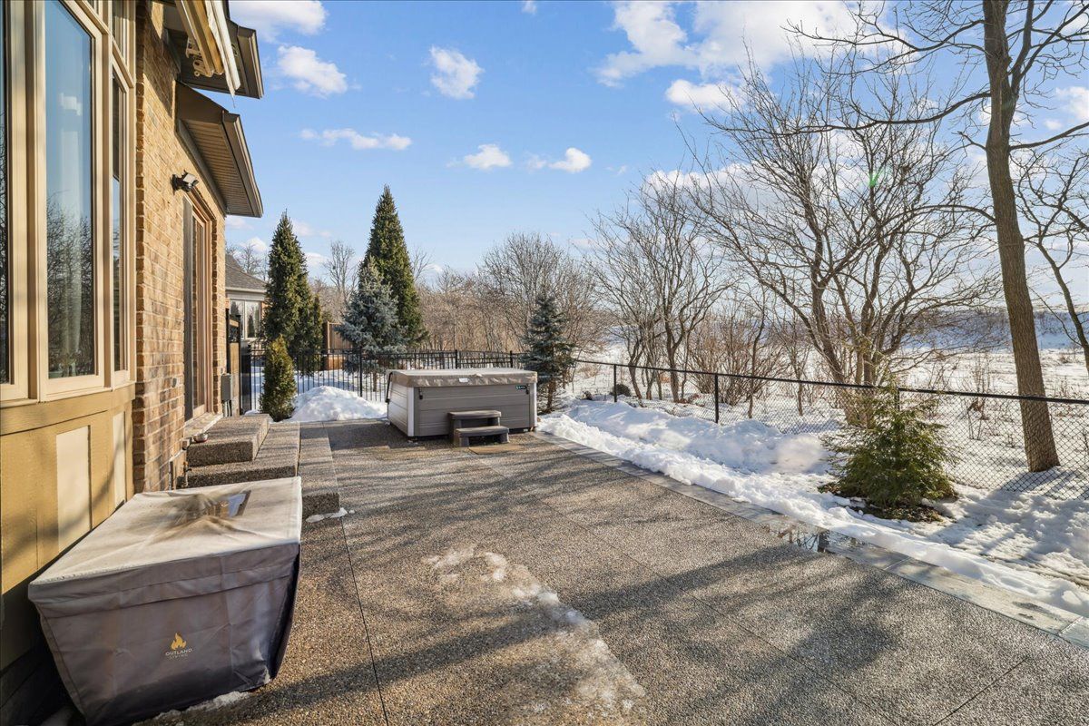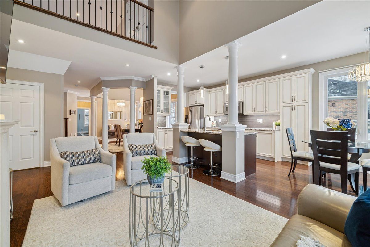 Tucked within an exclusive enclave, this rare and sought-after bungaloft offers premium sunset rear exposure overlooking bronte creek provincial park. With over 3,900 sq. Ft. Of bright, open living space, this executive family home showcases hardwood floors, pot lights, and upgraded fixtures throughout. A formal dining room with cathedral ceilings flows into the stunning living room with soaring ceilings and a gas fireplace, seamlessly connected to the designer kitchen featuring two-tone cabinetry, stainless steel appliances, granite counters, island with breakfast bar, backsplash, valance lighting, and walkout to a private yard with lush greenery and exposed aggregate patio. The main floor primary suite offers a walk-in closet, two-way fireplace, and spa-like ensuite with double sinks, soaker tub, and glass shower. A versatile second main-level bedroom or home office features semi-ensuite access to an updated 3-piece bathroom with heated floors, while the convenient main floor laundry enhances everyday functionality. Upstairs, a bright loft with skylight overlooks the living and dining areas below, along with an additional bedroom and a well-appointed 4-piece bath. The professionally finished lower level offers a spacious rec room with a separate family room area featuring an electric fireplace, a breakfast area, and a dedicated gym space, along with two additional bedrooms, a 4-piece bath, and a separate storage room. Double garage with inside entry, double driveway and exposed aggregate walkway. Close to hiking and biking trails, parks, schools, shopping. Minutes to bronte go station, near oakville trafalgar hospital and easy access to qew and 407. Furnace (2020).