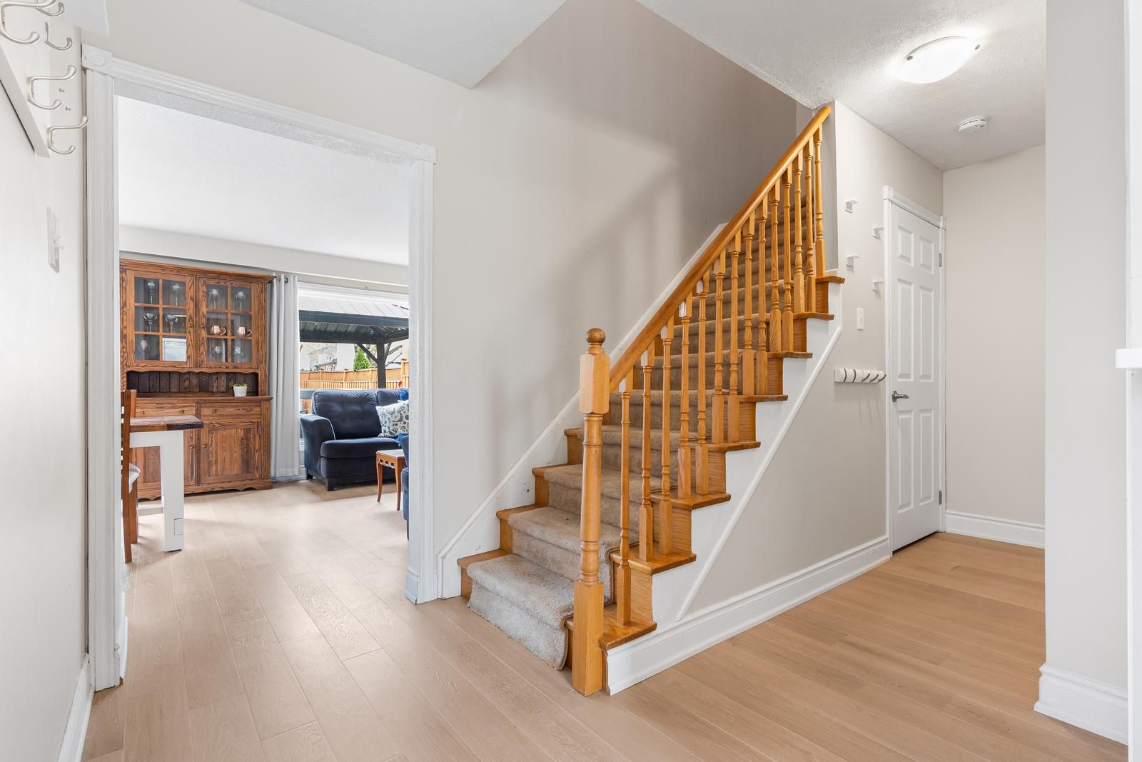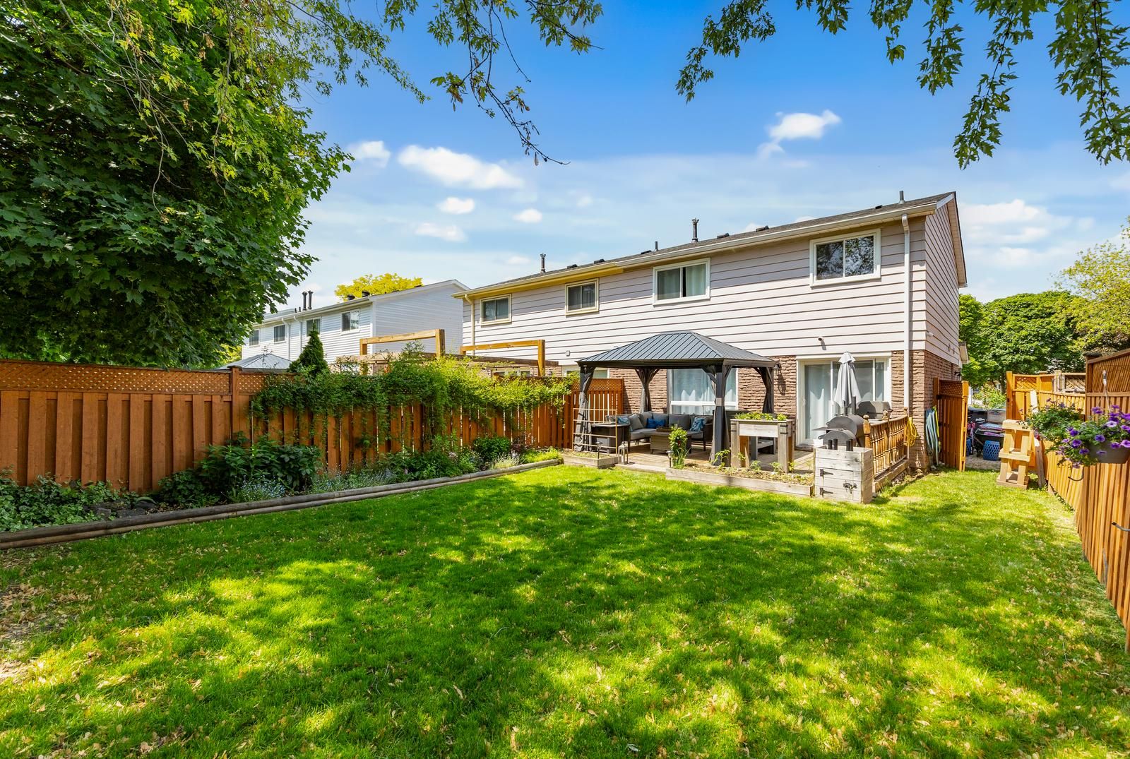 Beautifully maintained 4 bedroom semi-detached home in highly desirable erin mills, offering the perfect blend of space, style, and location. Great family location with two parks right at the end of the street. This home has been thoughtfully updated throughout, is move-in ready, and designed for comfortable everyday living. The renovated eat-in kitchen features butcher block style wood countertops, stainless steel appliances, and brand new cabinetry. The beautiful new engineer hardwood floors create a modern setting throughout the whole main level. The bright open concept living/dining area has a large window and glass sliding door walking out to the backyard. Enjoy your summers in this private backyard featuring a wood deck with a gazebo, and ample space for the kids to play four spacious bedrooms upstairs provide plenty of room for growing families, home offices, or guest accommodations. The finished basement adds valuable extra living space, perfect for a recreation room, playroom, gym, media area, or office. Close to excellent schools, parks, trails, shopping, transit, credit valley hospital, erin mills town centre, erindale & clarkson go stations, and utm mississauga campus. This is an exceptional opportunity to own a wonderful family home in one of mississauga's most established communities. Easy access to highways 403, 407 & qew. Main floor hardwood'26, kitchen renovations '26 furnace'25, ac heat pump'25, shingles'22, bathroom renovation '21, 2nd floor windows'21, living room window & patio door'19.